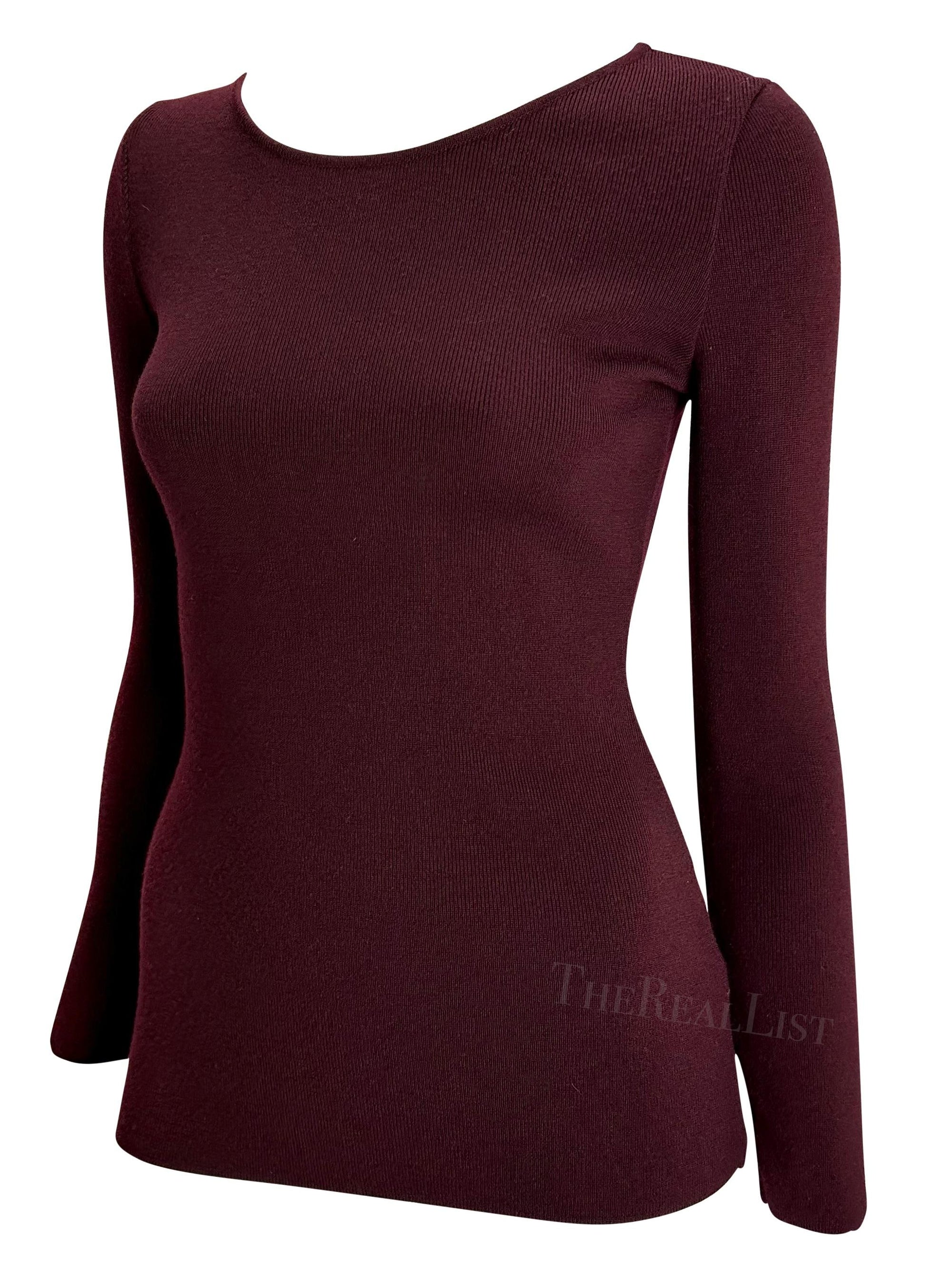 F/W 1996 Gucci by Tom Ford Burgundy Stretch Knit Wool Sweater Top