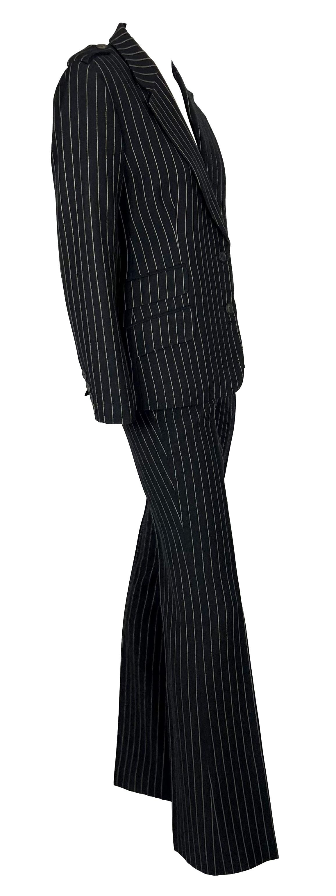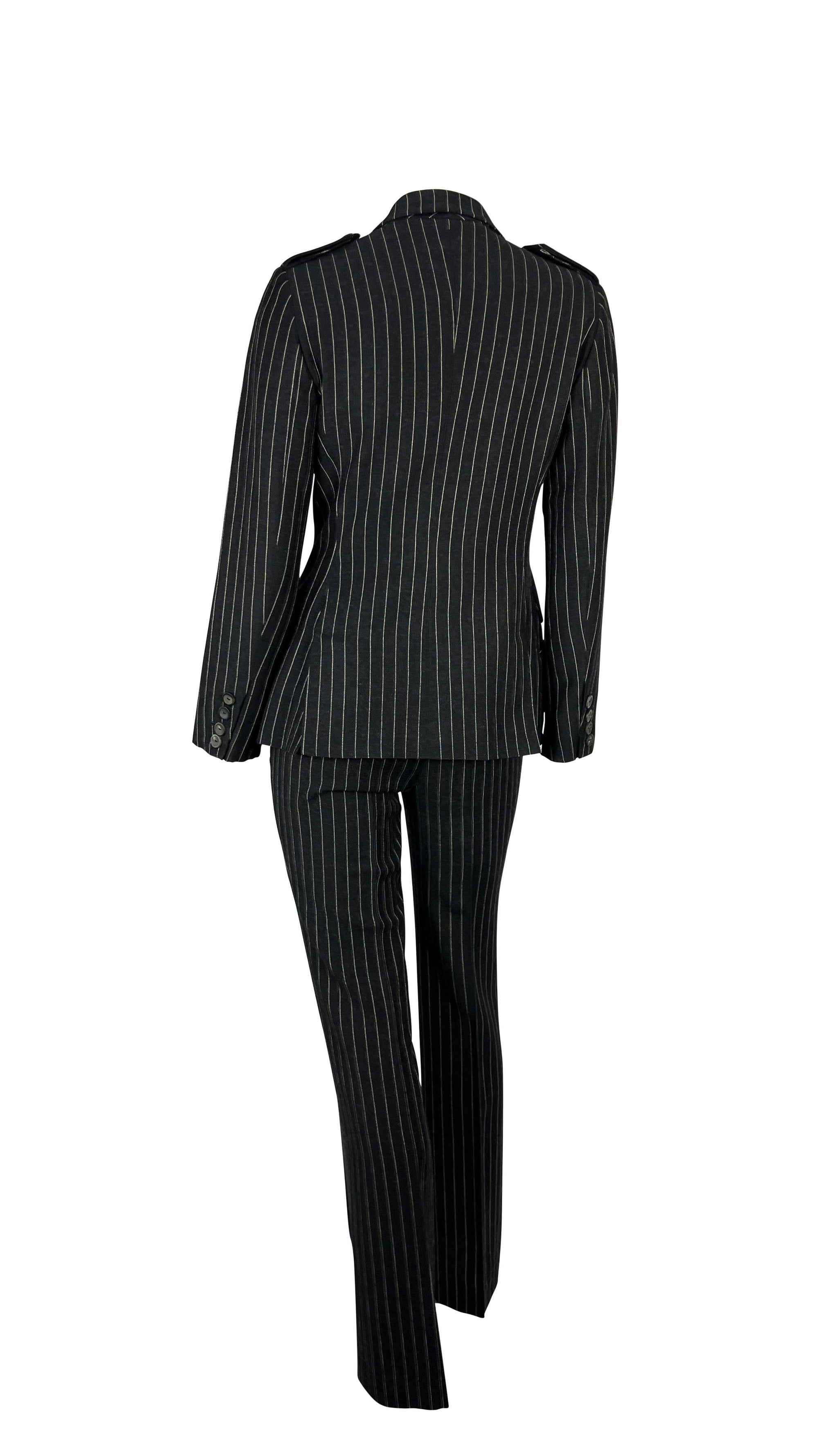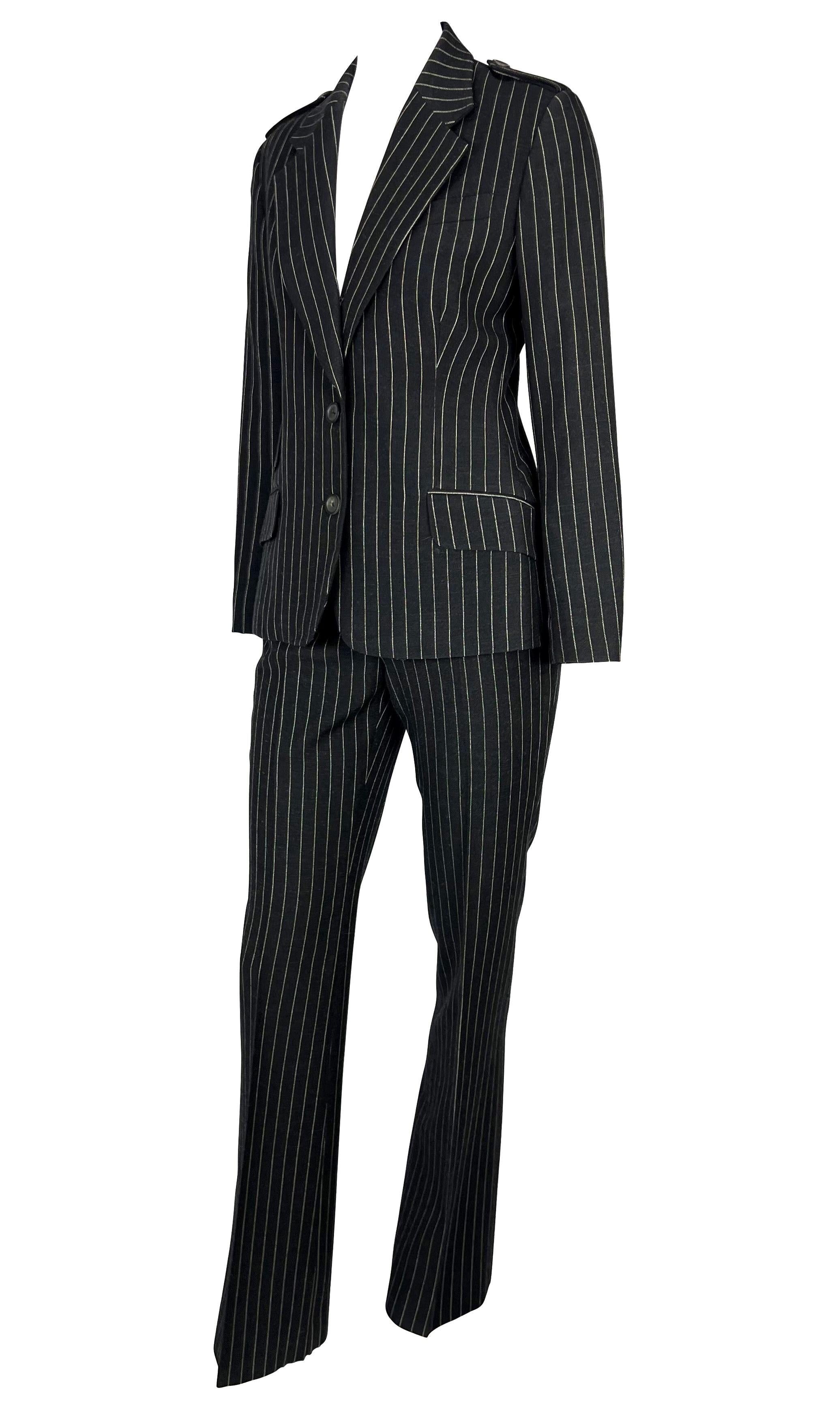 F/W 1996 Gucci by Tom Ford Runway Ad Black Wool Pinstripe Epaulet Pantsuit