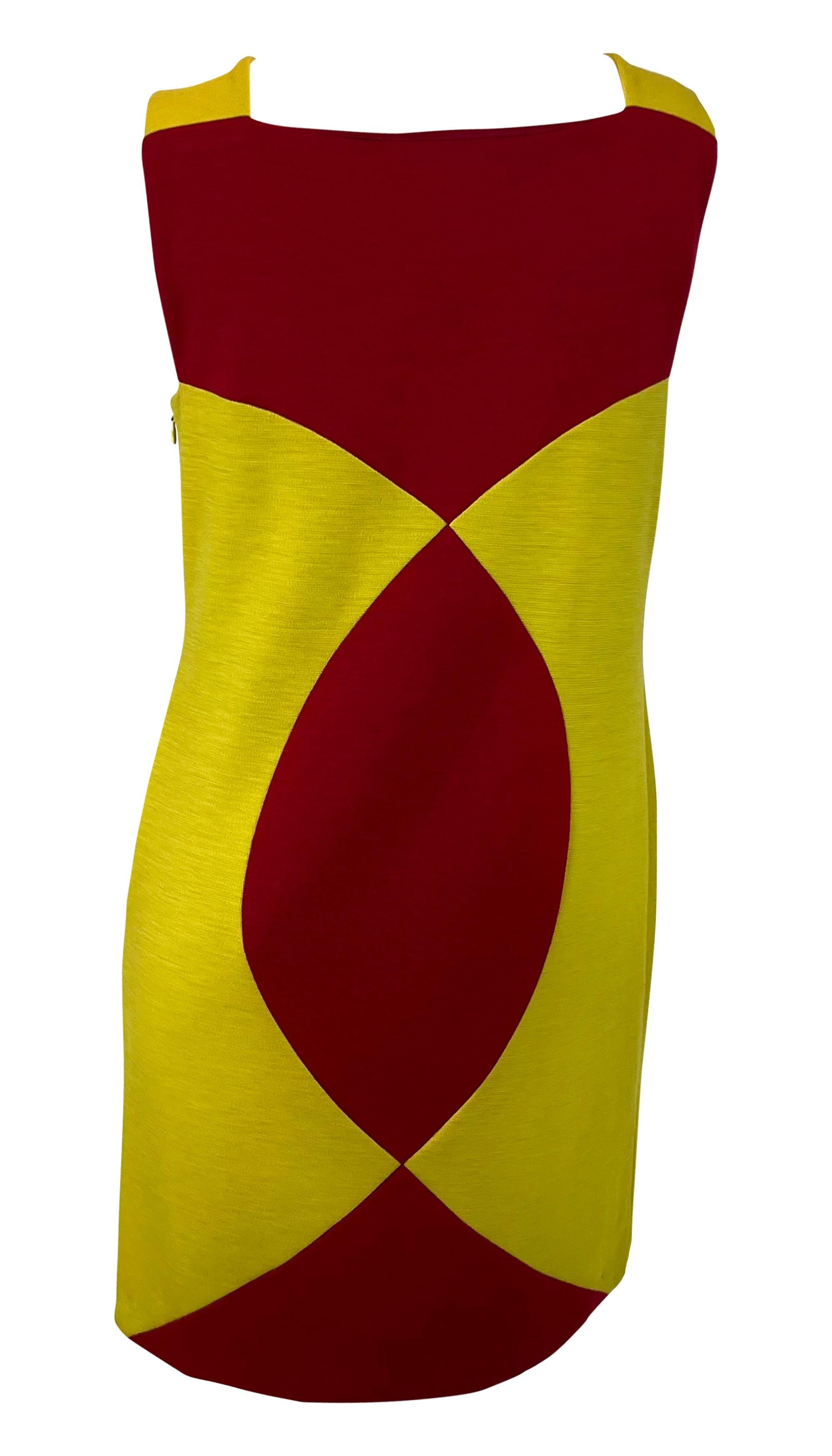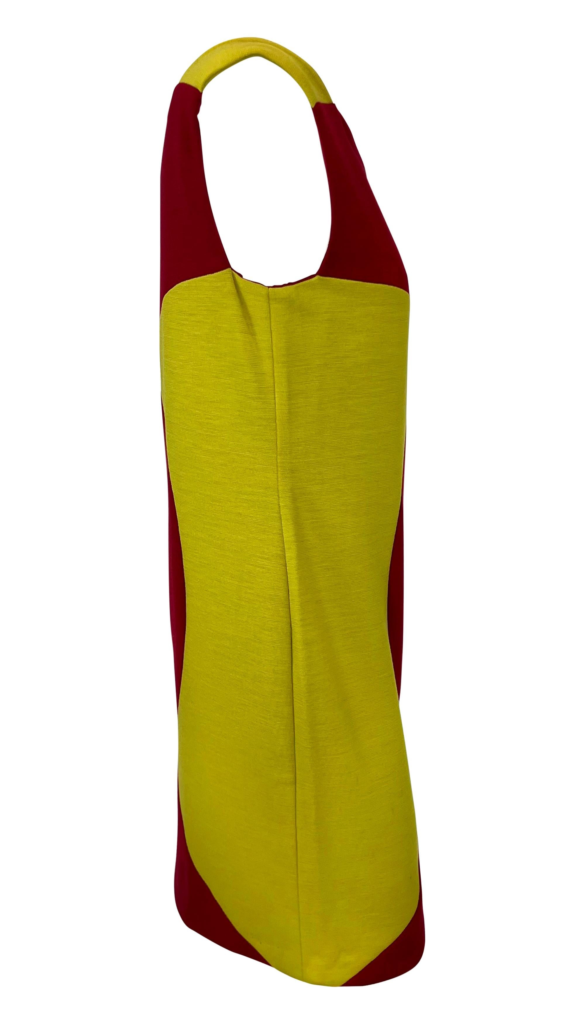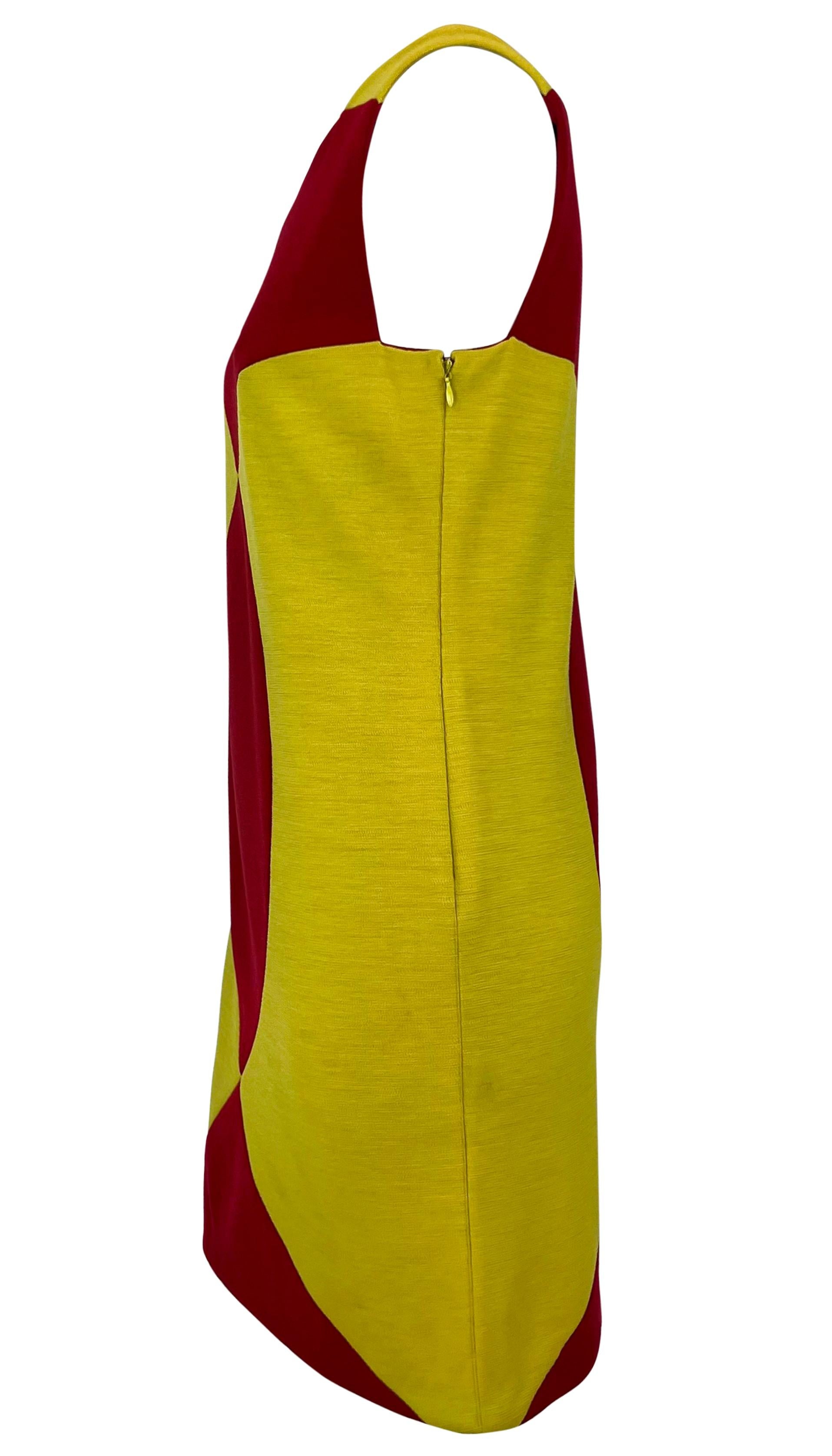F/W 1997 Gianni Versace Runway Yellow Red Color Block Mini Shift Dress