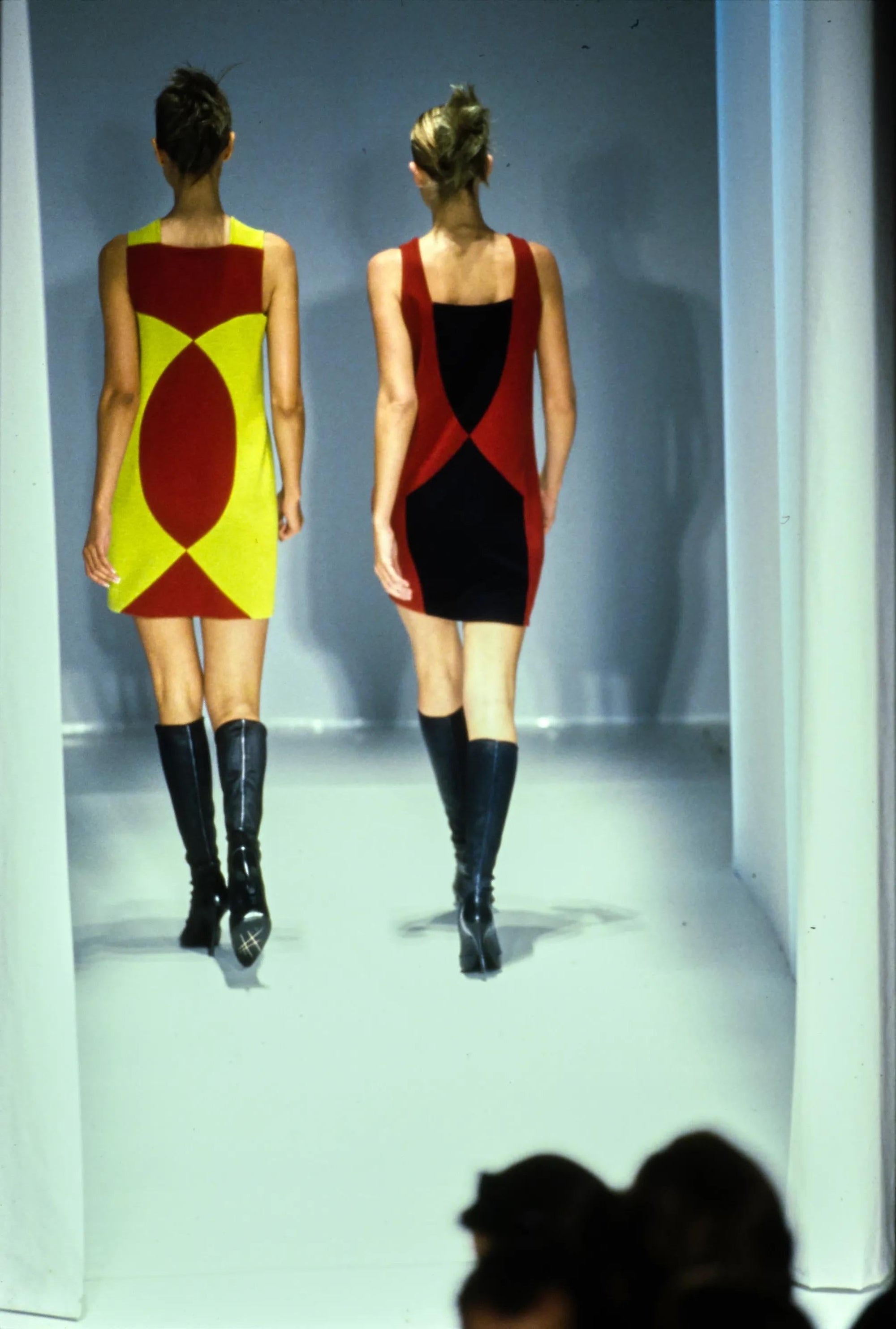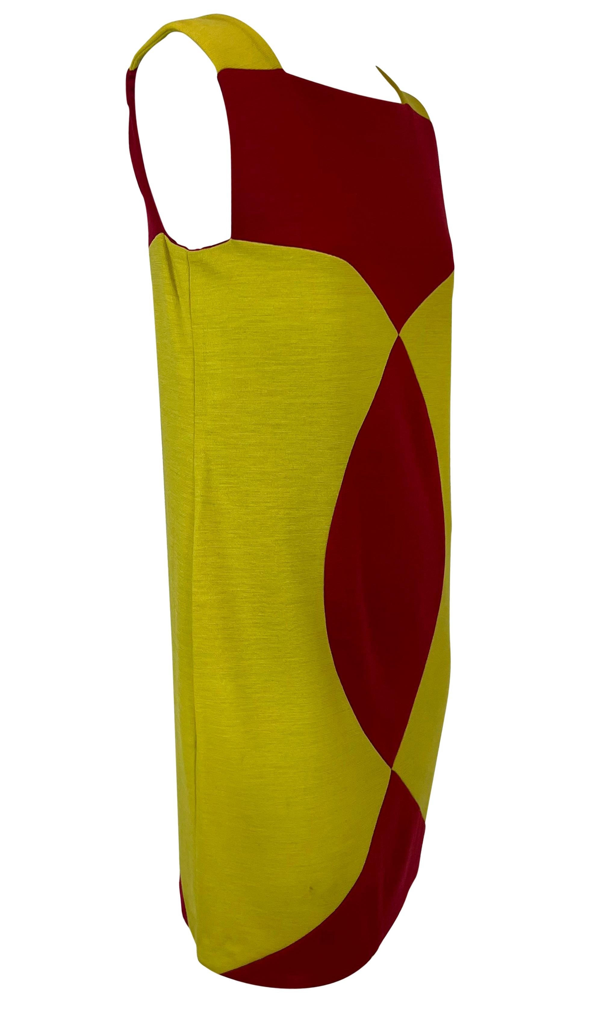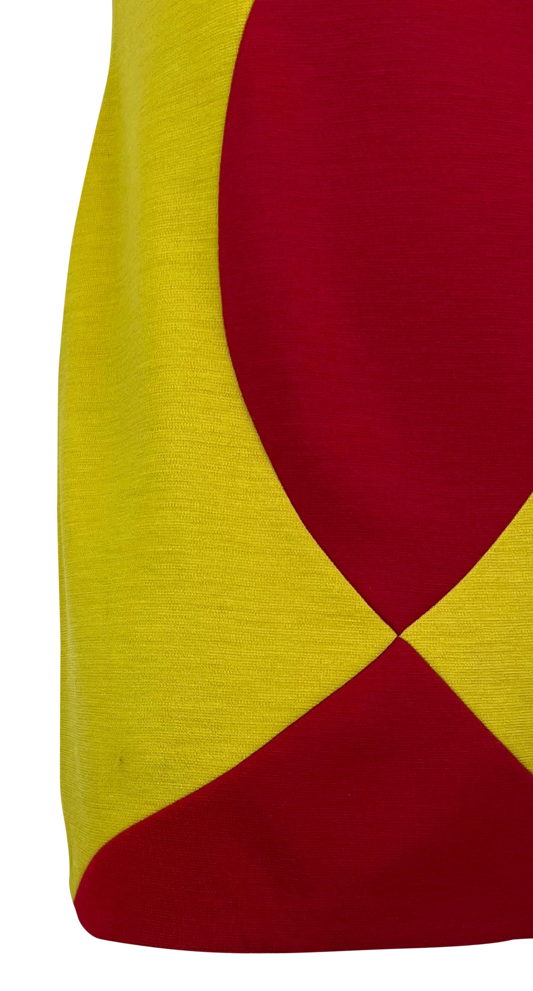 F/W 1997 Gianni Versace Runway Yellow Red Color Block Mini Shift Dress