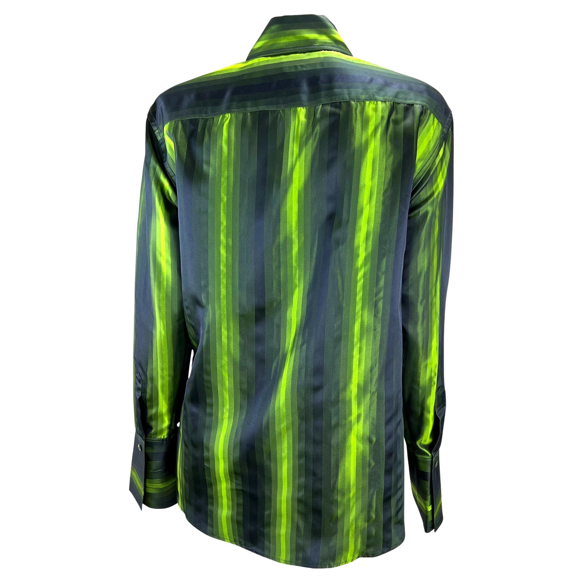 F/W 1997 Gucci by Tom Ford Runway Green Ombré Stripe Shoulder Pad Button Up Top