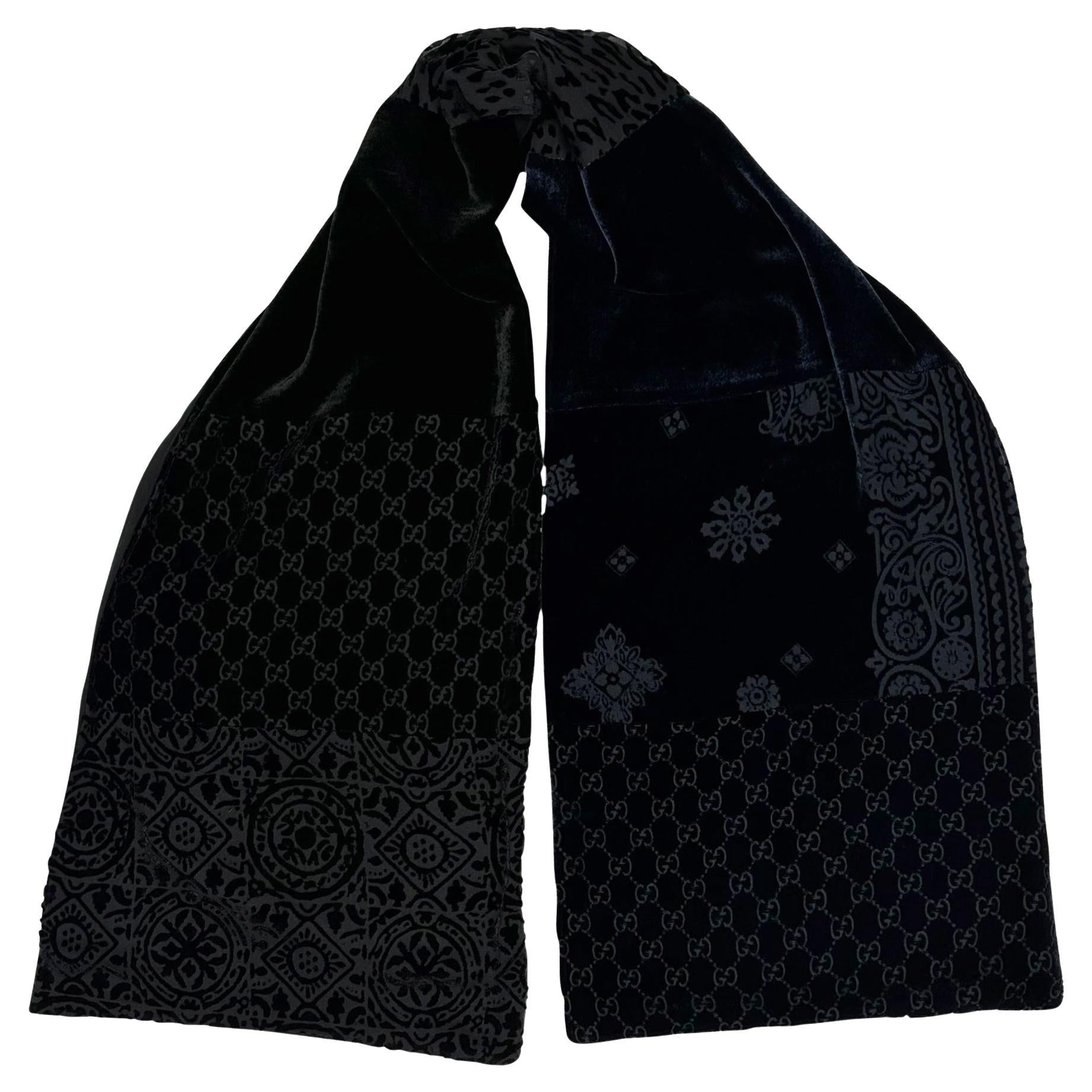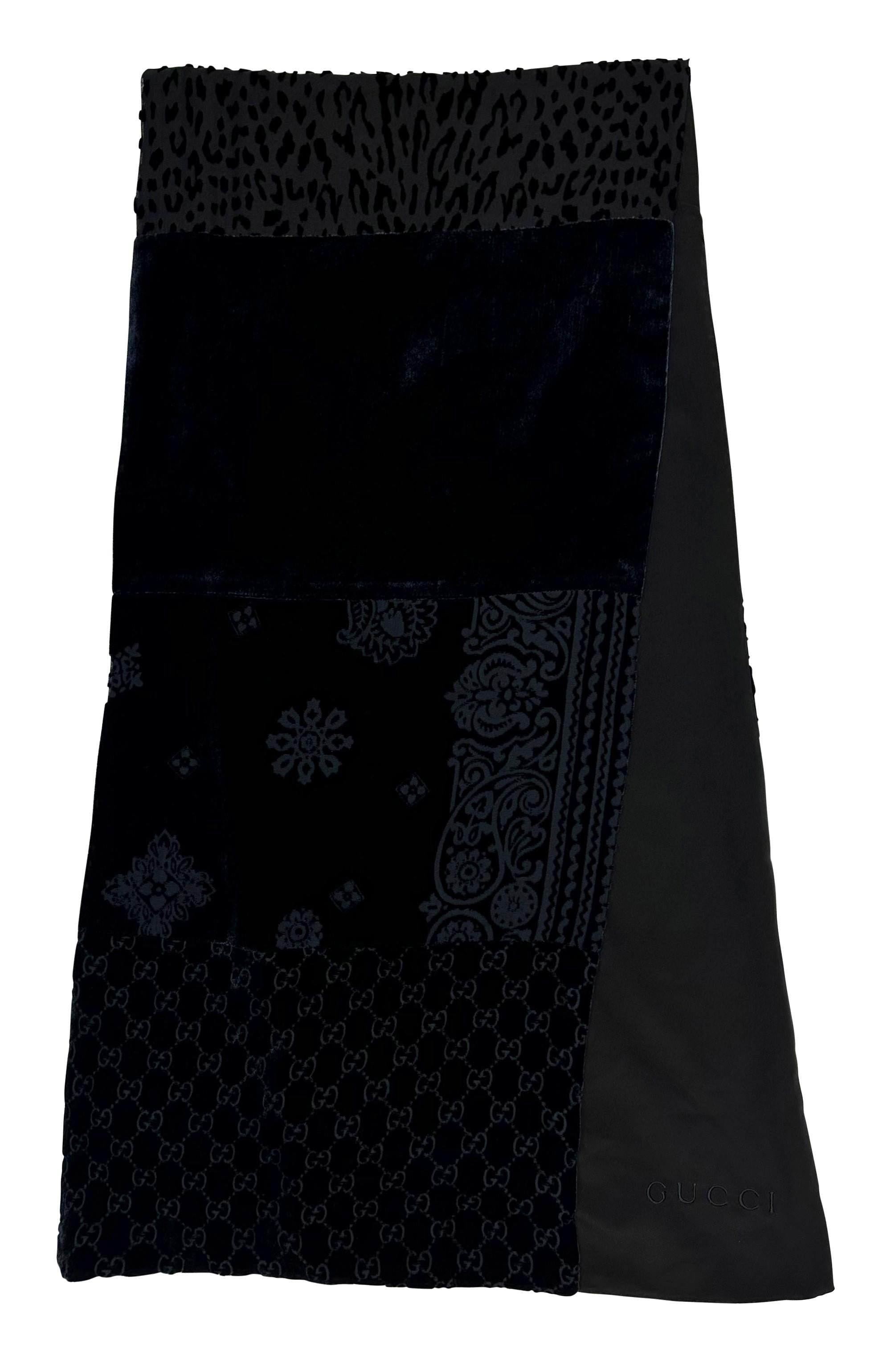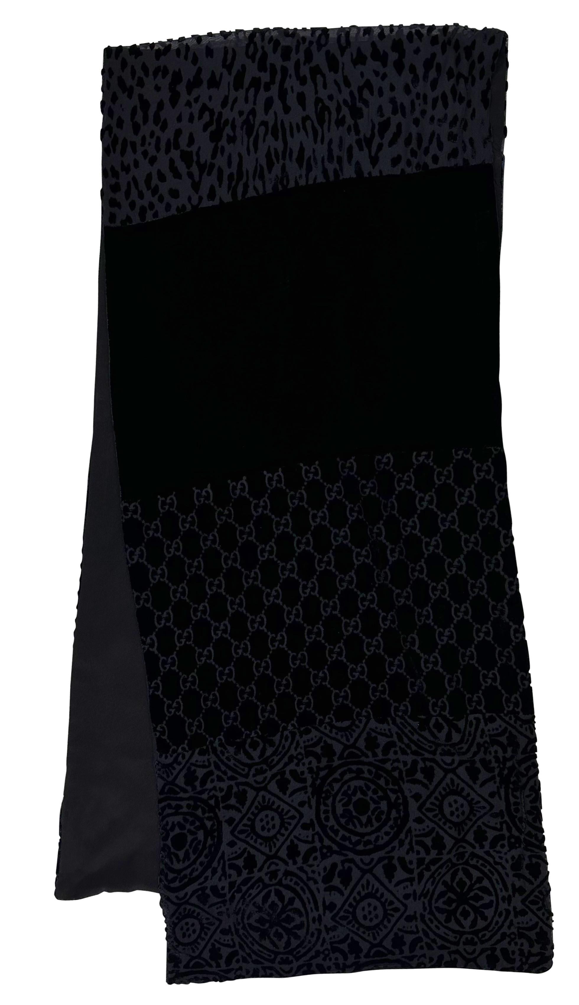F/W 1997 Gucci by Tom Ford Velvet Patchwork Navy 'GG' Monogram Scarf