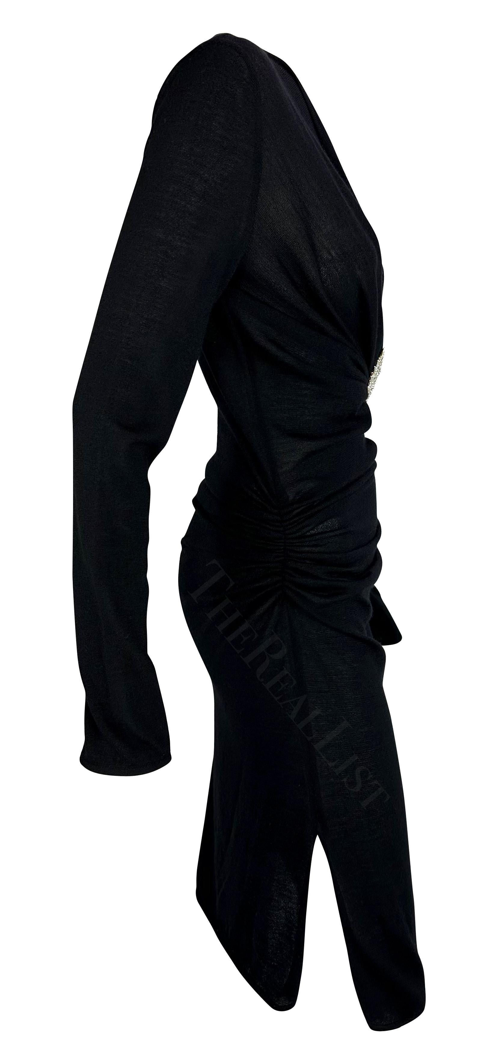 F/W 1997 Valentino Garavani Sheer Cashmere Silk Knit Black Stretch Ruched Dress