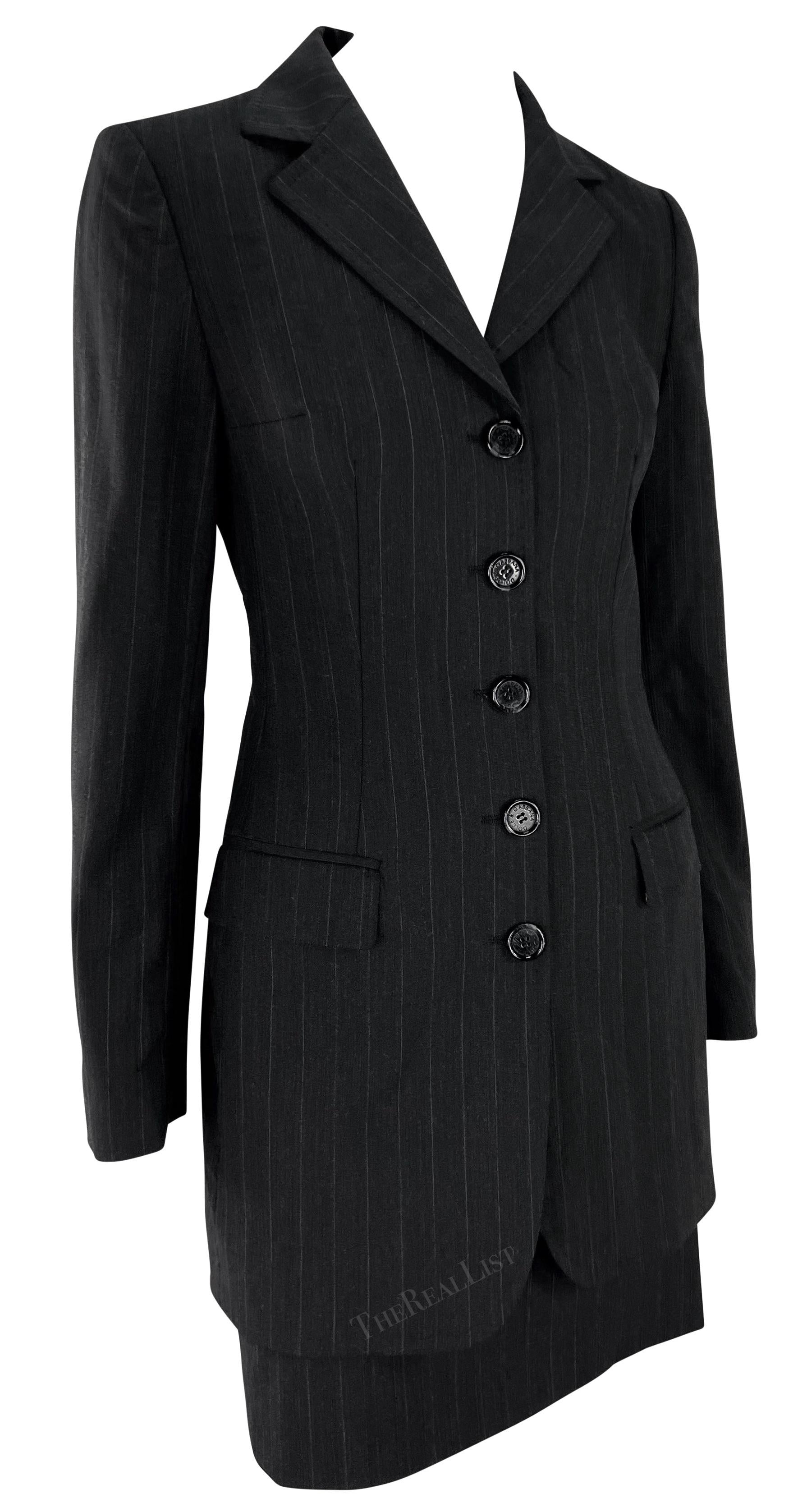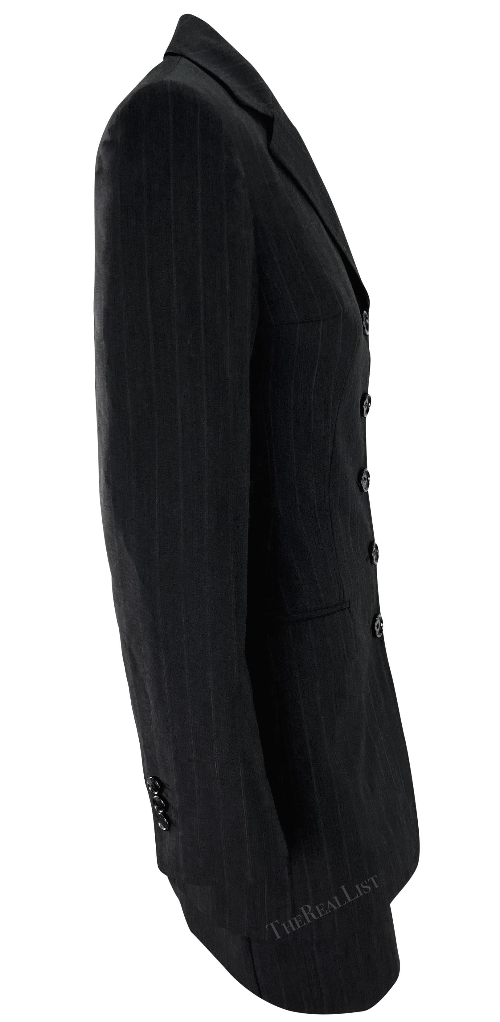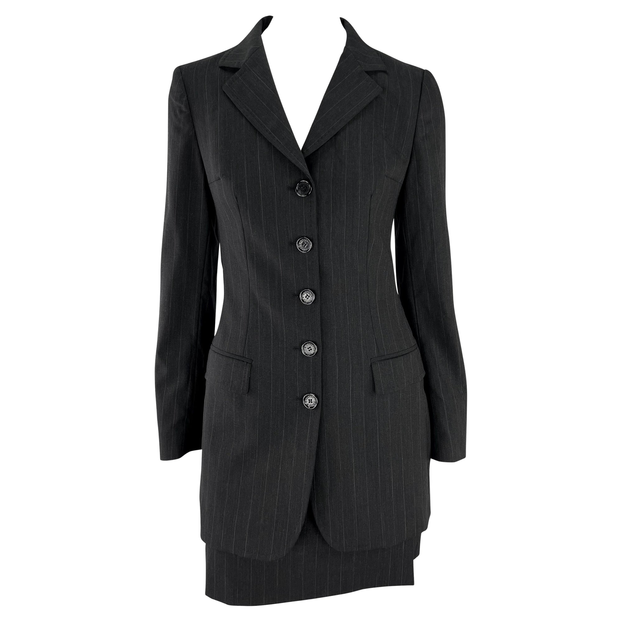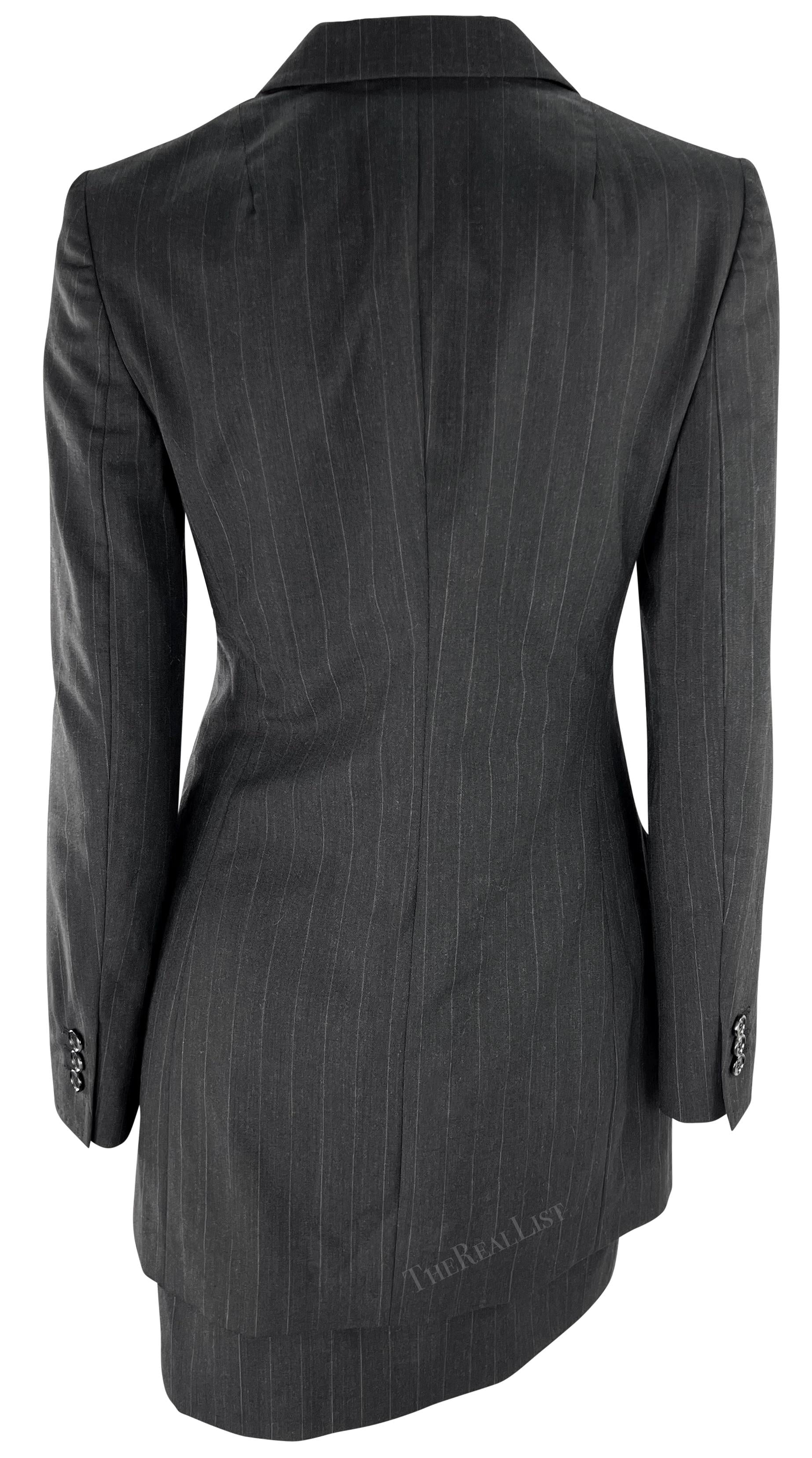 F/W 1998 Dolce & Gabbana Black Grey Pinstripe Fitted Mini Skirt Suit