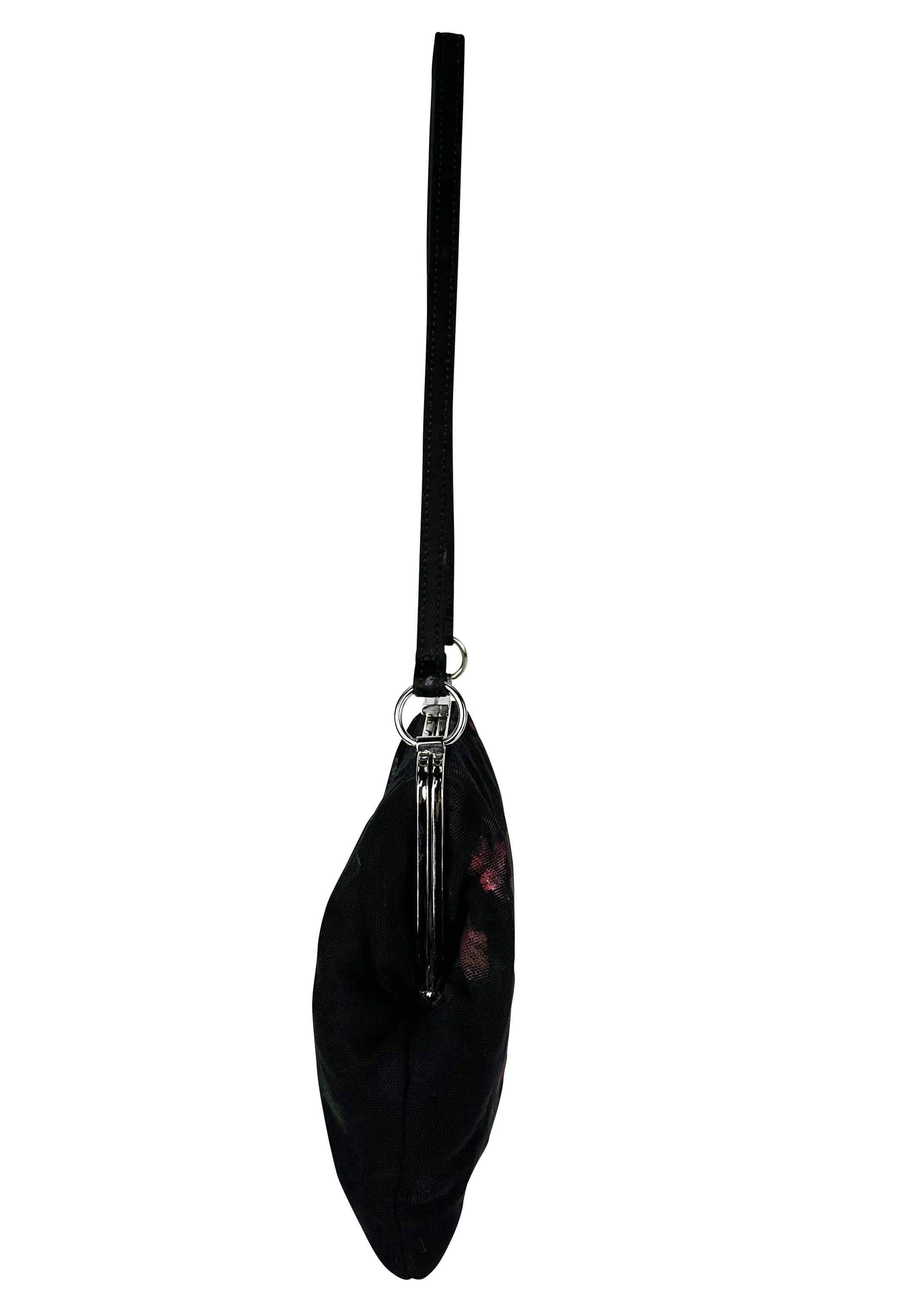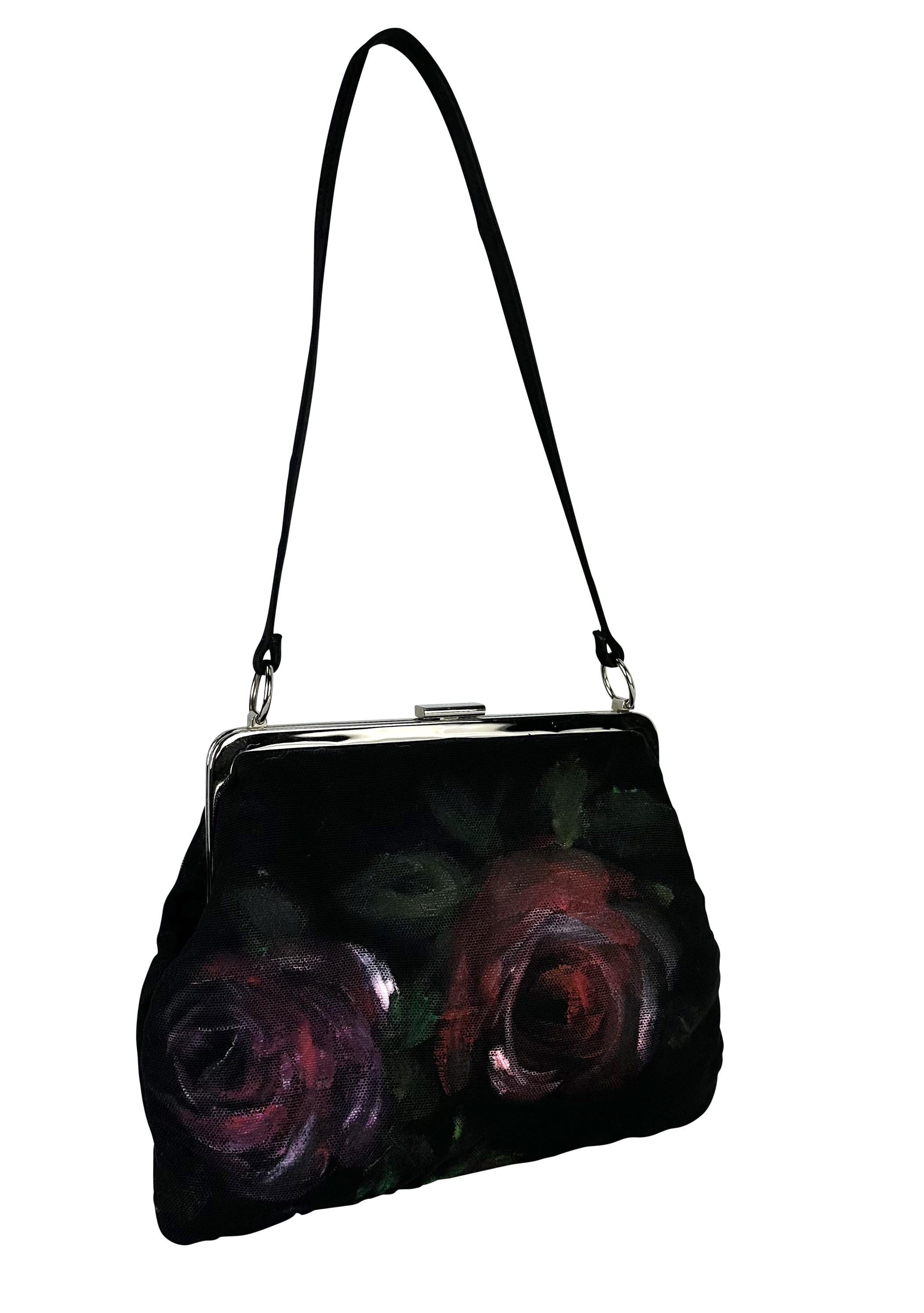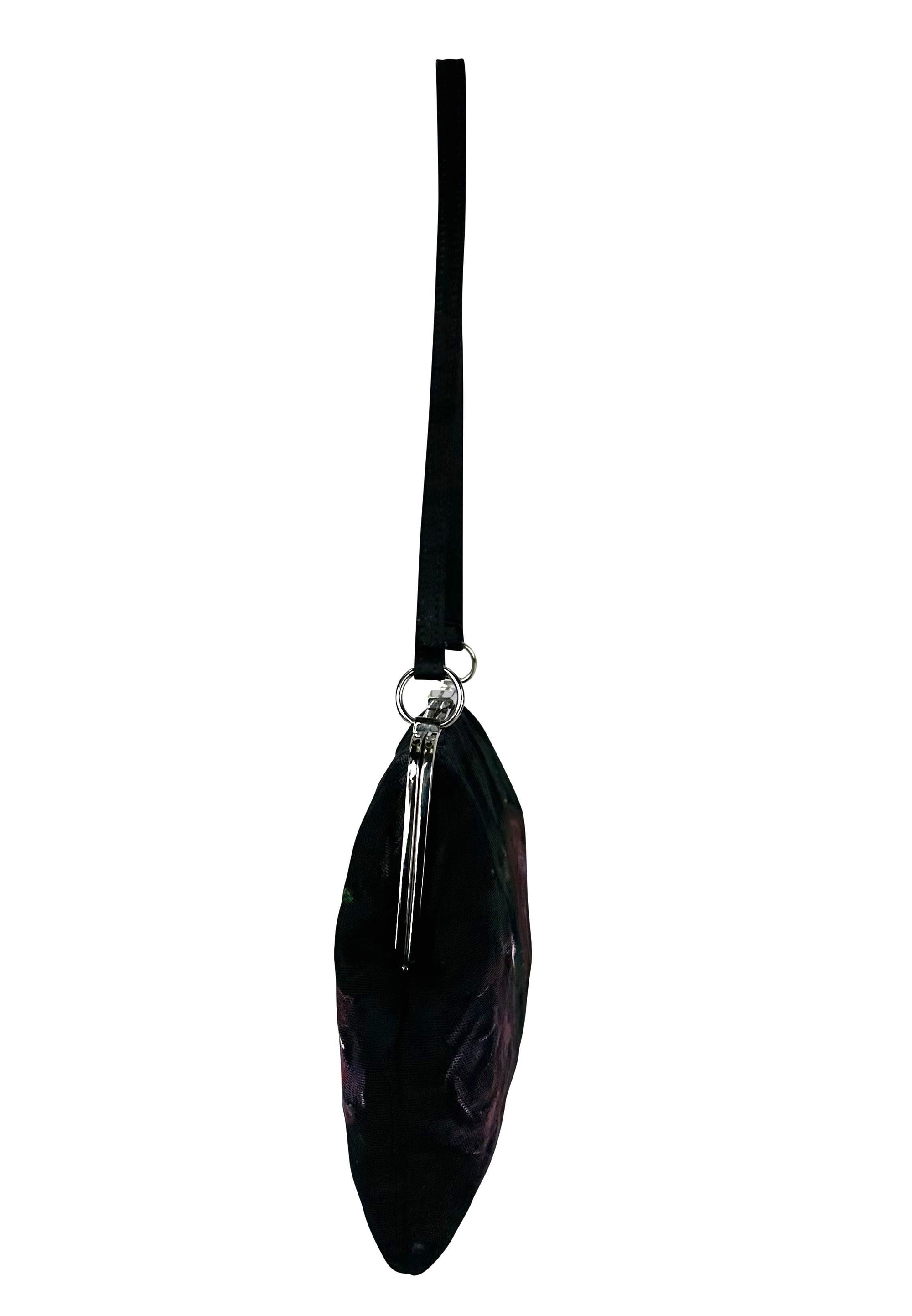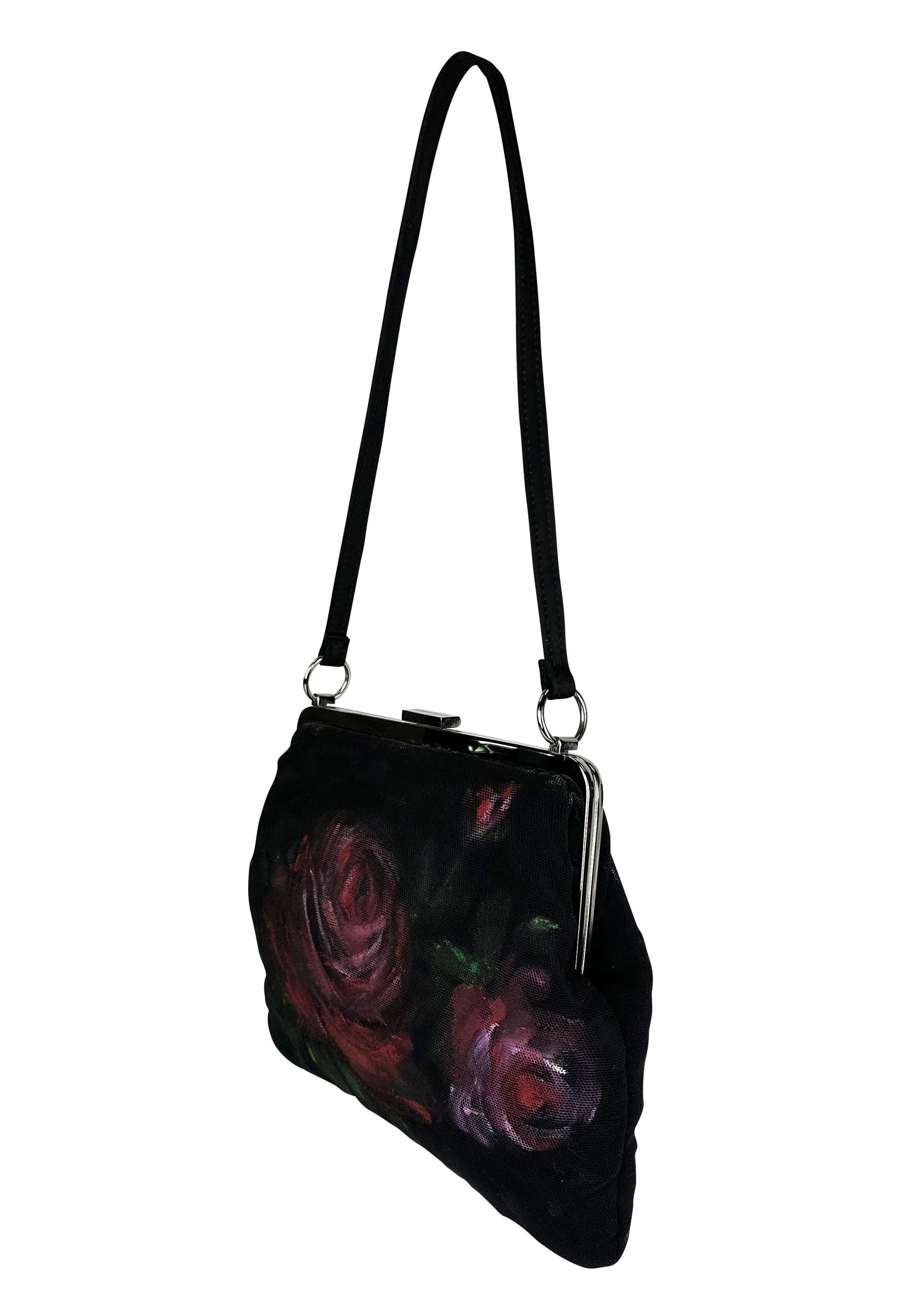 Presenting a fabulous black hand-painted rose Dolce and Gabbana mesh bag. This bag from the Fall/Winter 1998 collection features a silver-plated clamshell closure and a black mesh body, complete with a hand-painted rose pattern. The collection did not feature any prints - every detail was painted by hand - making each bag one of a kind. Truly a work of art, this bag perfectly represents its collection and would make a fabulous addition to any wardrobe!
