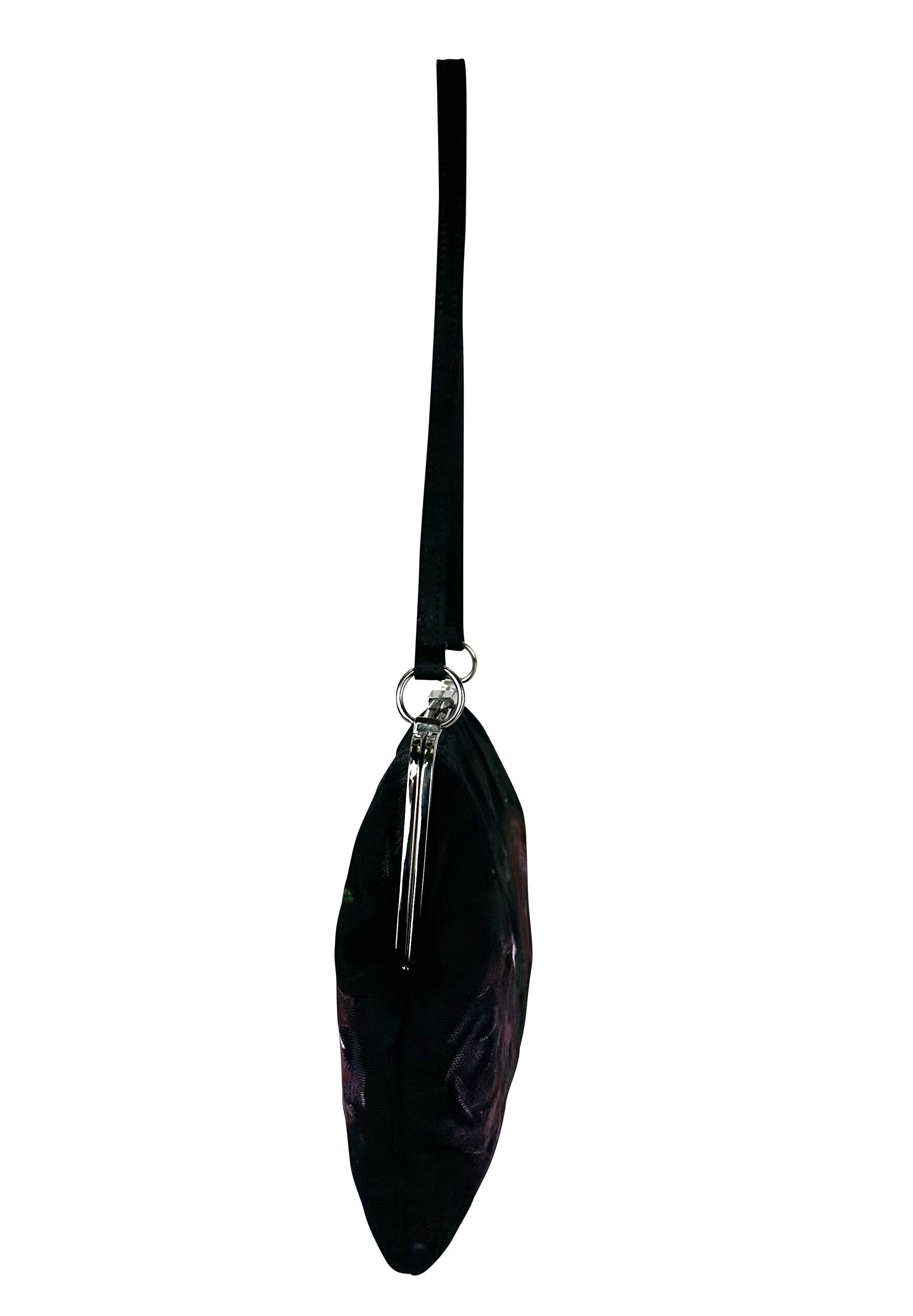 F/W 1998 Dolce & Gabbana Runway Hand Painted Red Rose Black Mesh Bag