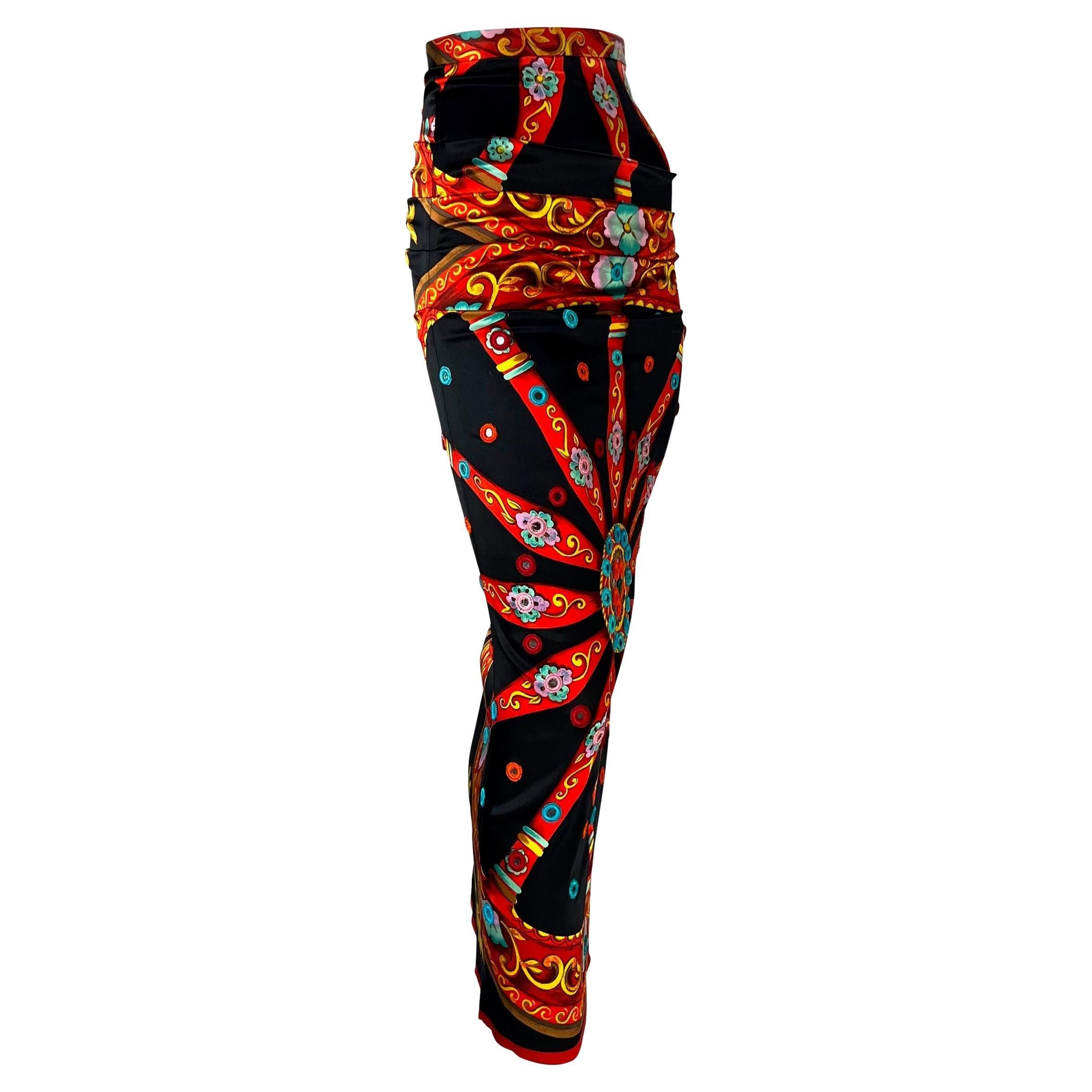 F/W 1998 Dolce & Gabbana Runway Mirror Embroidered Printed Silk Maxi Skirt
