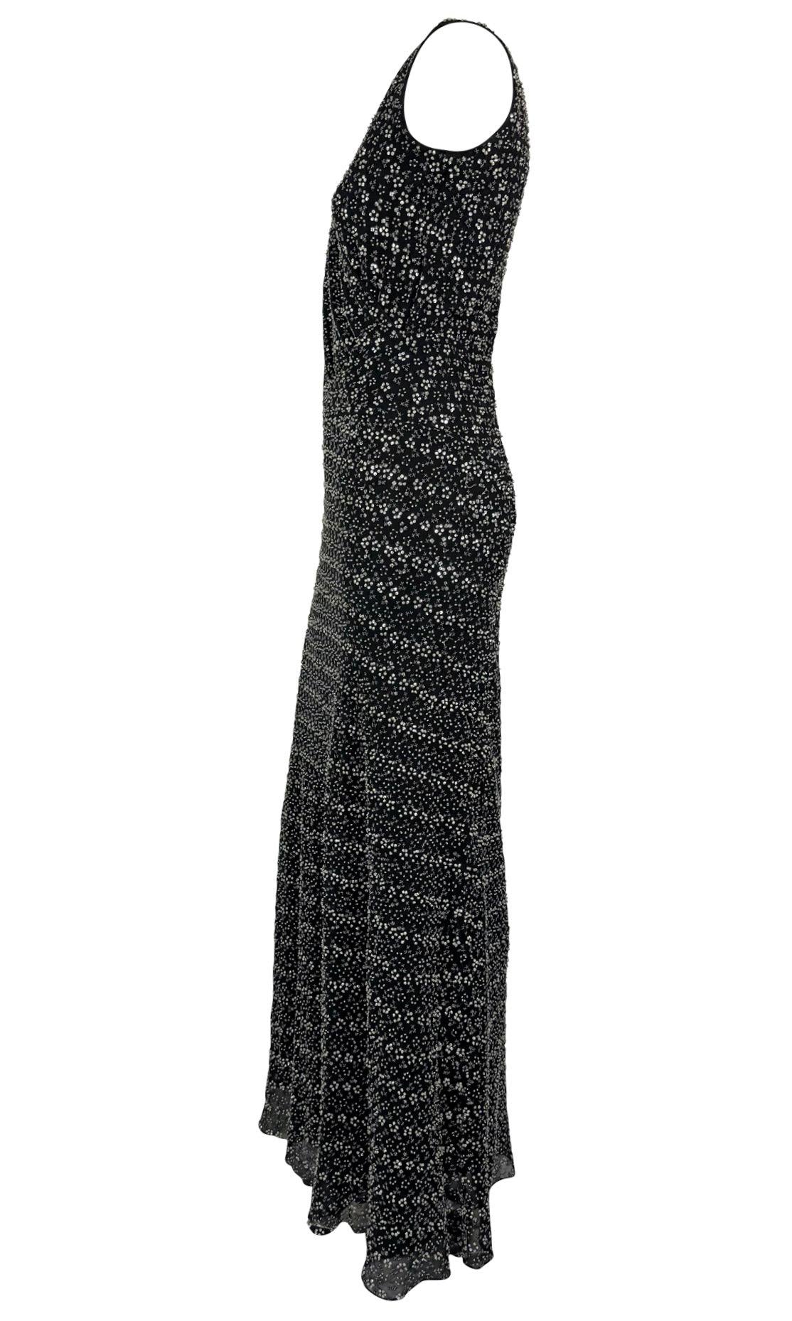 F/W 1998 Giorgio Armani Black Silk Silver Floral Beaded Sleeveless Gown