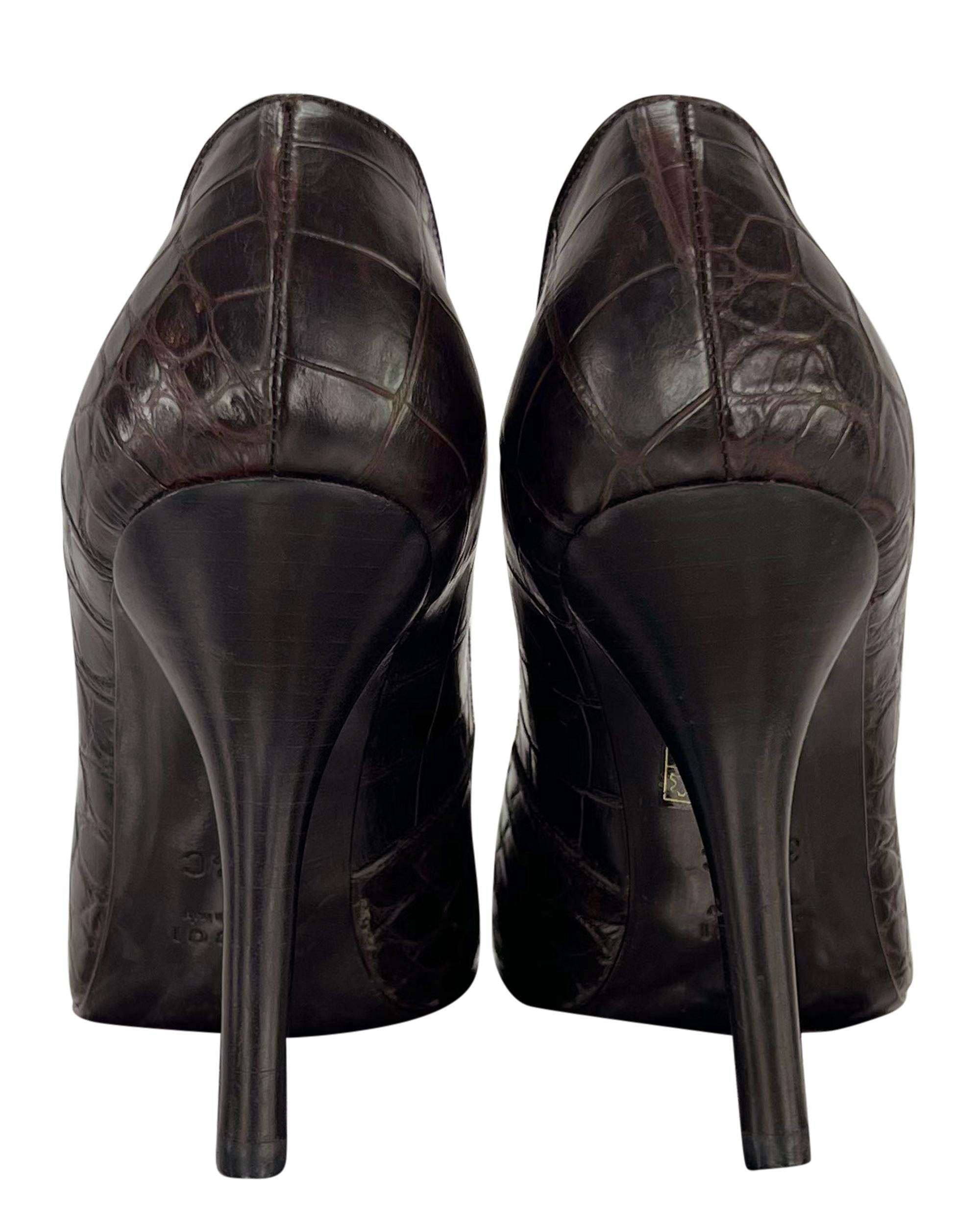 F/W 1998 Gucci by Tom Ford Ad Genuine Alligator Brown Peep Toe Heels Pumps 36.5