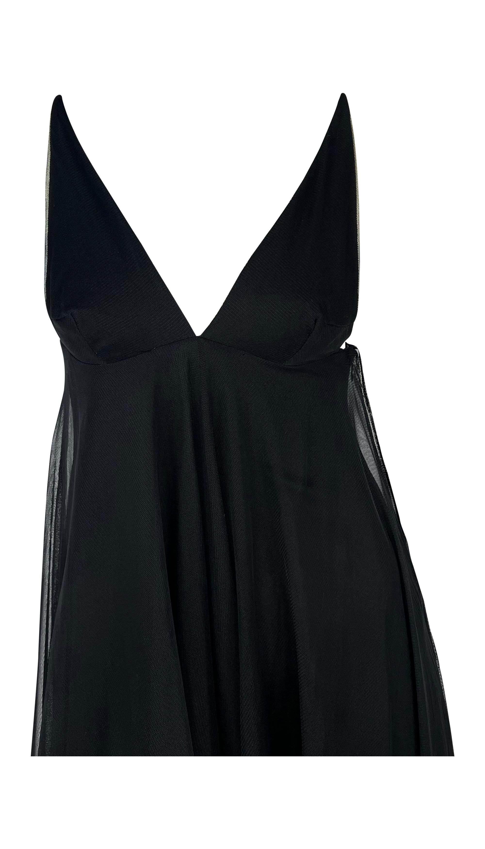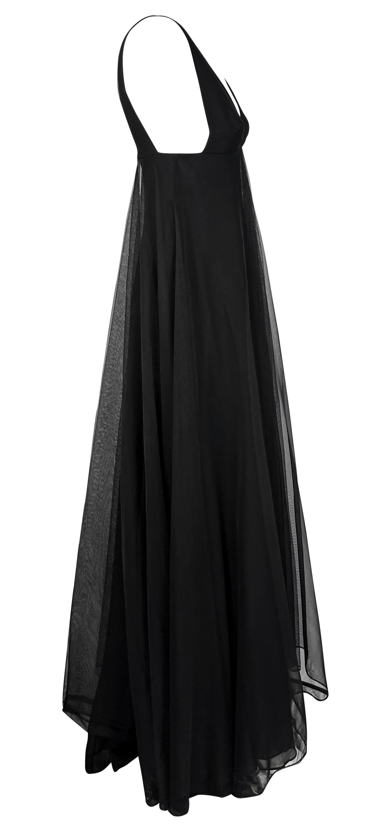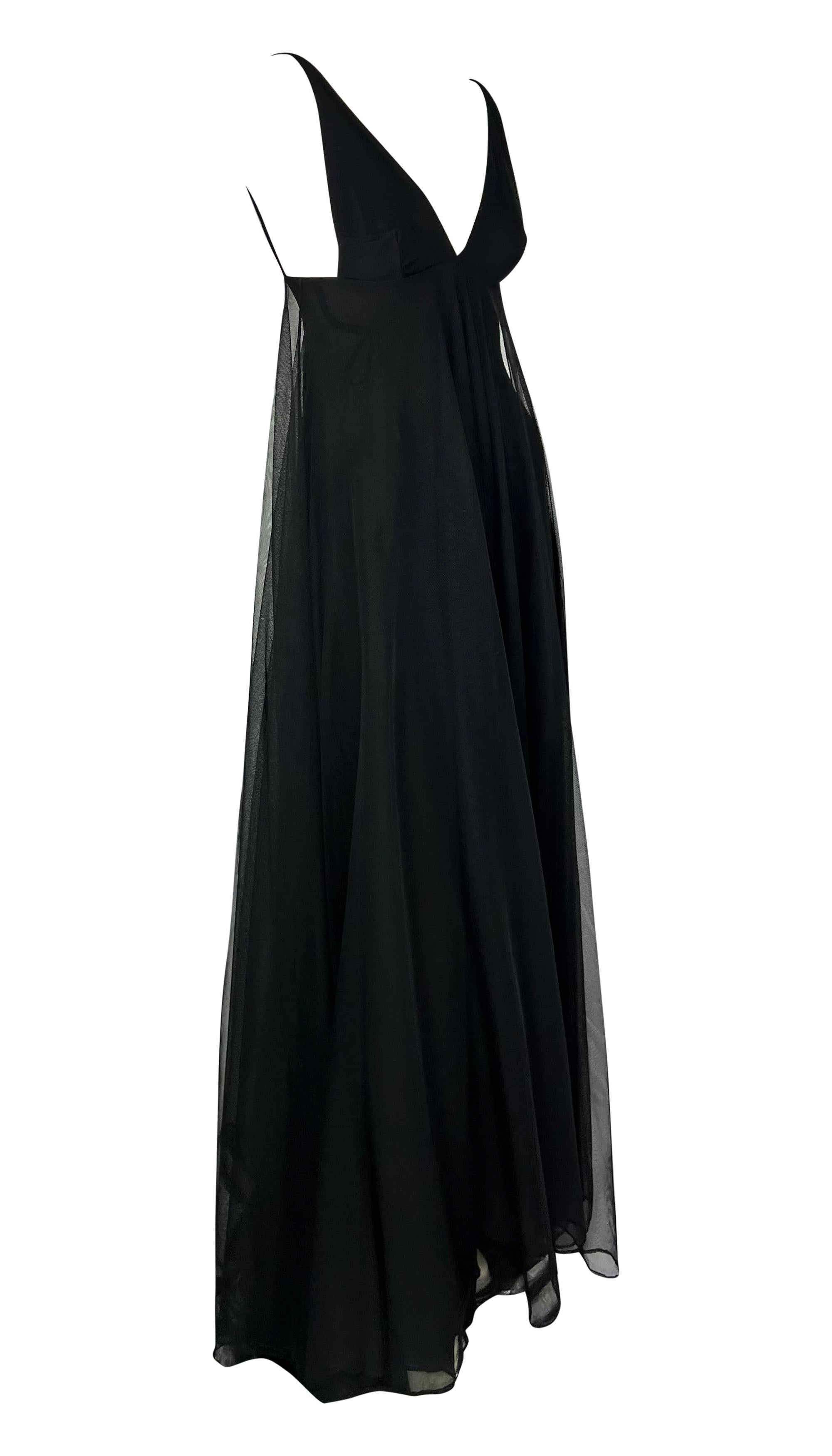 F/W 1998 Gucci by Tom Ford Runway Black Layered Tulle Sheer Plunge Gown