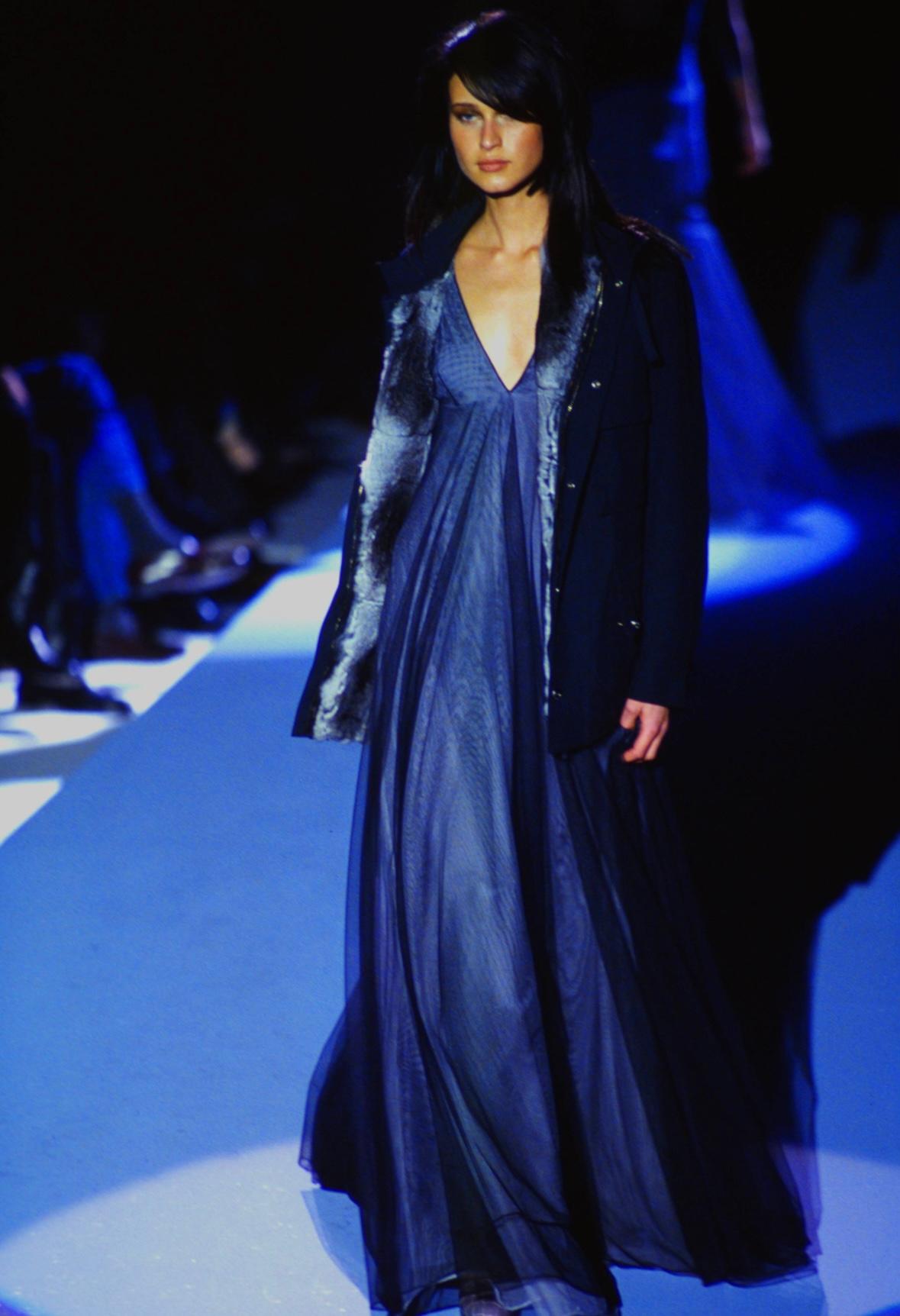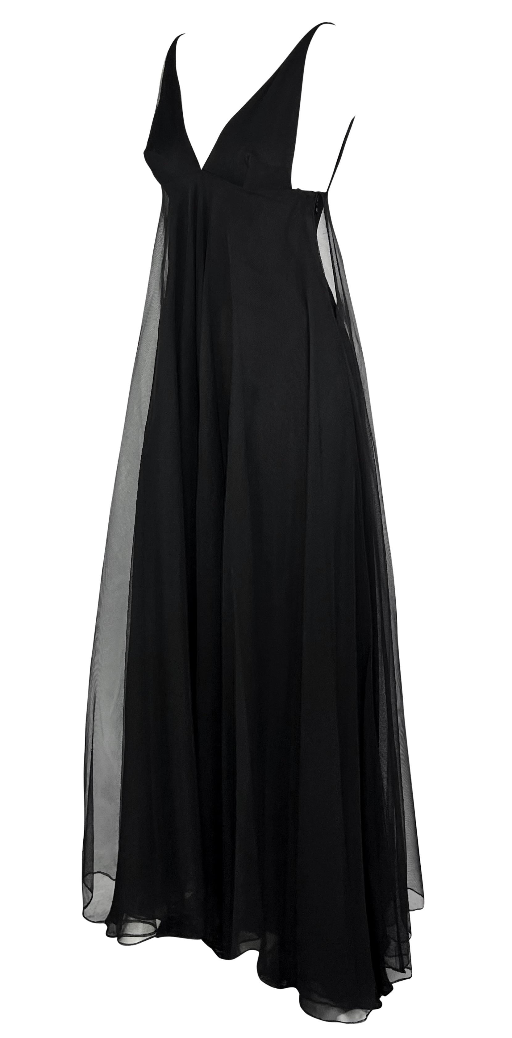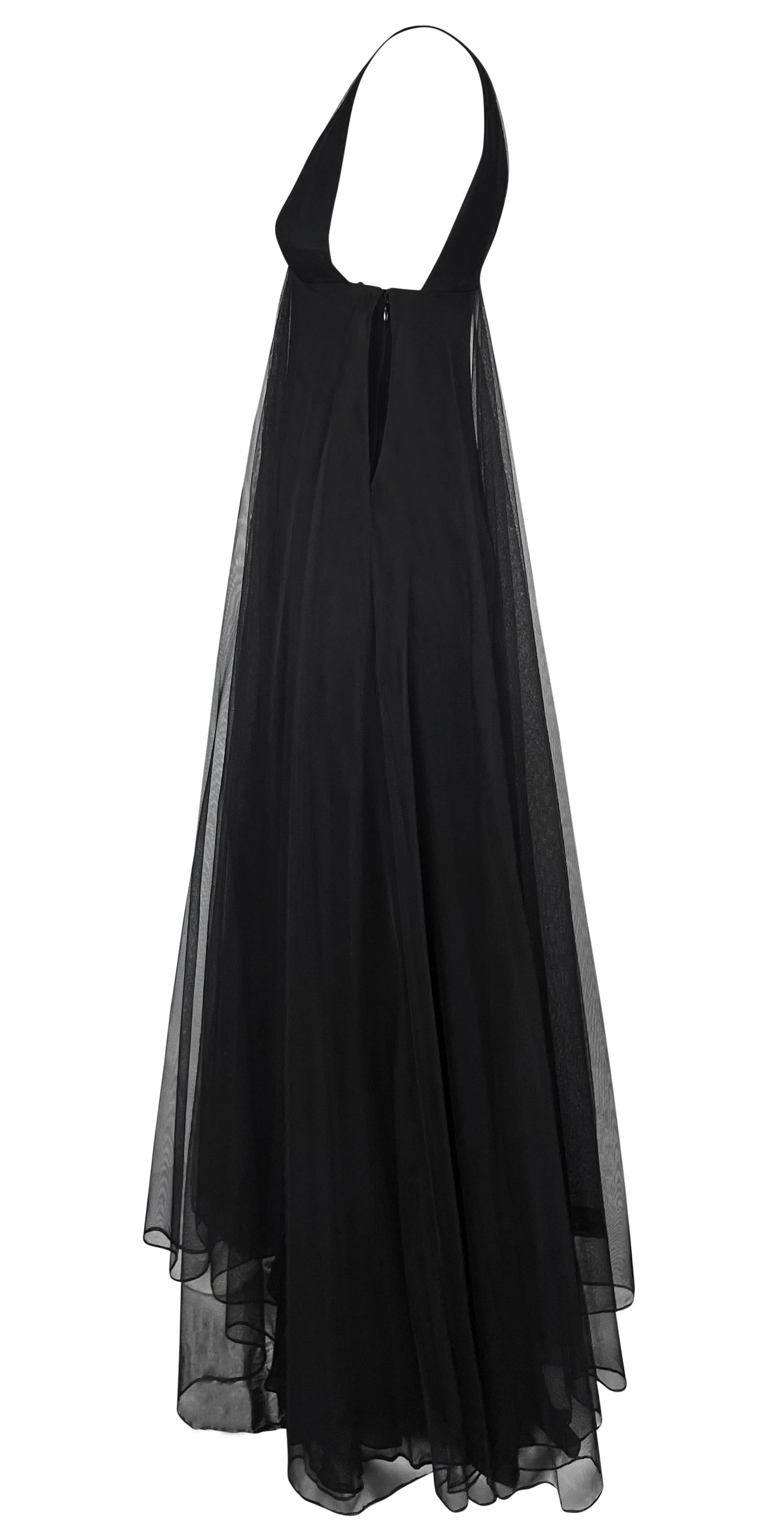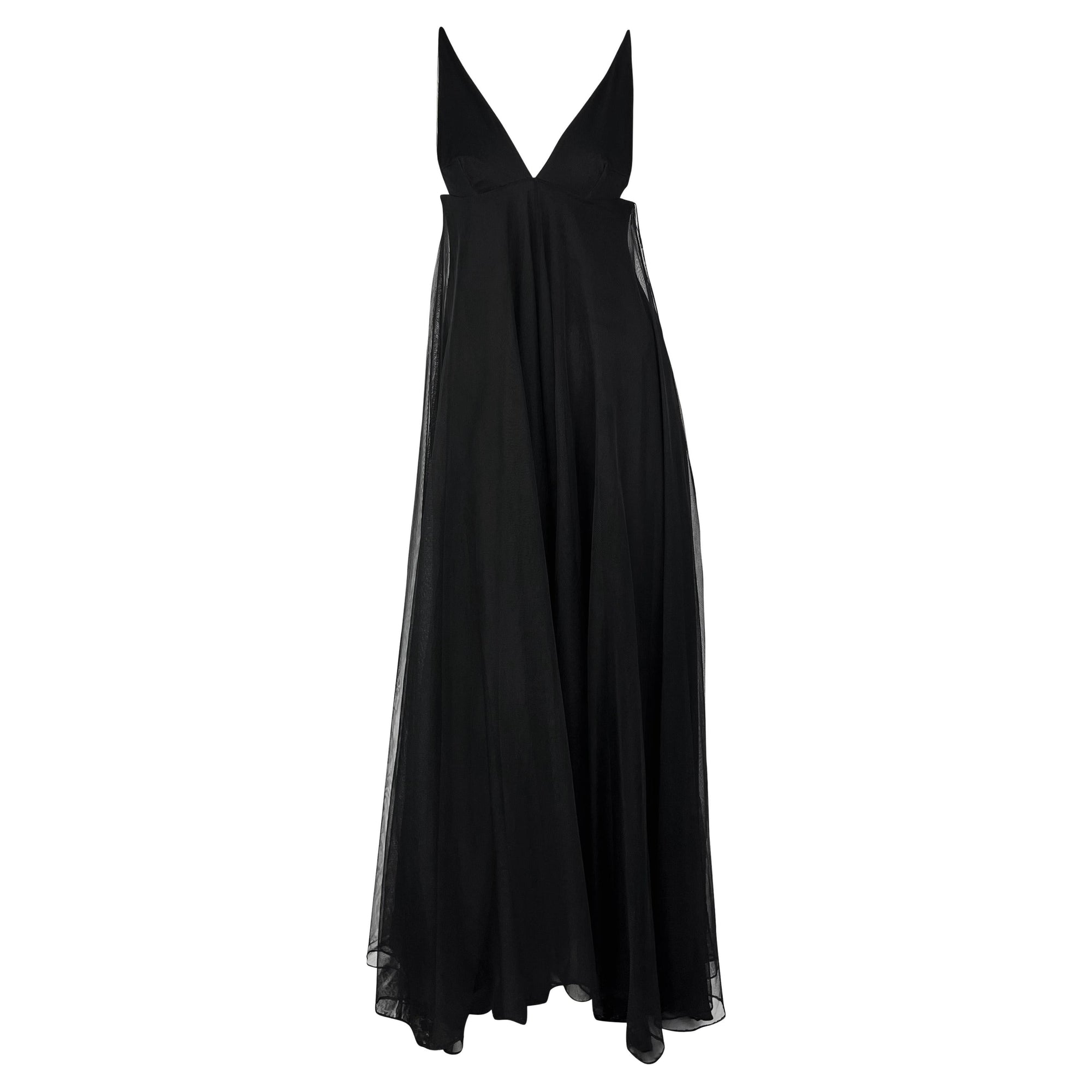 F/W 1998 Gucci by Tom Ford Runway Black Layered Tulle Sheer Plunge Gown