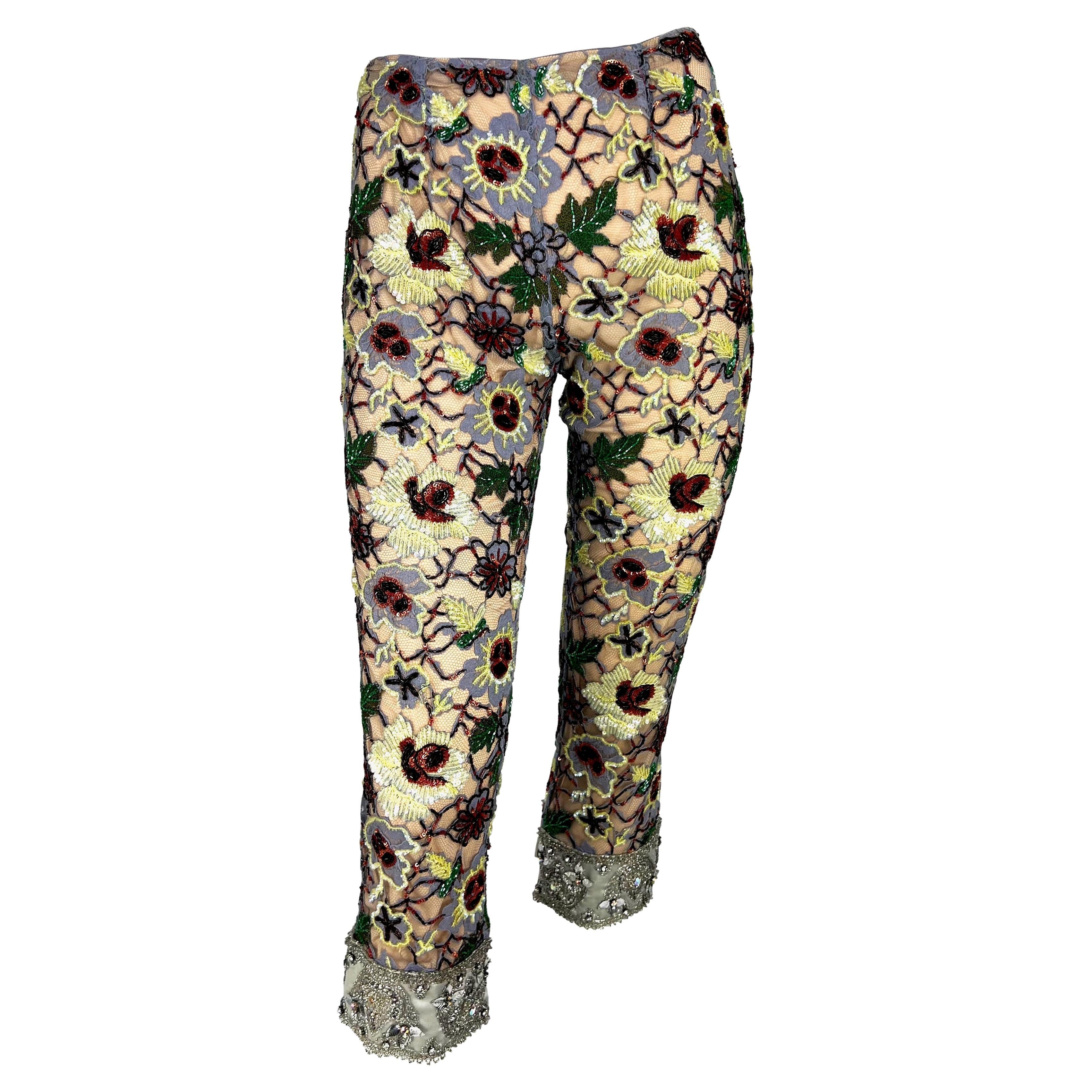 F/W 1999 Dolce & Gabbana Runway Floral Beaded Rhinestone Cropped Pants NWT