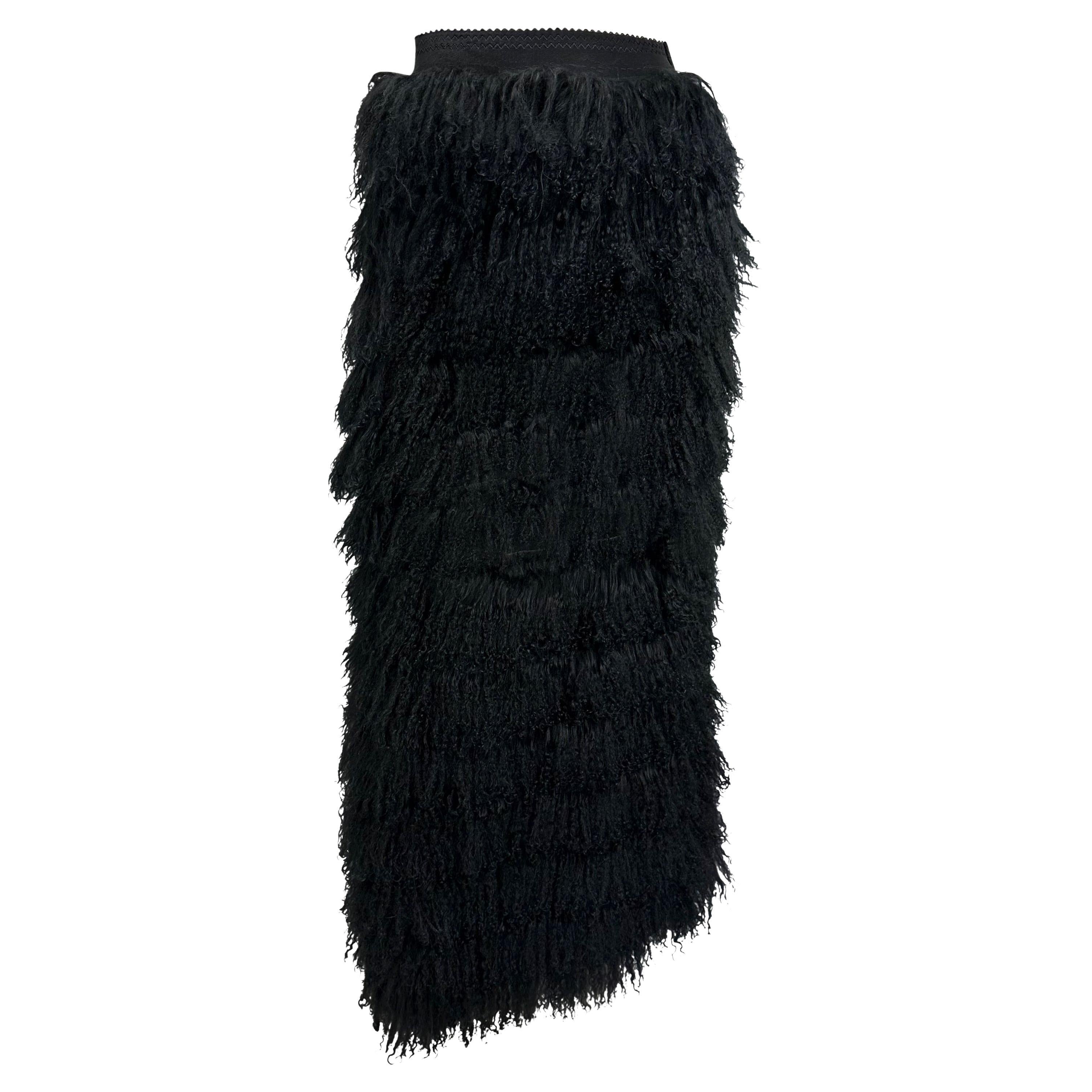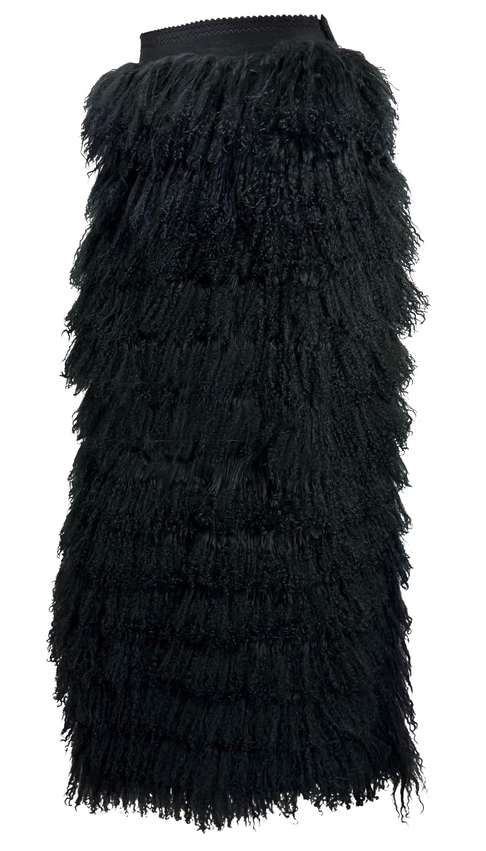 F/W 1999 Dolce & Gabbana Runway Mongolian Lamb Tiered Fur Sheer Black Skirt