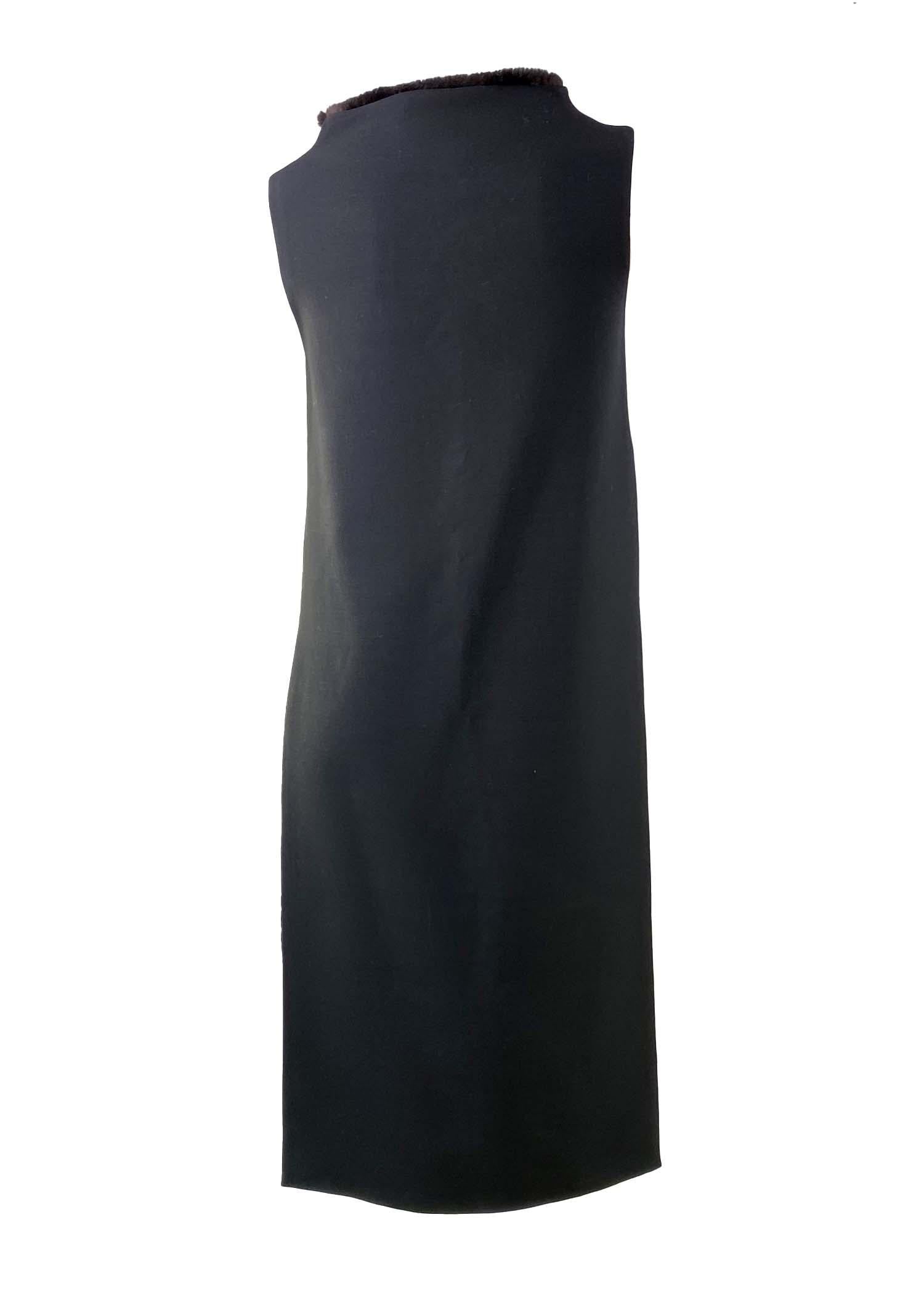 F/W 1999 Gianni Versace by Donatella Black Fur Trimmed Tunic Tent Dress
