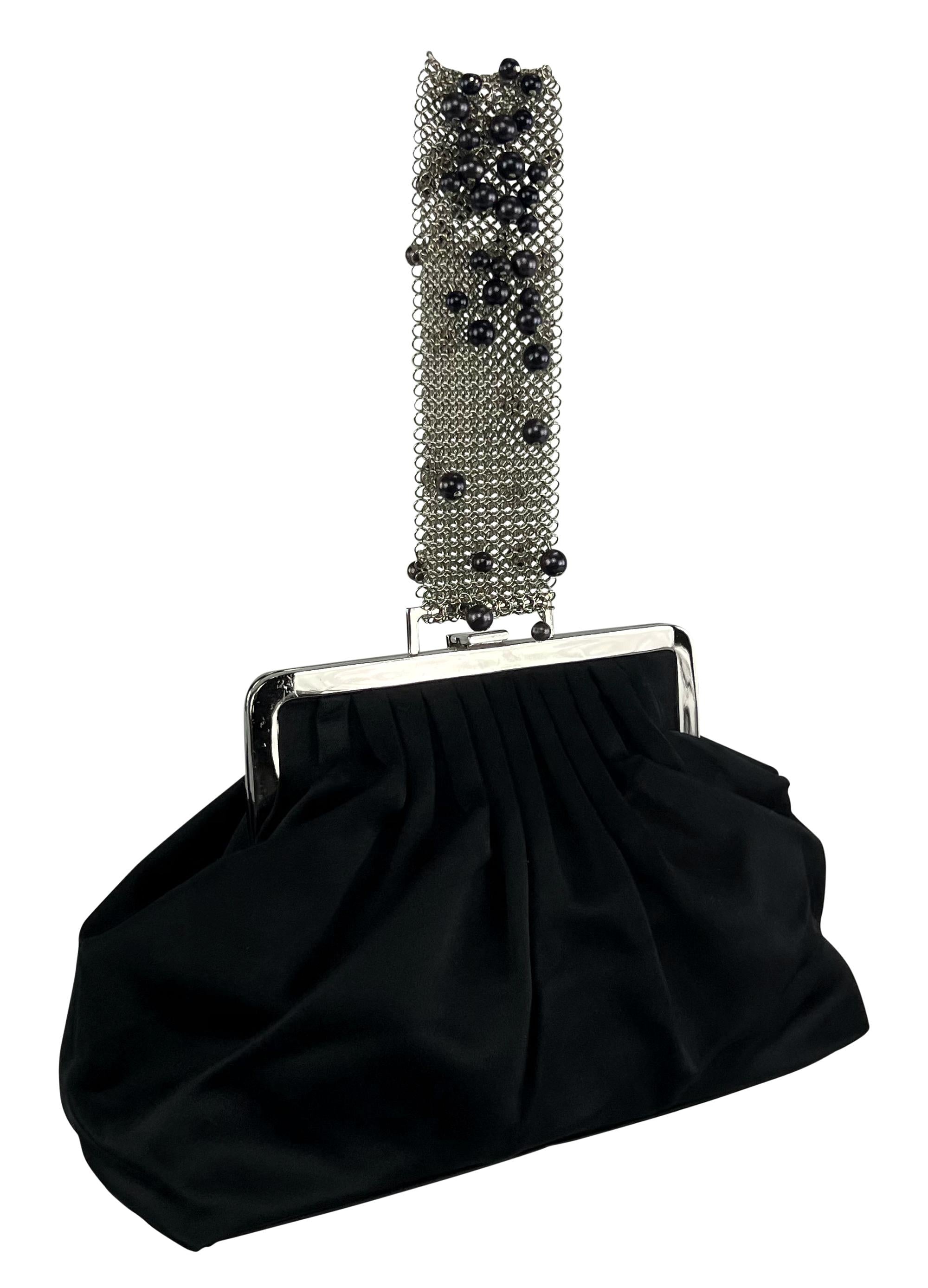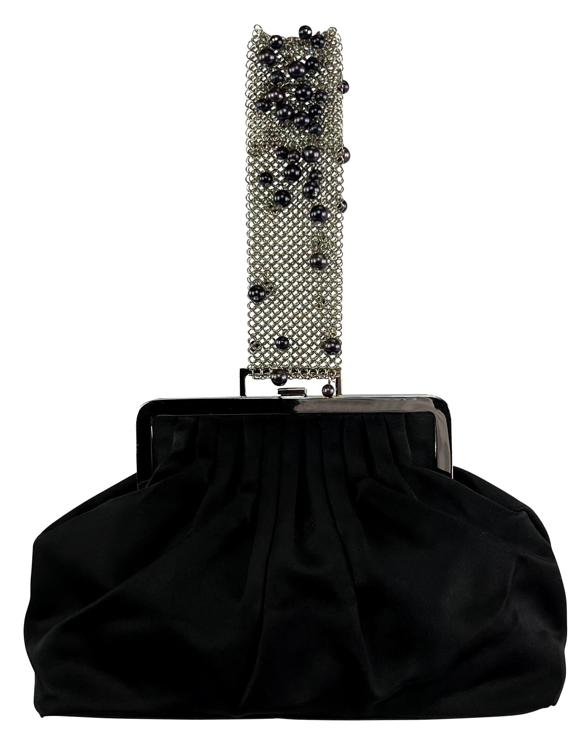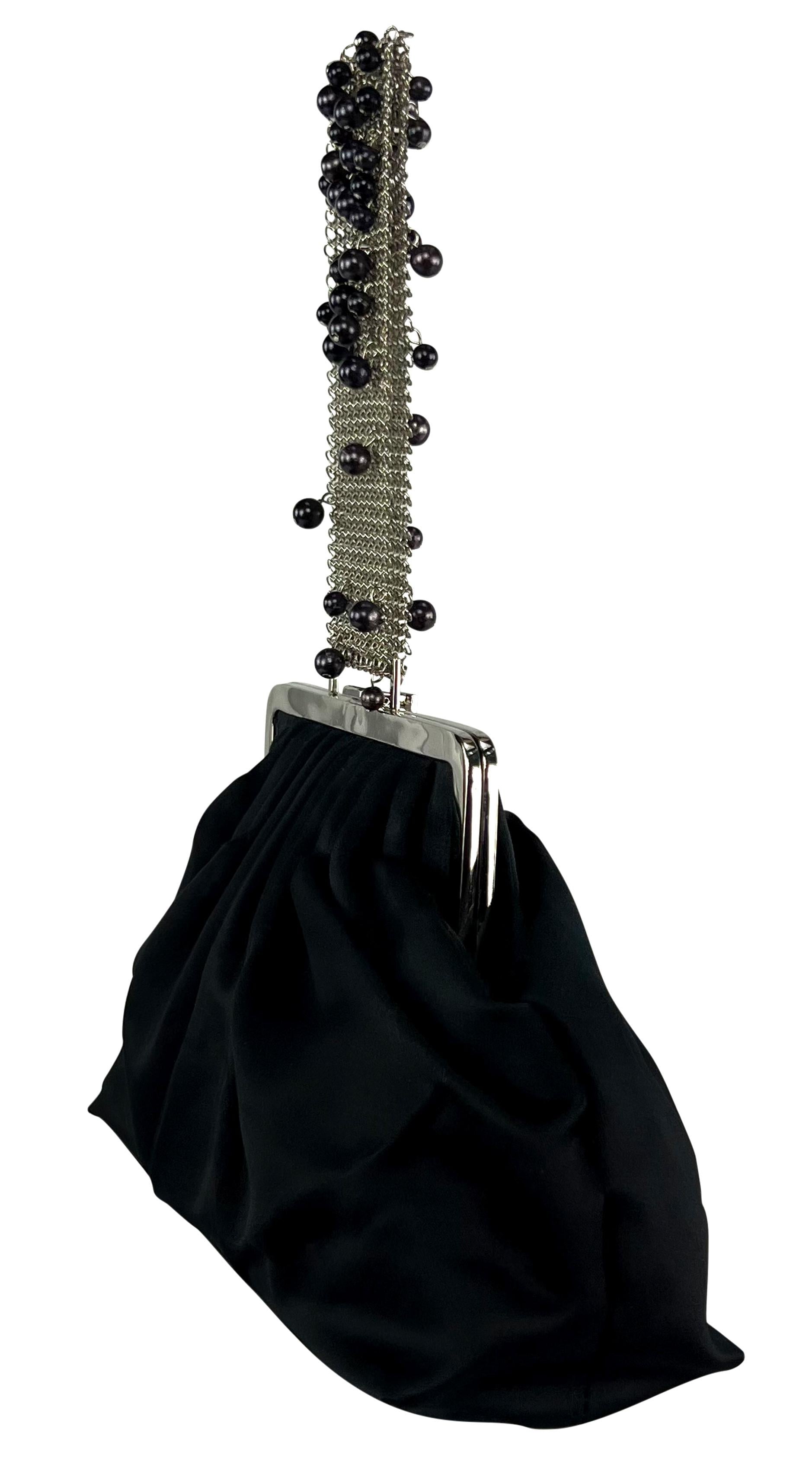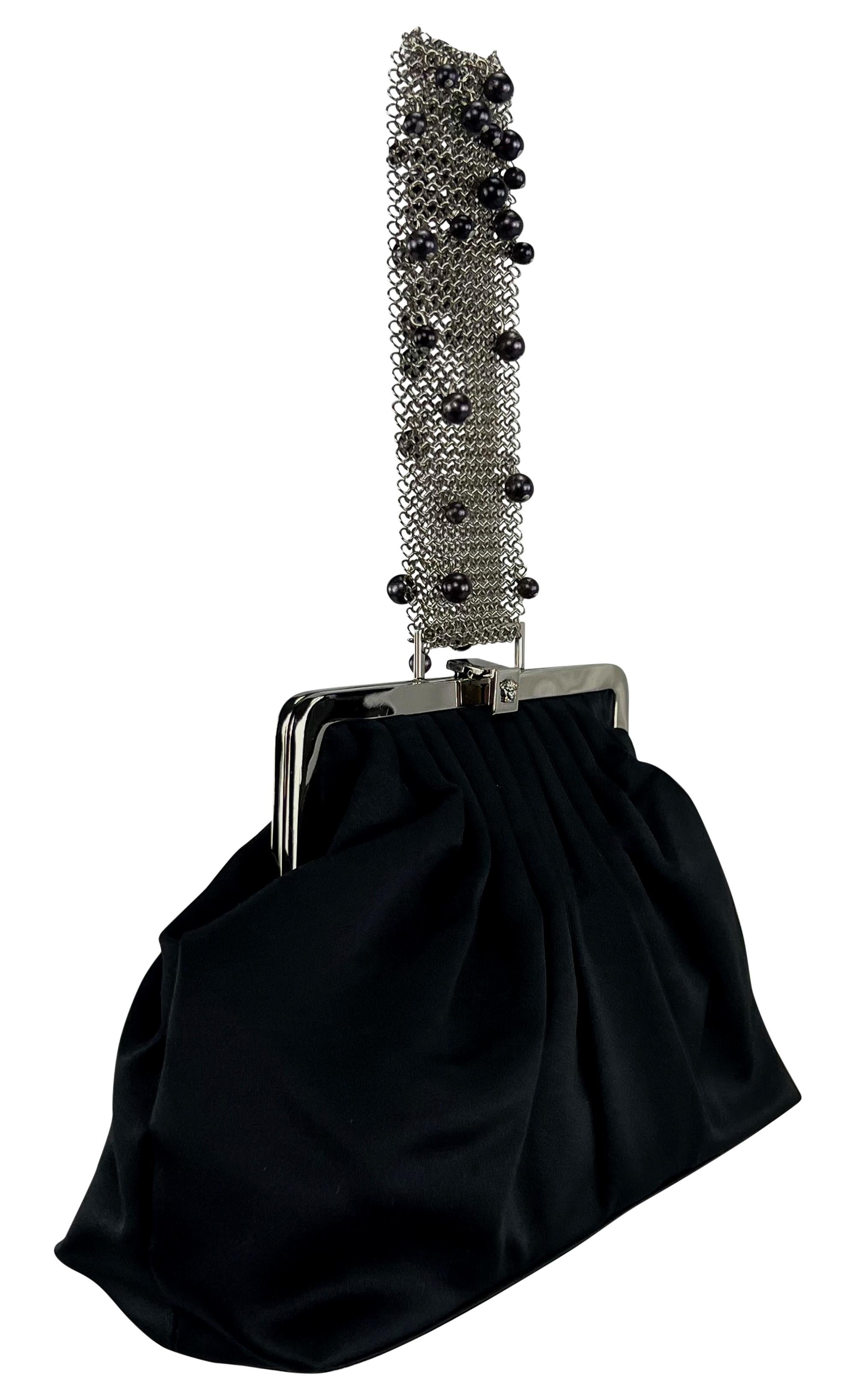 F/W 1999 Gianni Versace by Donatella Black Pearl Chainmail Satin Evening Bag