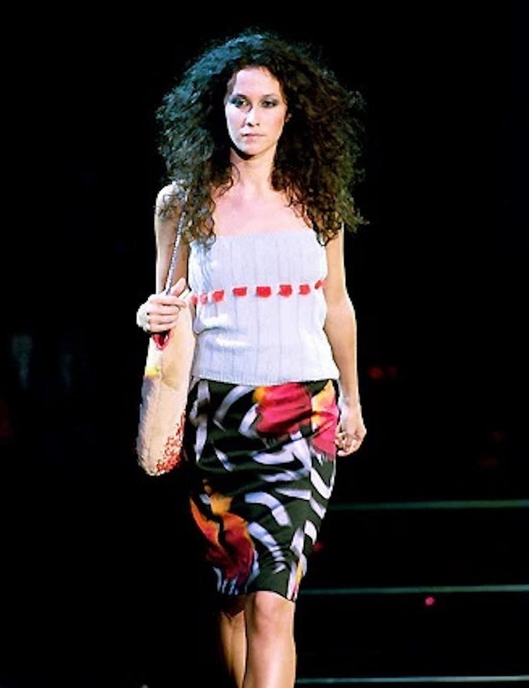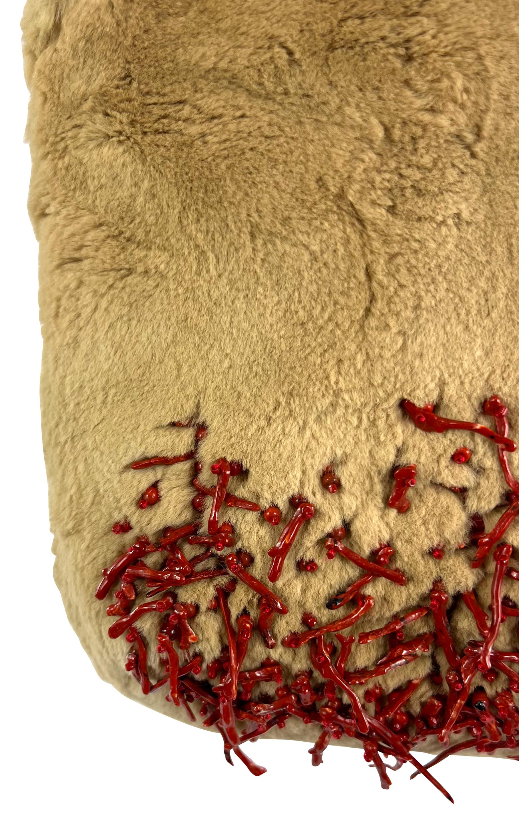 This Gianni Versace by Donatella shoulder bag from Fall/Winter 1999 is crafted in a camel-toned fur adorned with intricate coral embellishments at the base. Featuring a silver-tone chain strap and coral lizard skin accents, a smaller variation of this bag was famously worn by Donatella Versace herself while out in NYC with JLo in 1999. A larger variation also appeared on the season's runway.