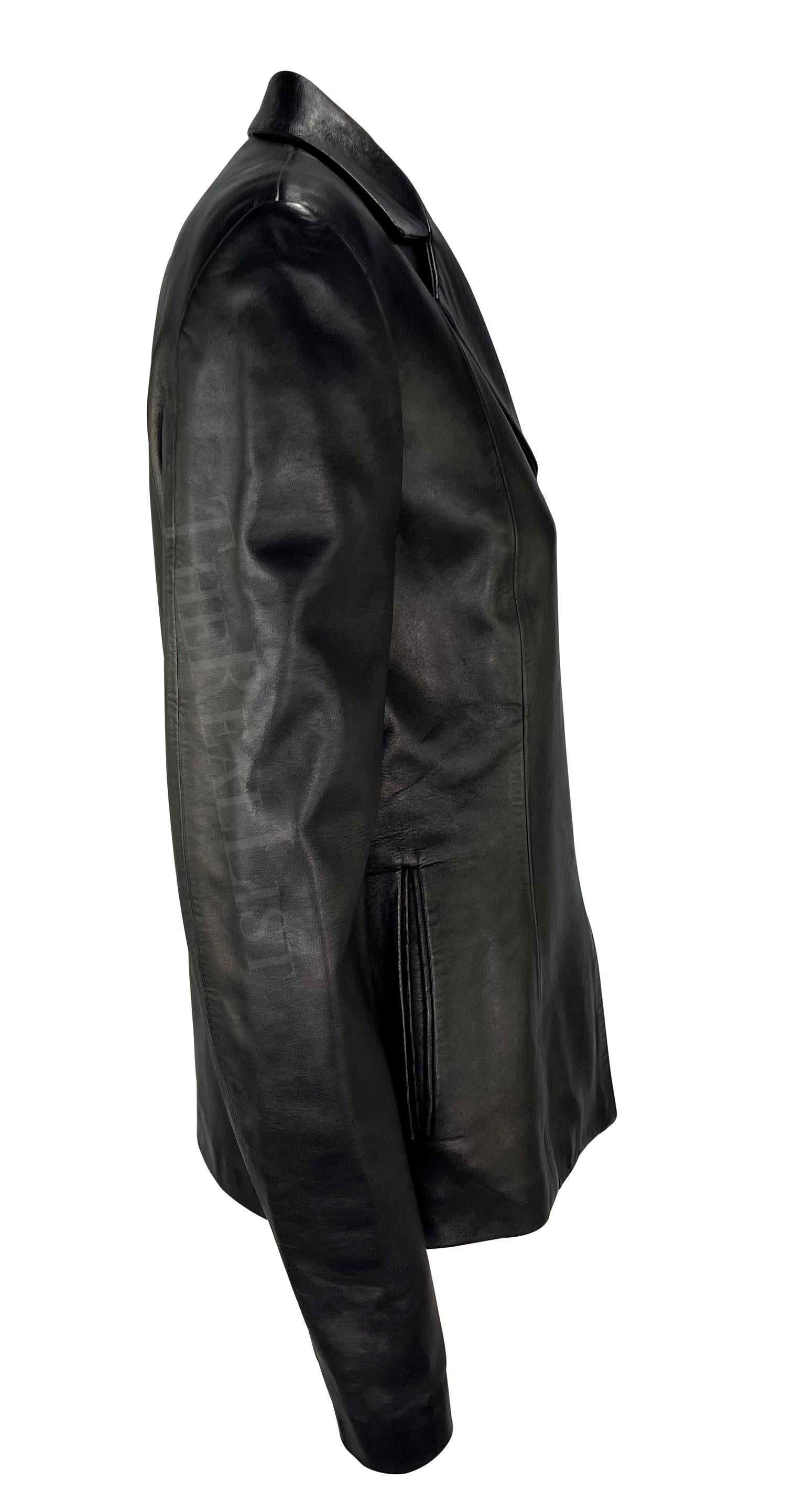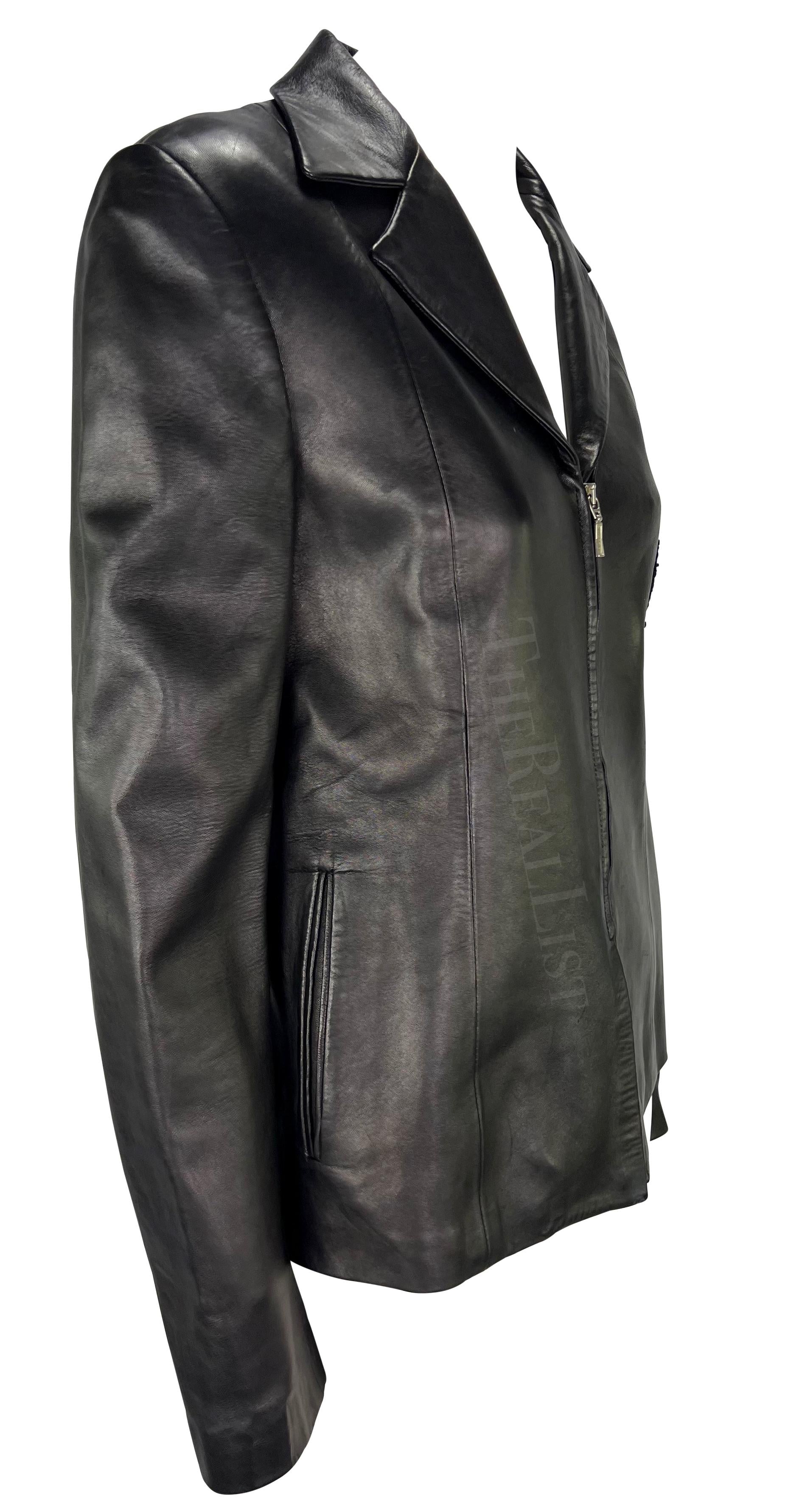 F/W 1999 Gianni Versace by Donatella Logo Embroidered Black Leather Jacket
