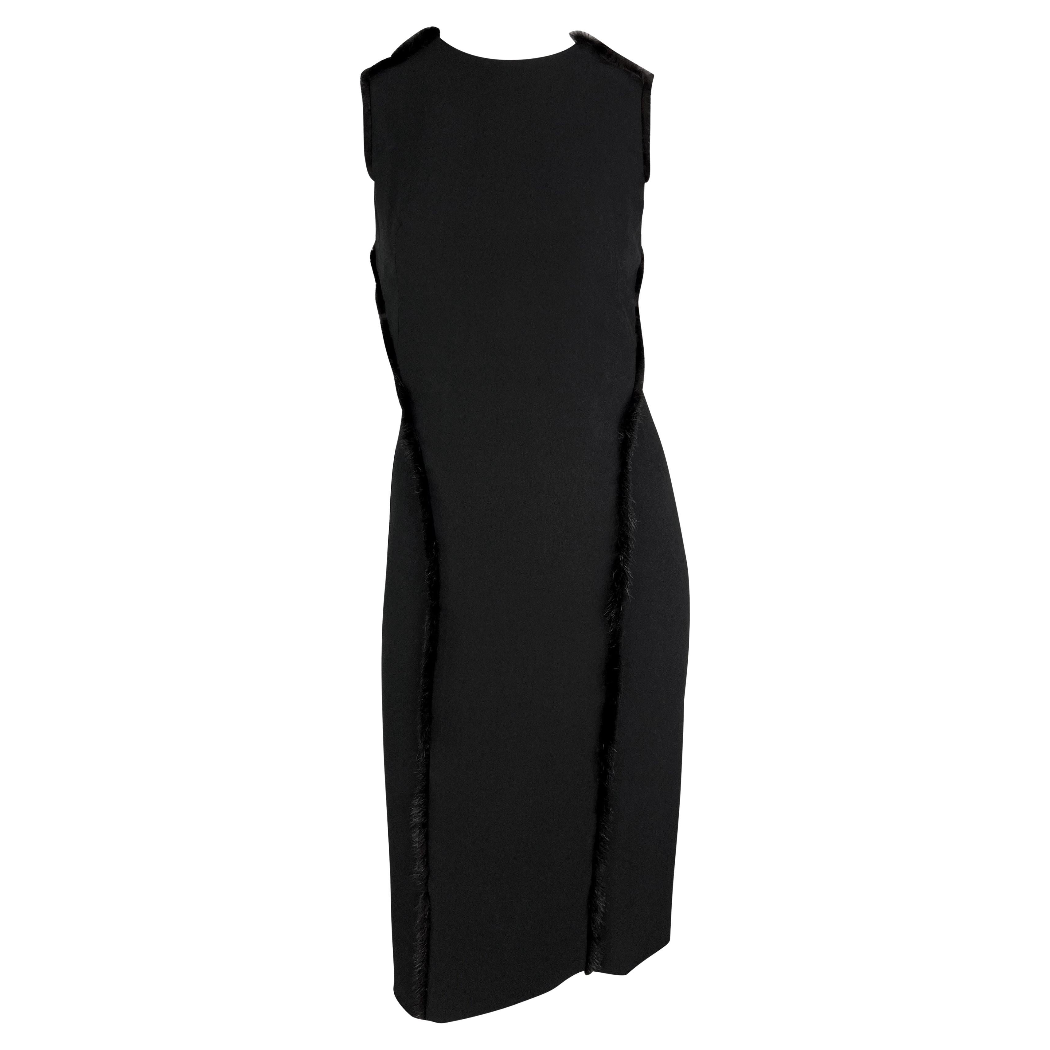 F/W 1999 Gianni Versace by Donatella Mink Fur Trimmed Sleeveless Pencil Dress