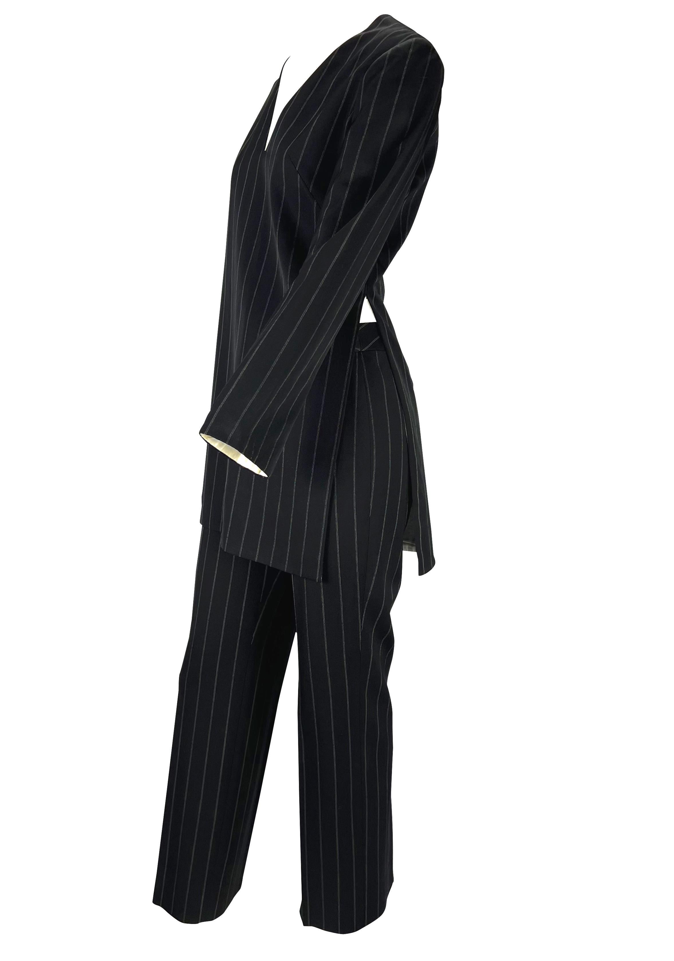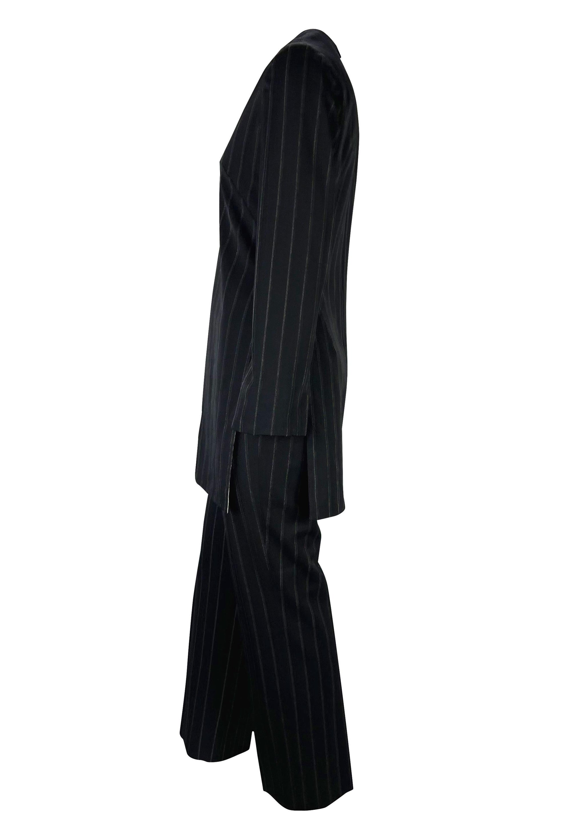 F/W 1999 Gianni Versace by Donatella Pinstripe Tunic Wool Pant Suit