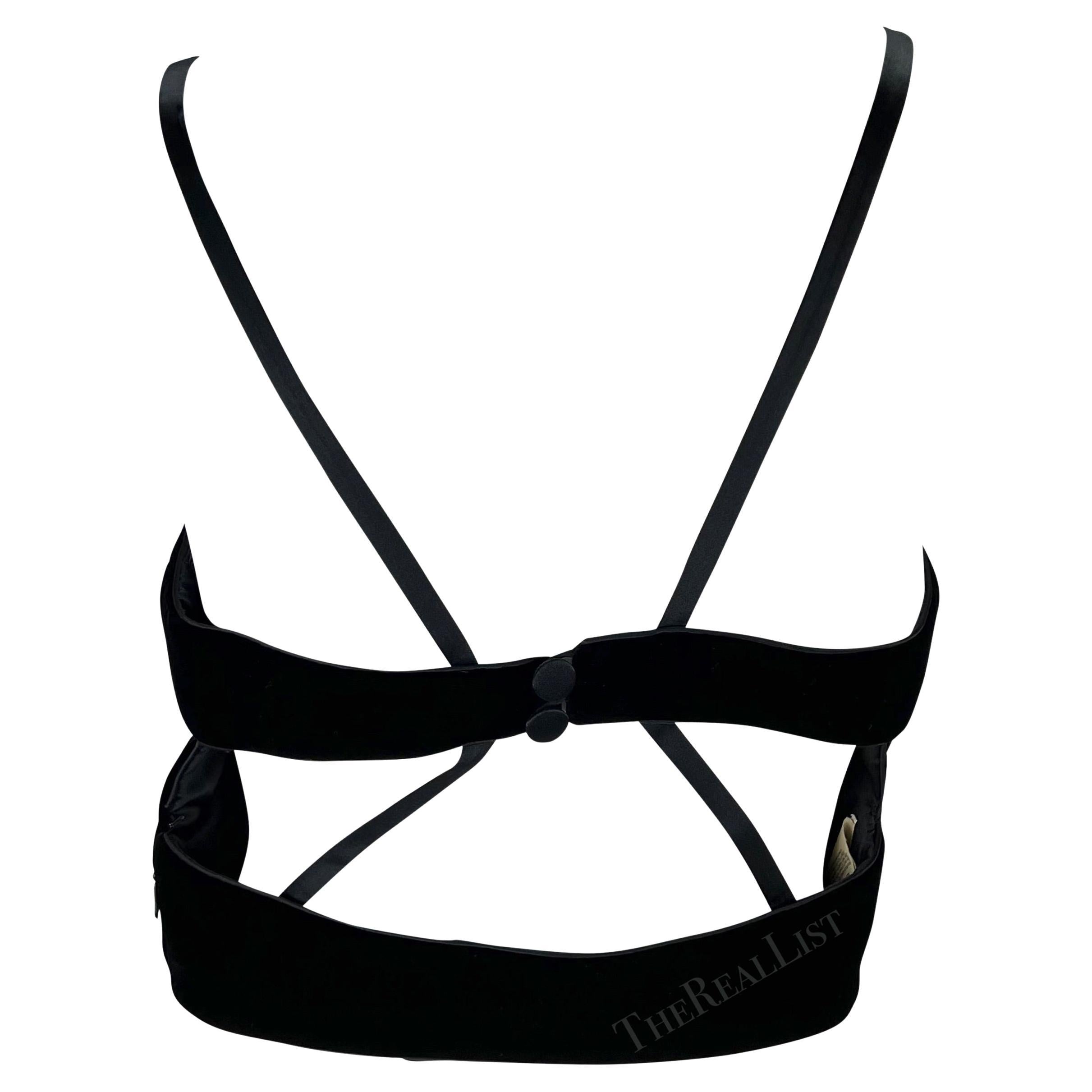 F/W 1999 Giorgio Armani Black Velvet Satin Trim Backless Strap Crop Top