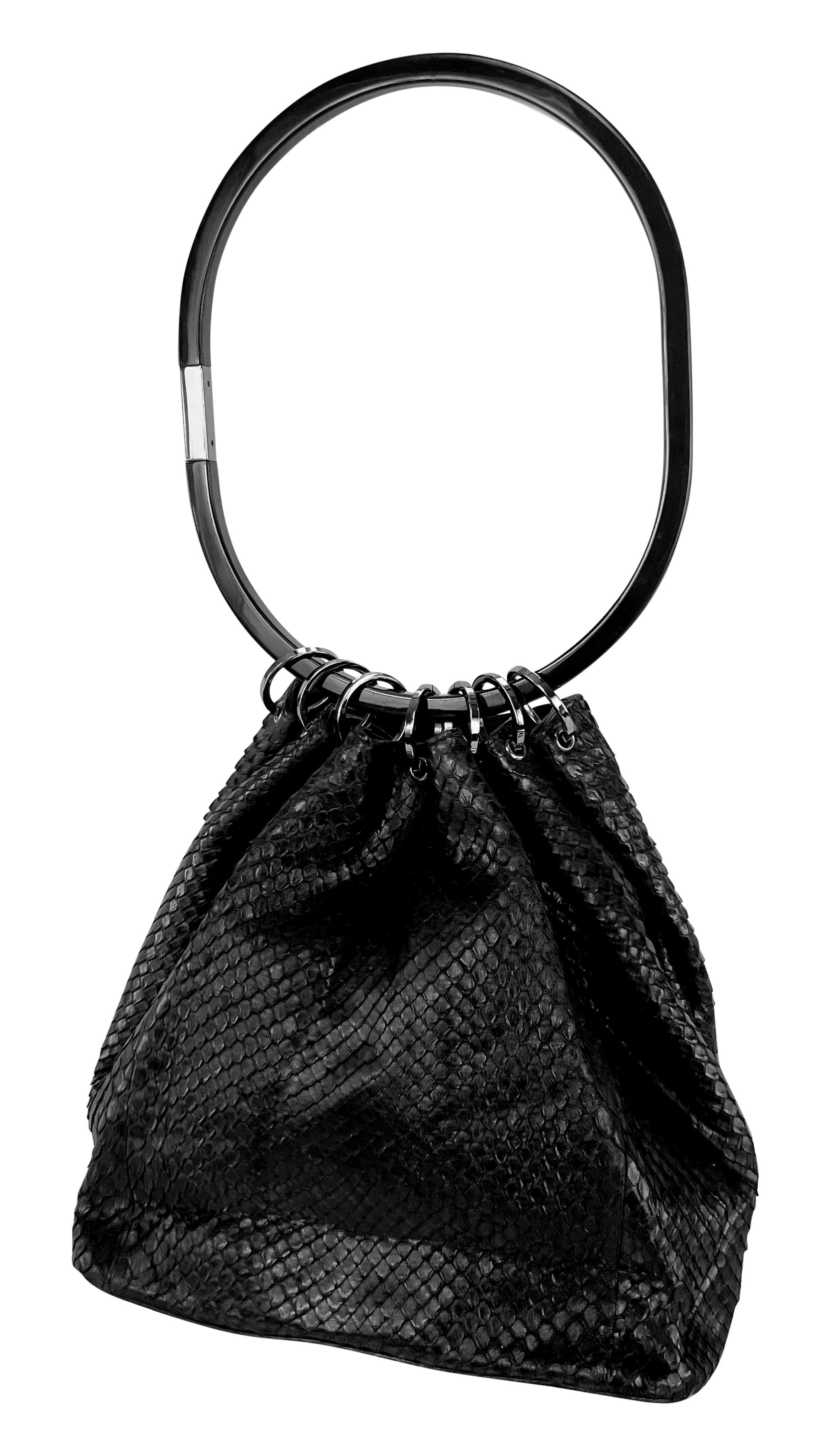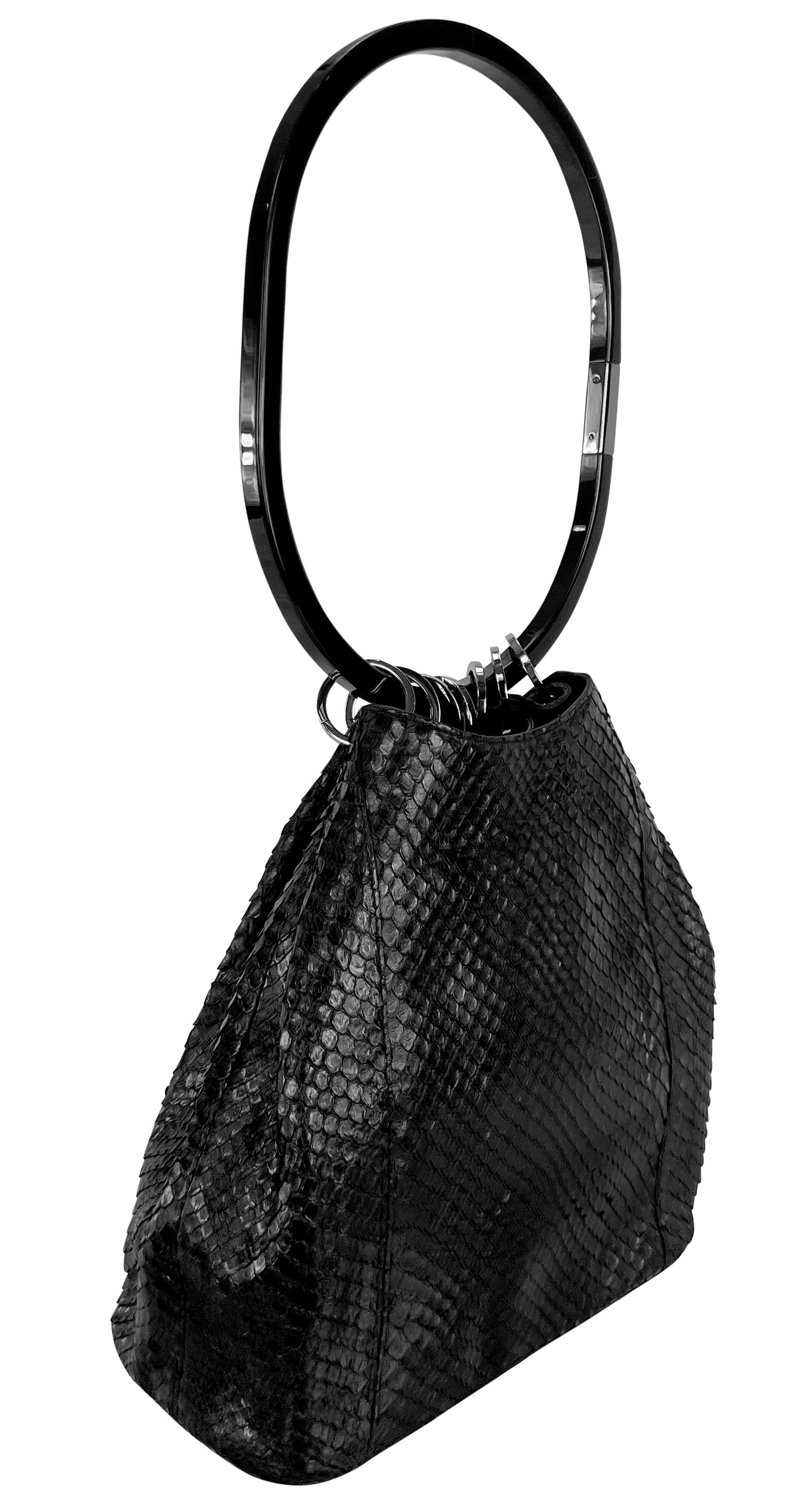 F/W 1999 Gucci by Tom Ford Runway Black Genuine Python Acrylic Ring Shoulder Bag