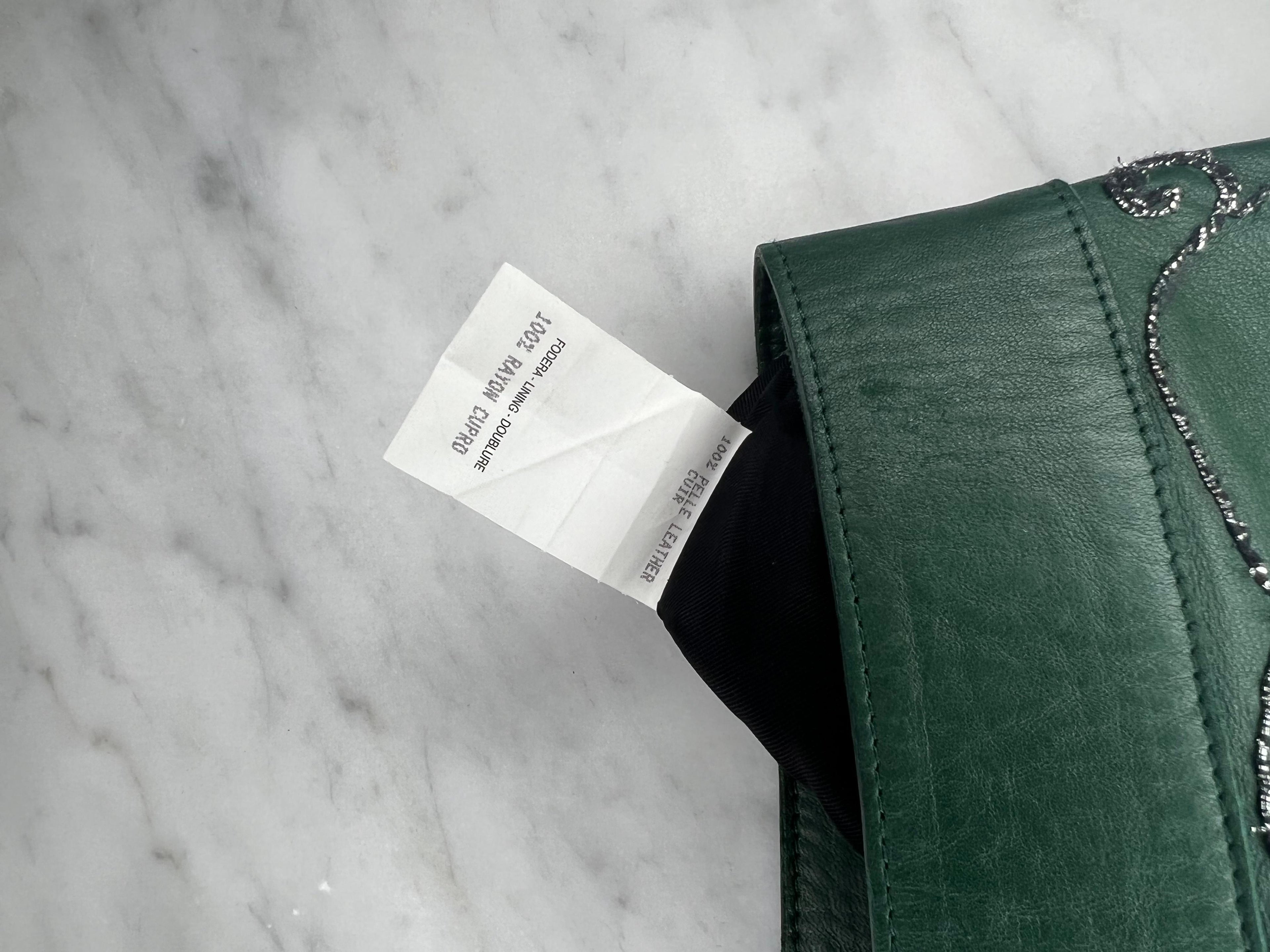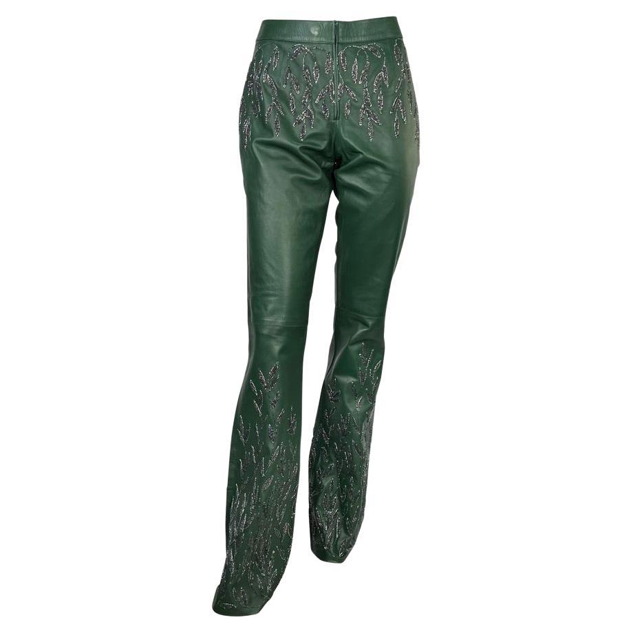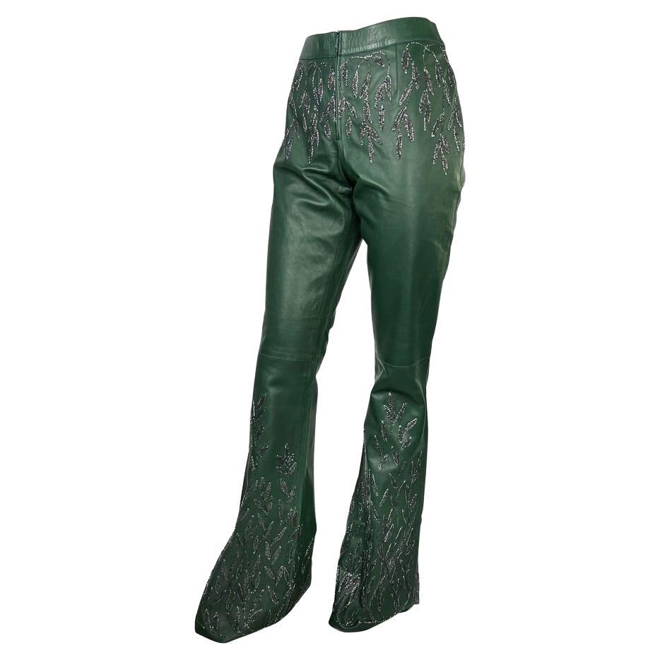 F/W 1999 Gucci Tom Ford Runway Embellished Green Leather Flare Pants Documented