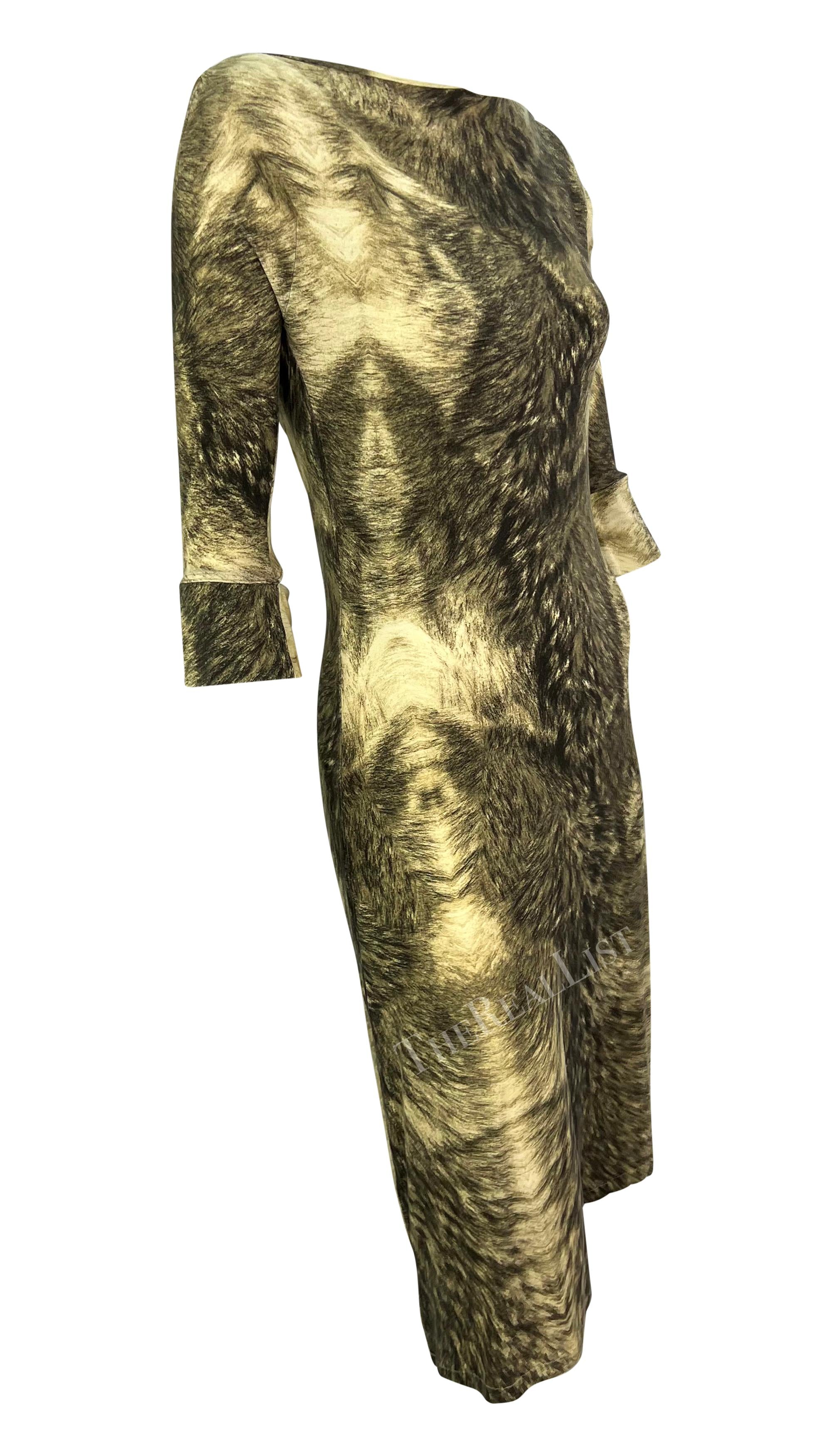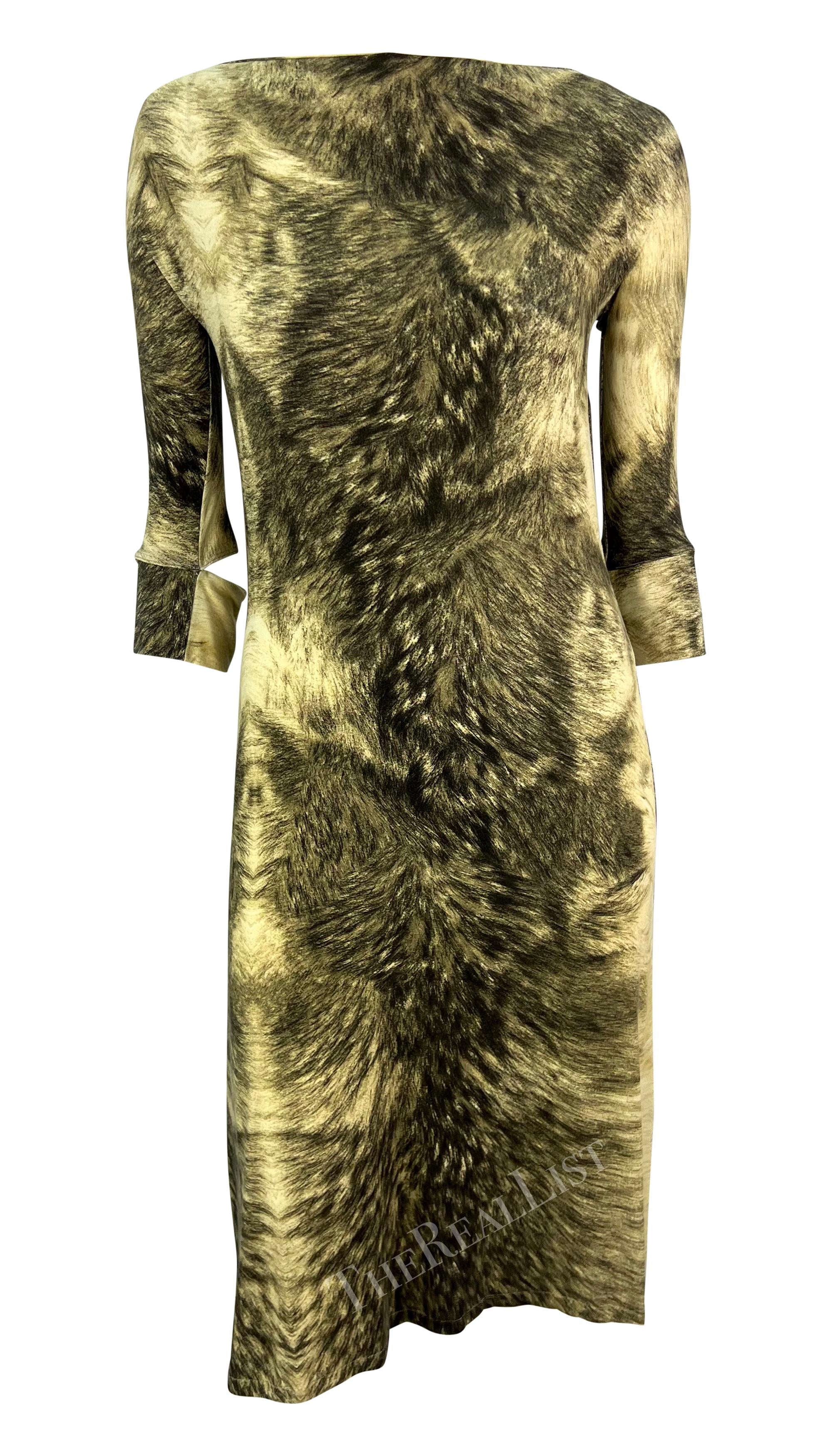 F/W 1999 Roberto Cavalli Grey Animal Print Trompe l'Oeil Stretch Cowl Neck Dress