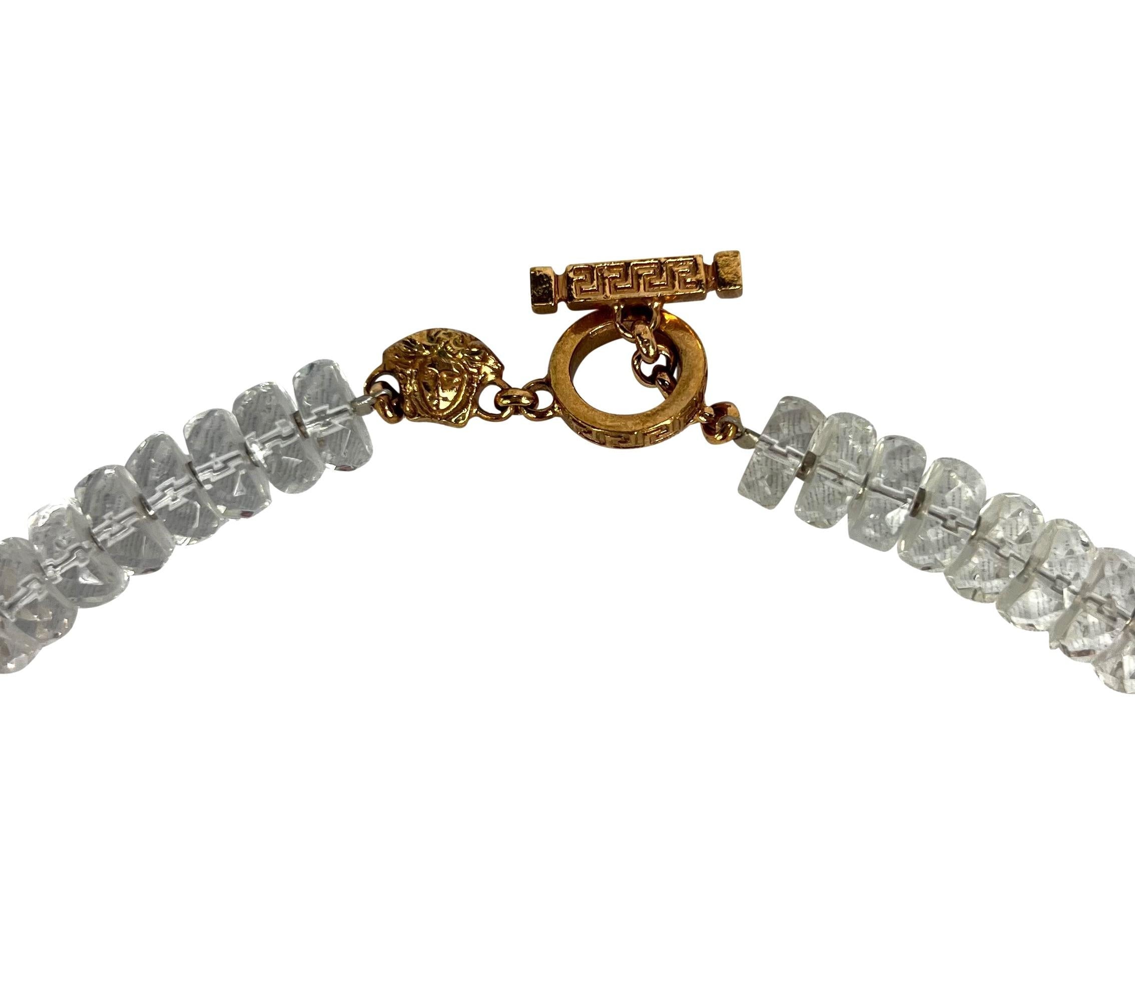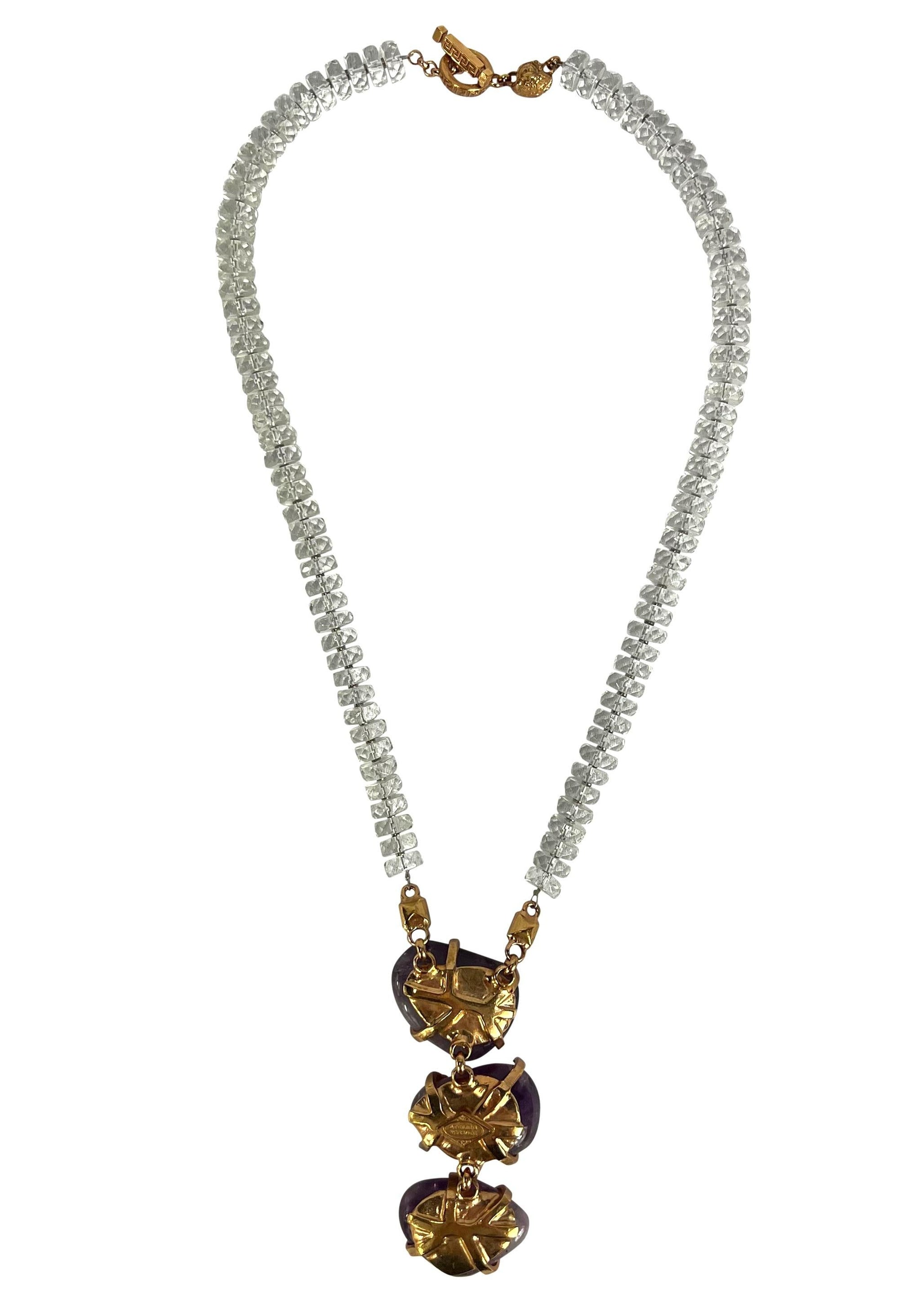 Presenting a gorgeous crystal and amethyst Atelier Versace necklace designed by Donatella Versace. From the Fall/Winter 2000 collection, a similar necklace debuted on the season's runway. This fabulous necklace features a transparent beaded crystal chain and is complete with three amethyst stones cascading down.