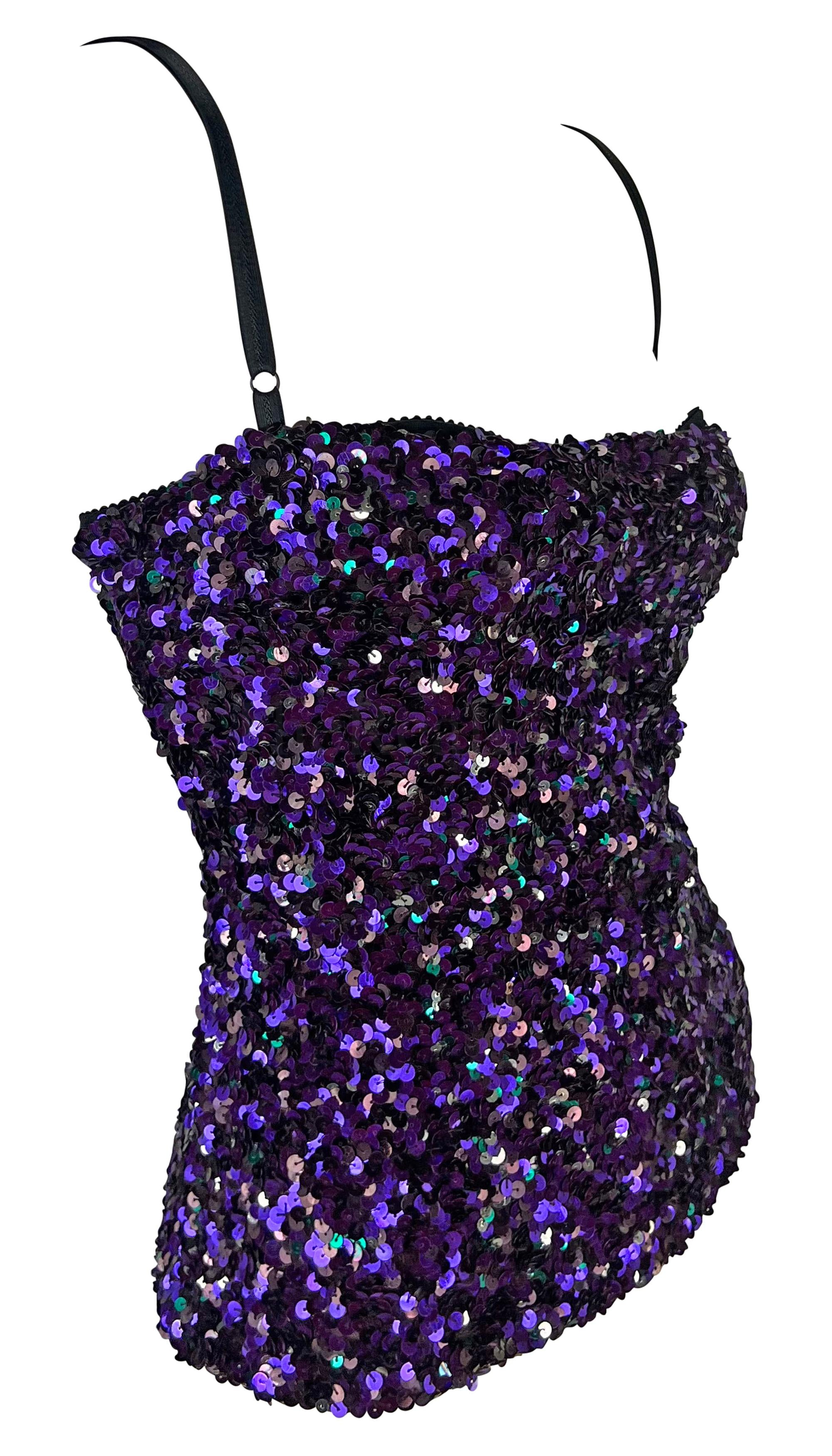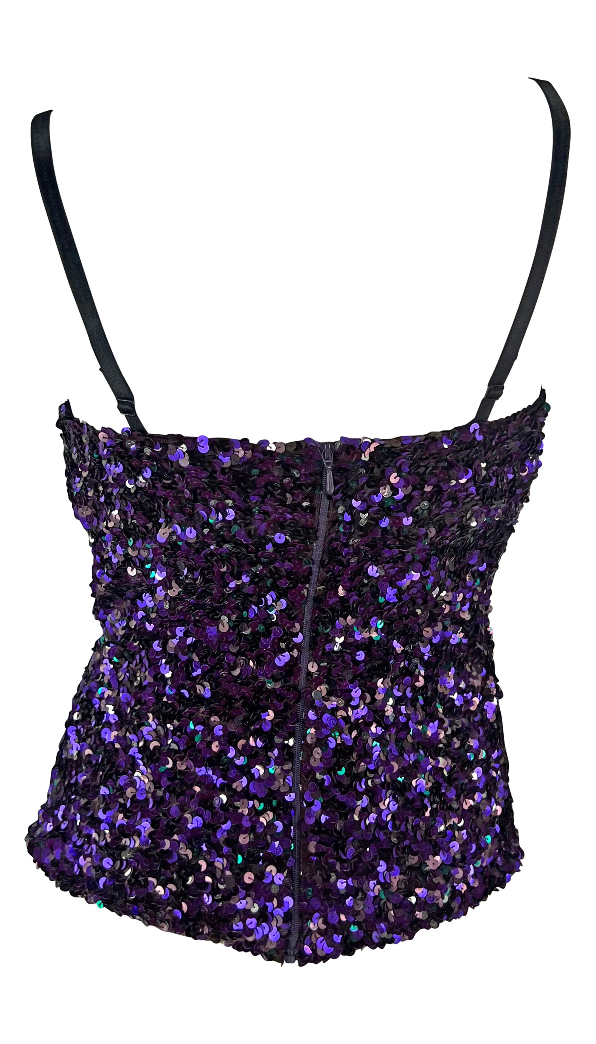 F/W 2000 Dolce & Gabbana Purple Sequin Bodycon Bustier Top