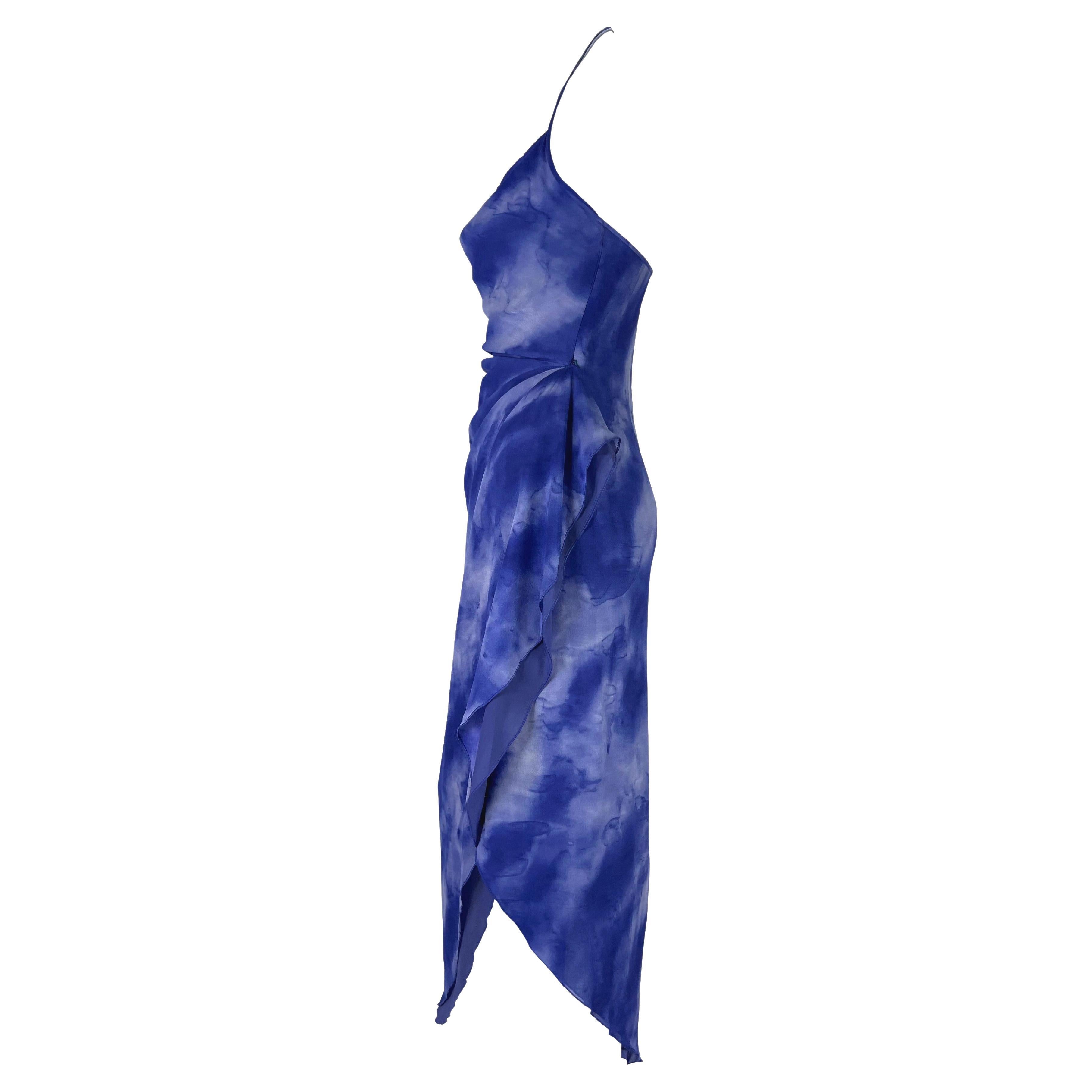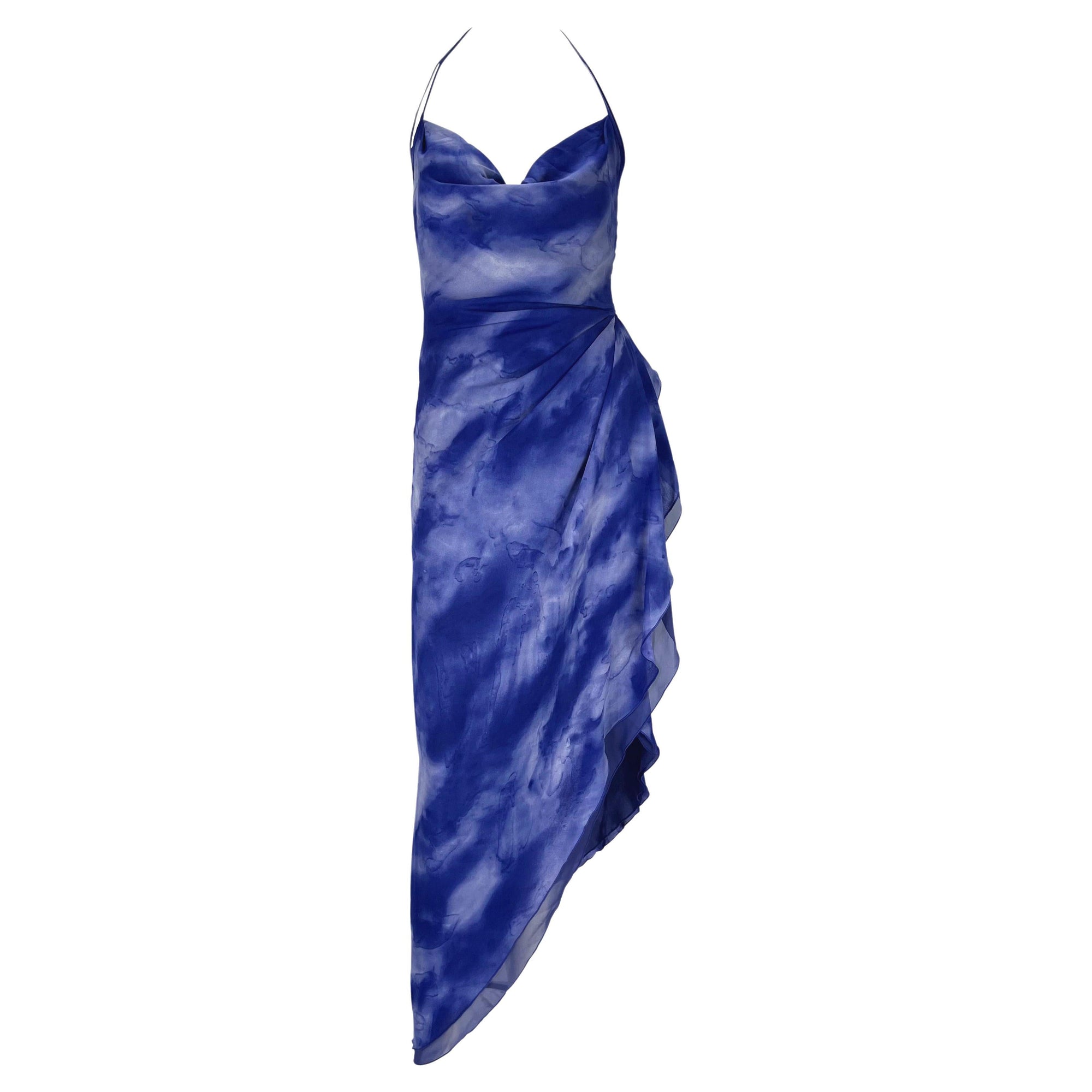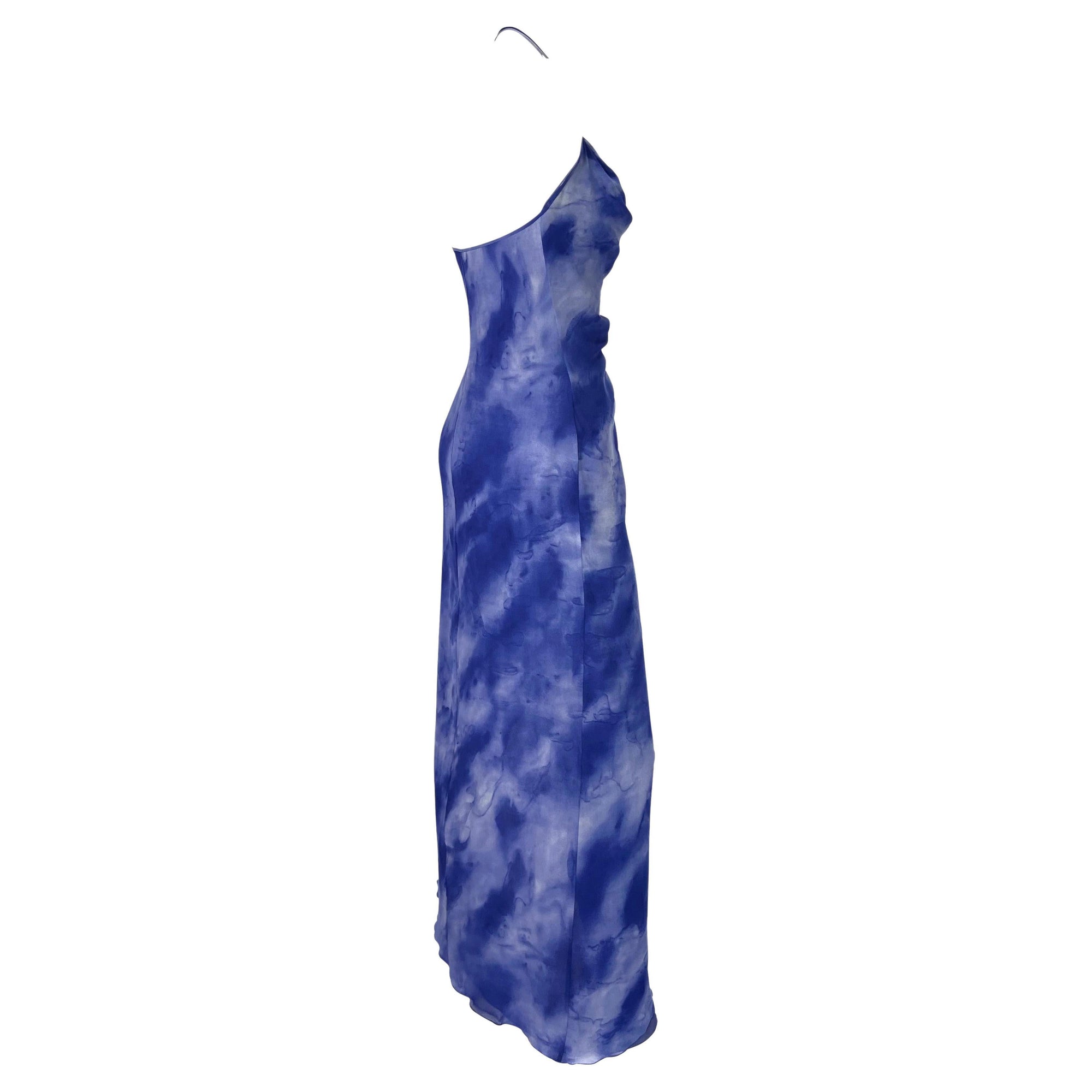 F/W 2000 Emanuel Ungaro Runway Ad Blue Watercolor Silk Chiffon Dress Y2K