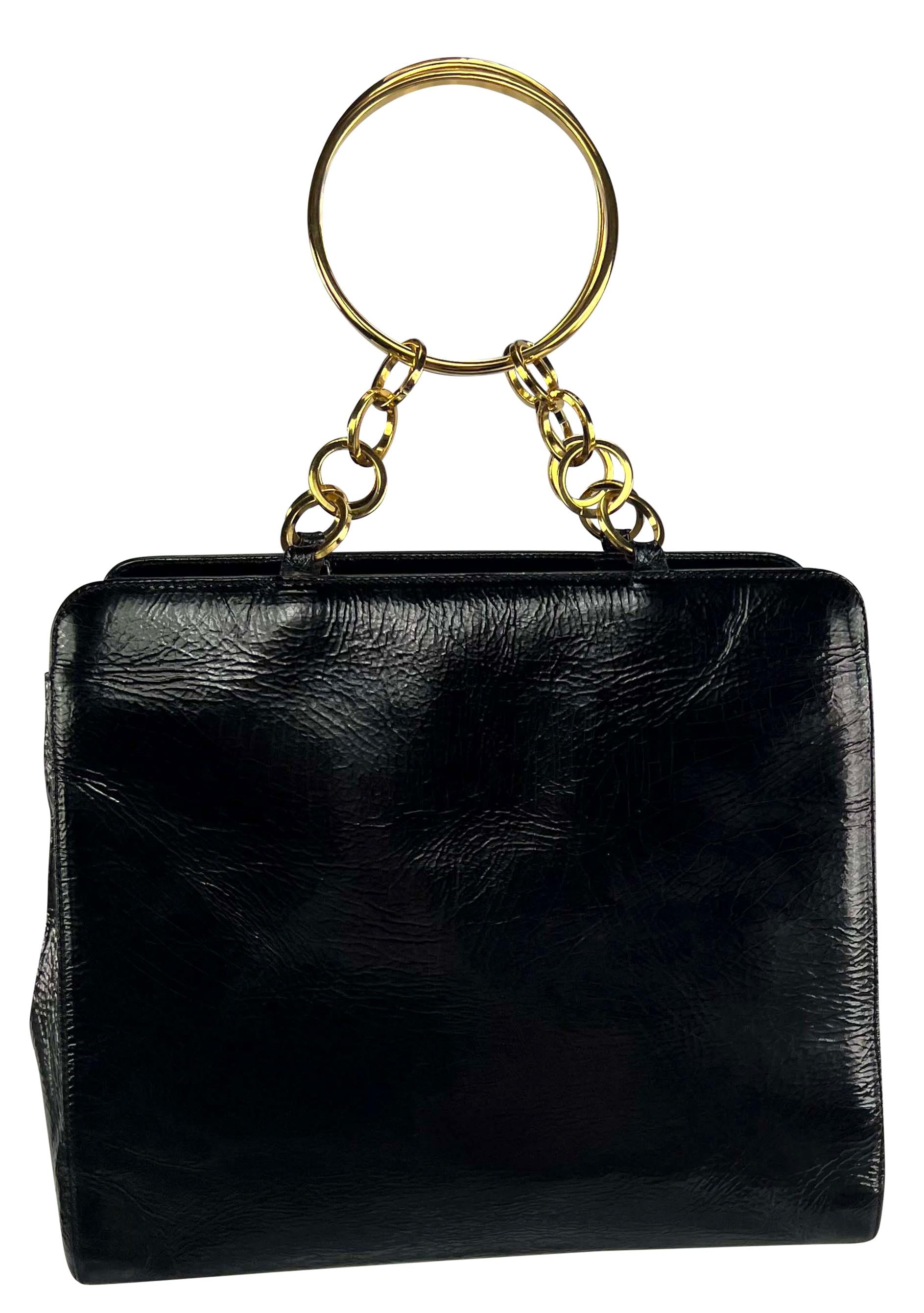 F/W 2000 Gianni Versace by Donatella Gold Ring Chain Black Patent Leather Bag