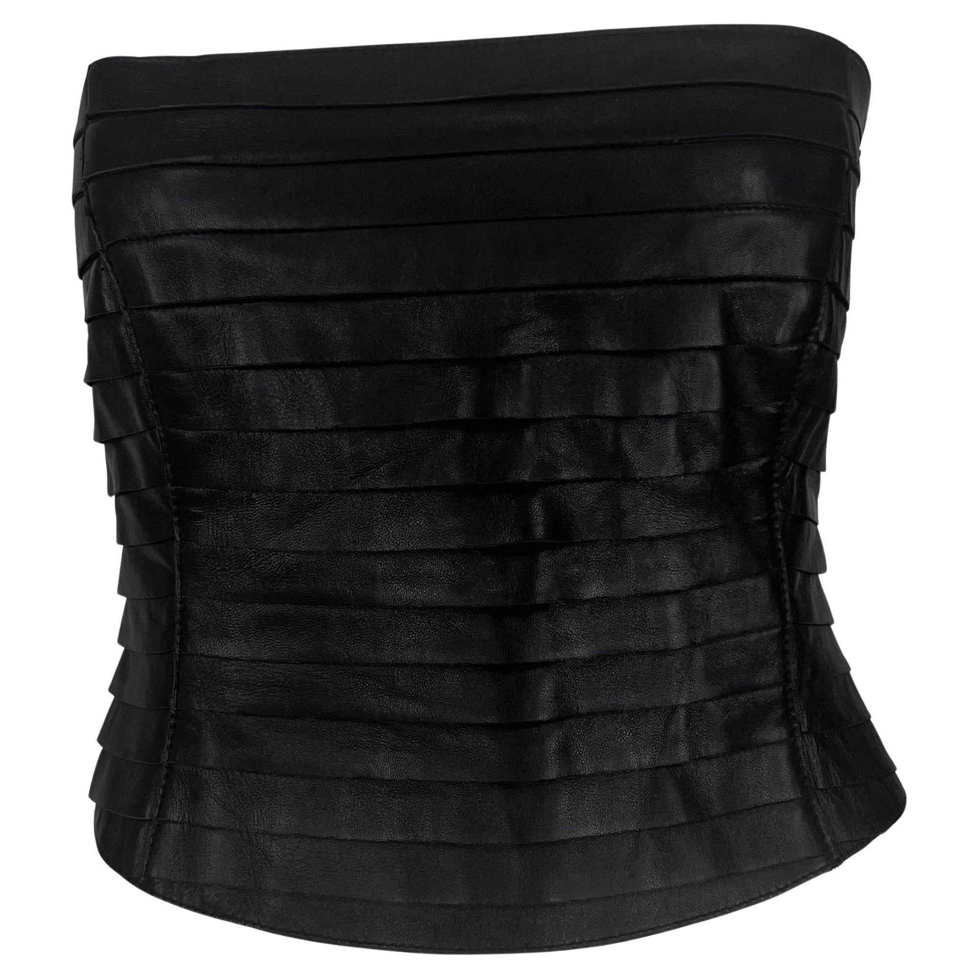 F/W 2000 Giorgio Armani Black Leather Strip Strapless Bustier Crop Top