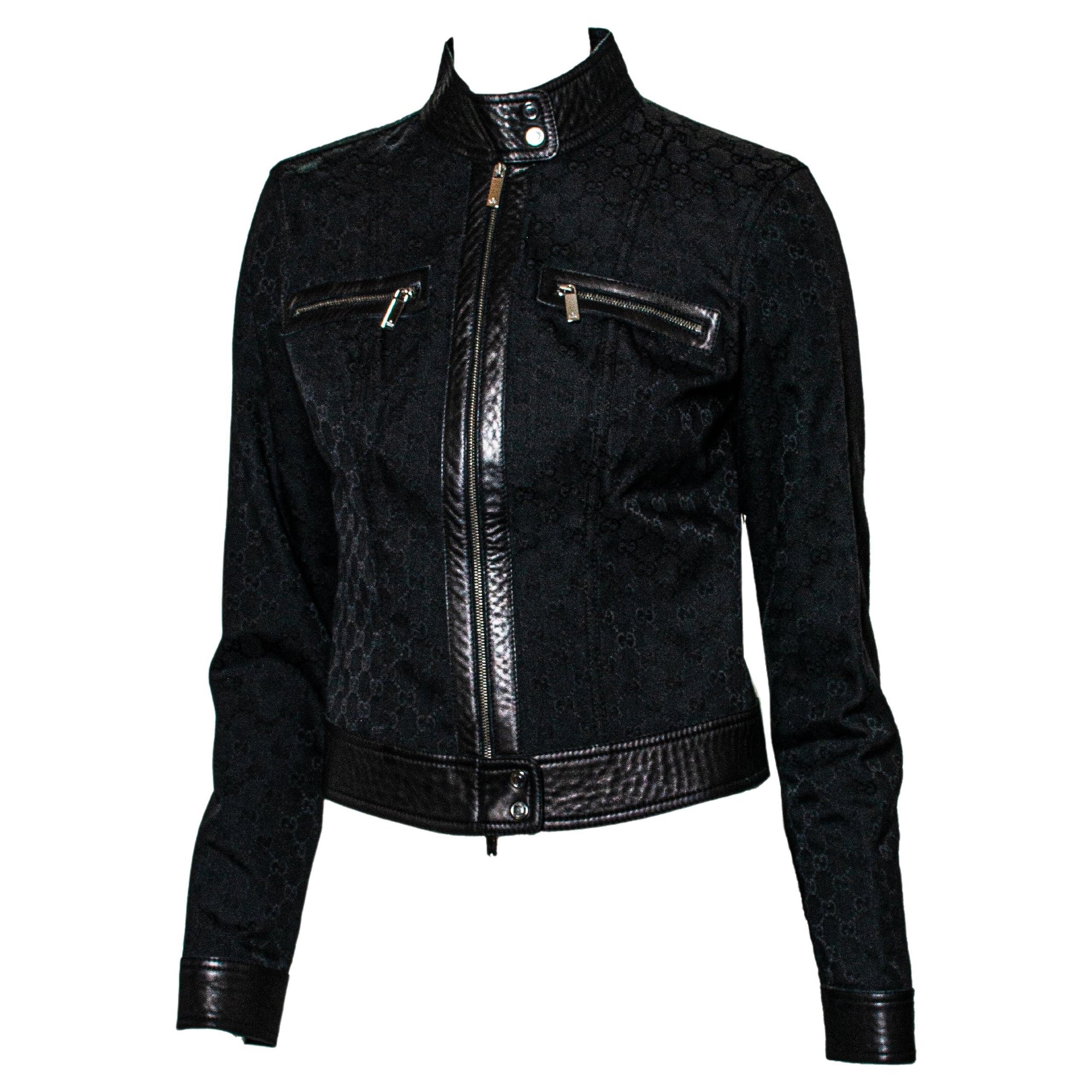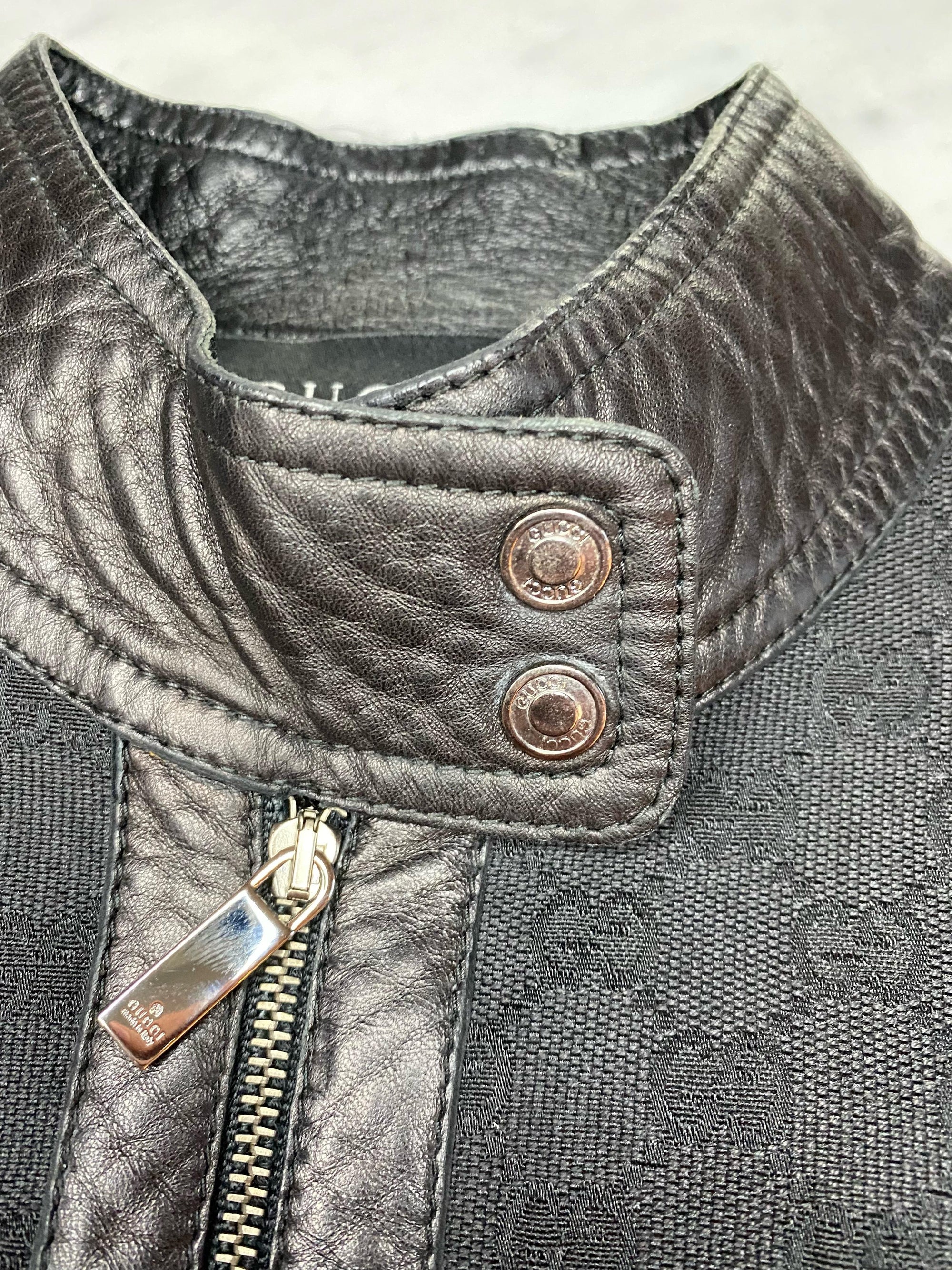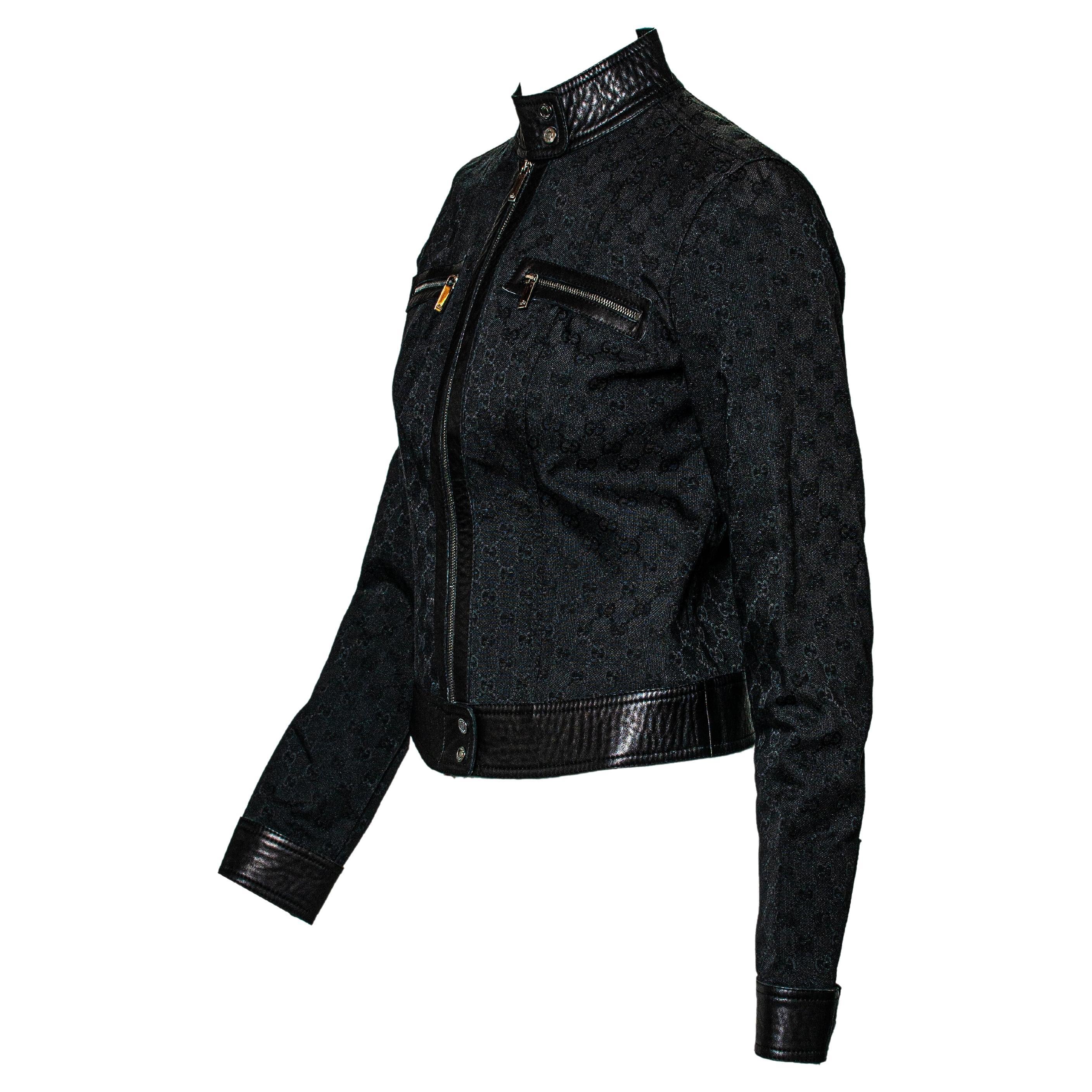F/W 2000 Gucci by Tom Ford Black GG Monogram Denim & Leather Moto Jacket Vintage
