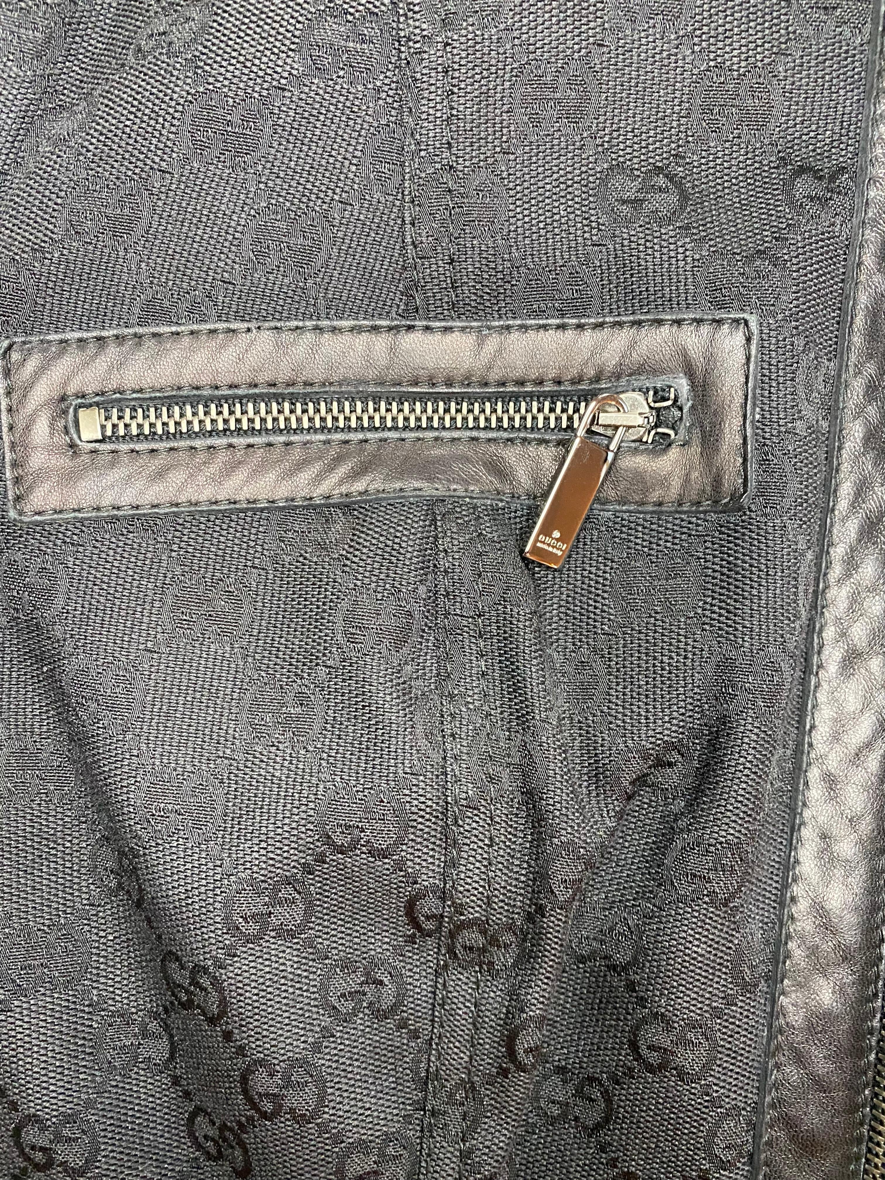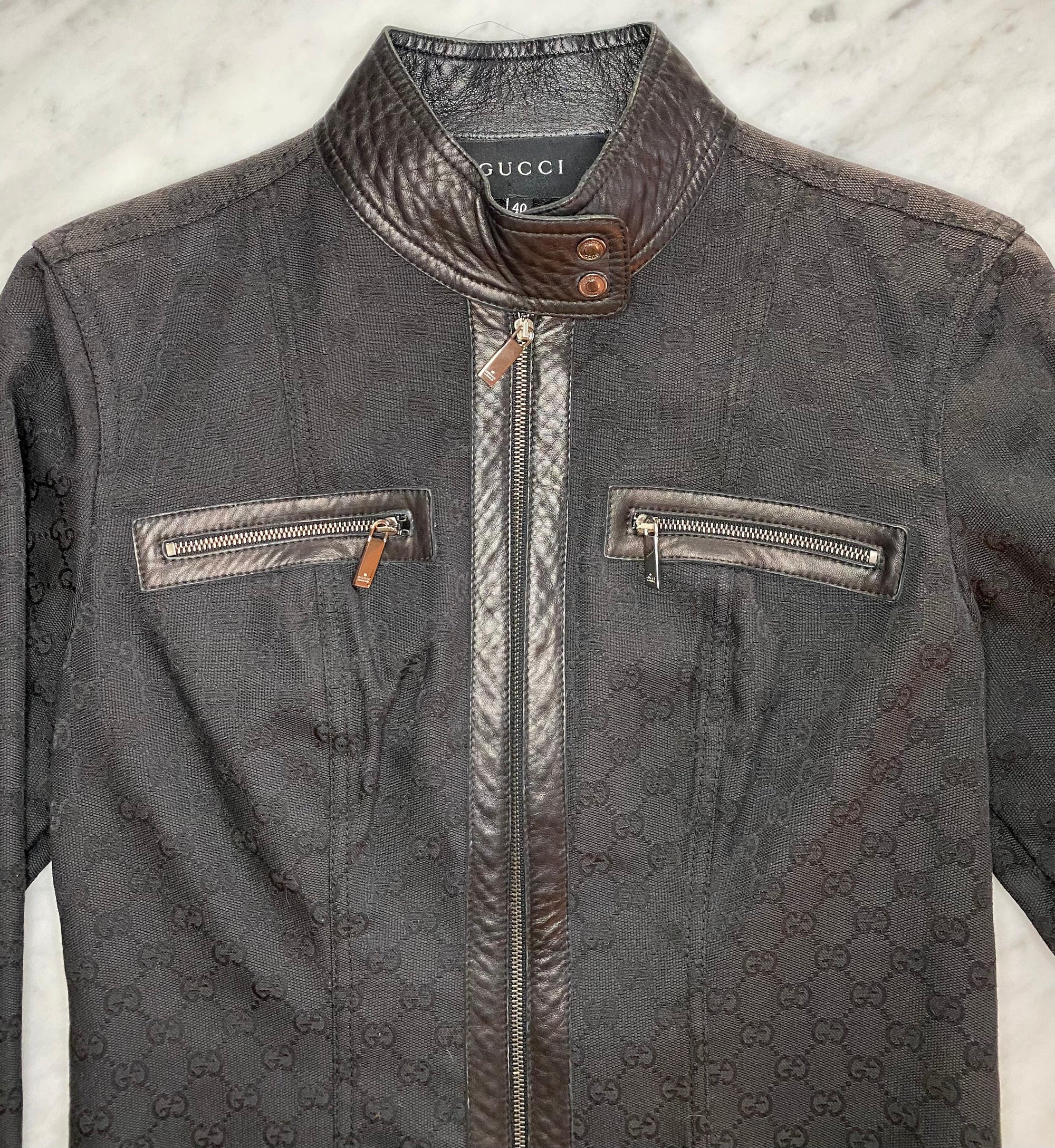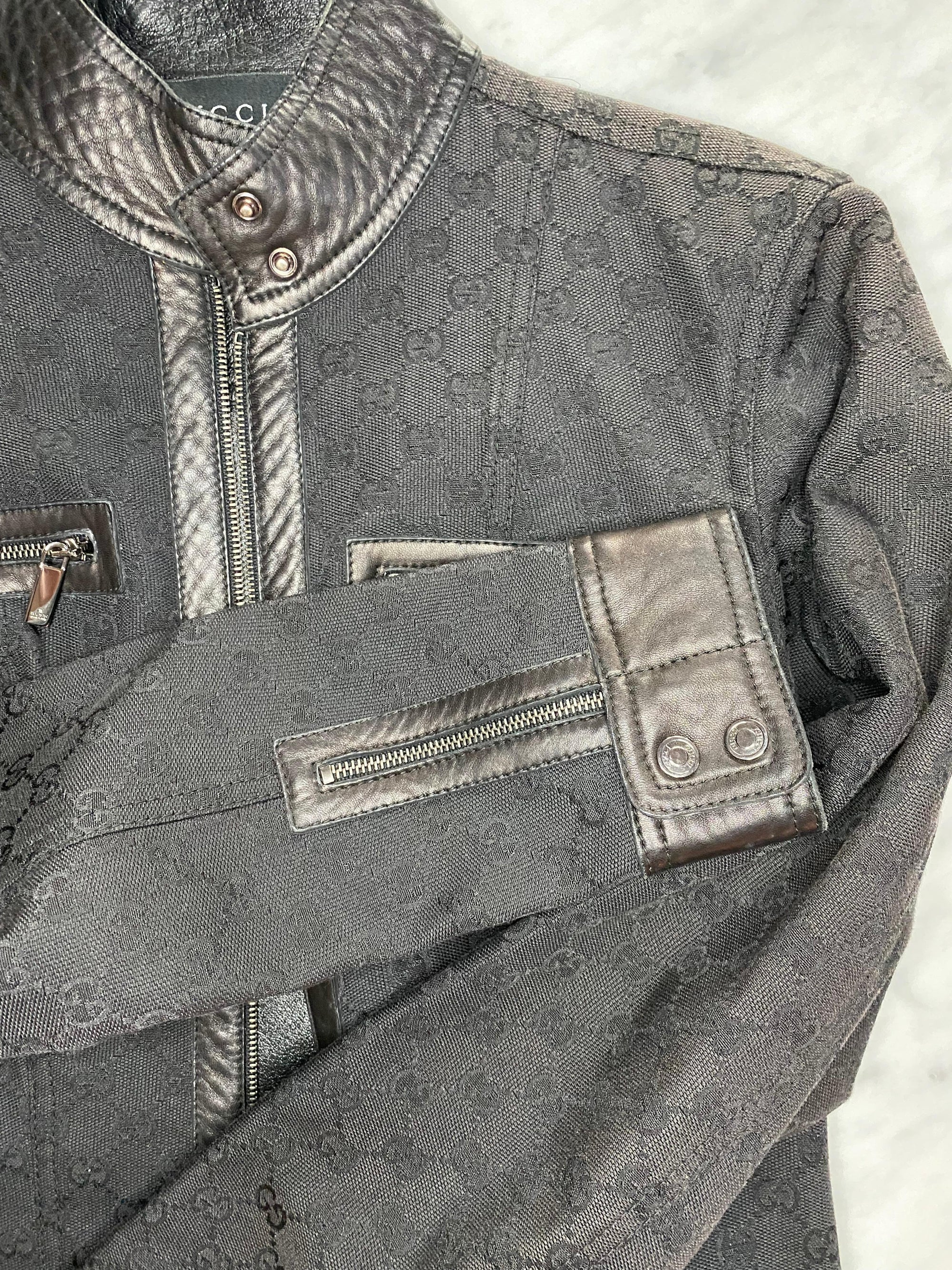 F/W 2000 Gucci by Tom Ford Black GG Monogram Denim & Leather Moto Jacket Vintage