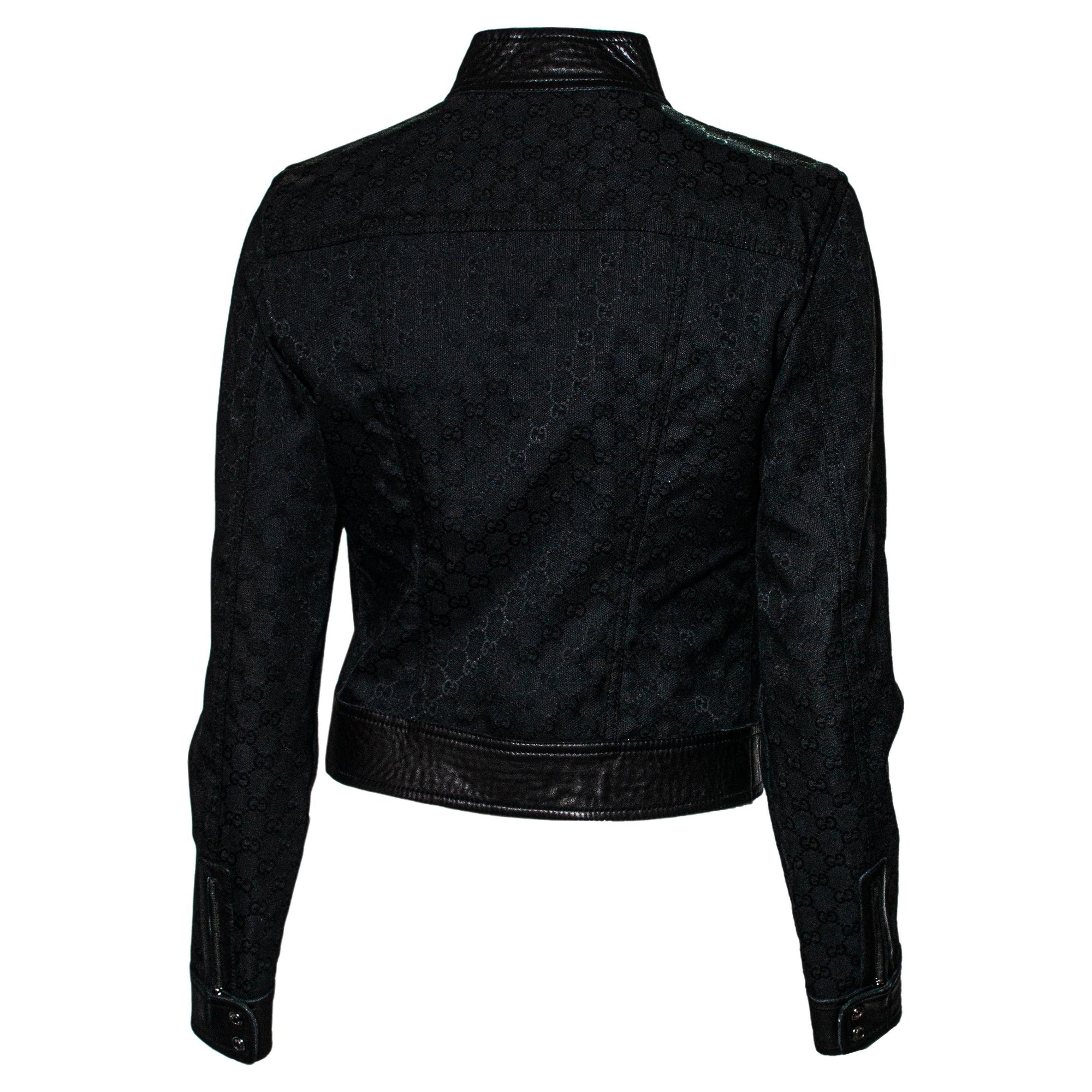 It does not get more Gucci than this. Designed by Tom Ford for the F/W 2000 collection, this jacket is constructed of leather and overlayed with a black 'GG' Gucci monogram canvas. This piece has two zippered pockets at the beast and zipper closure with snap closures at the top and bottom of the central zipper track. This stunning jacket is easily dressed up or down and can be paired with a matching skirt or pants, also available in our store.