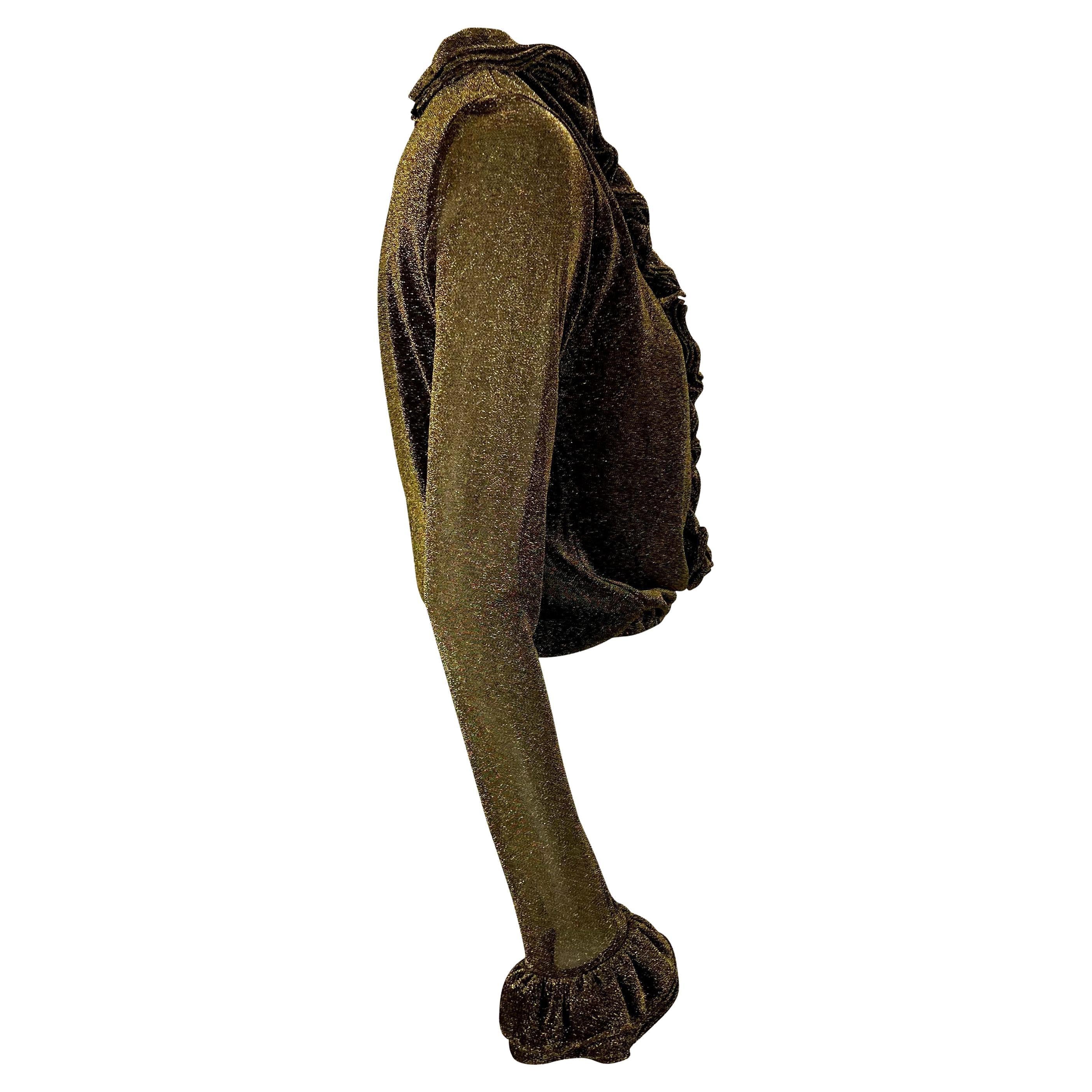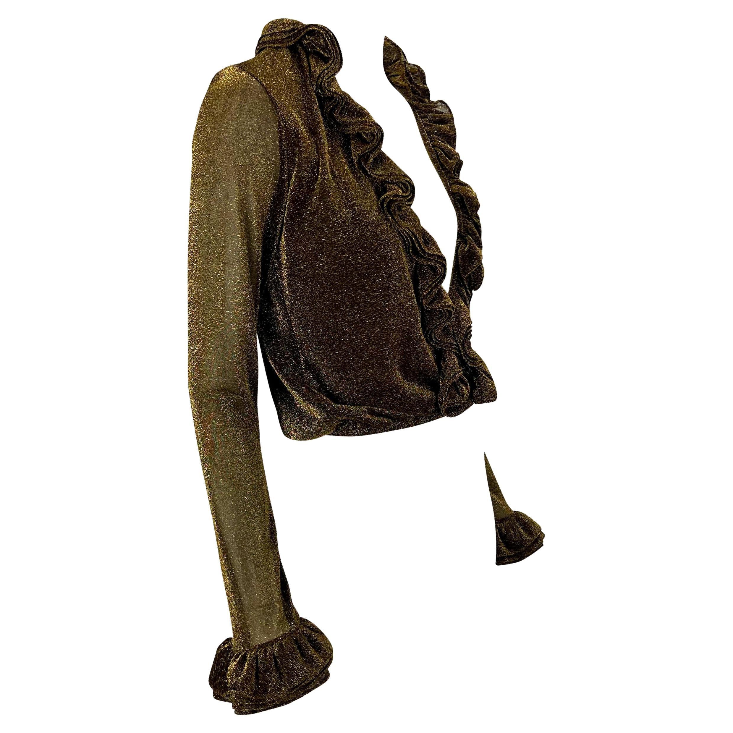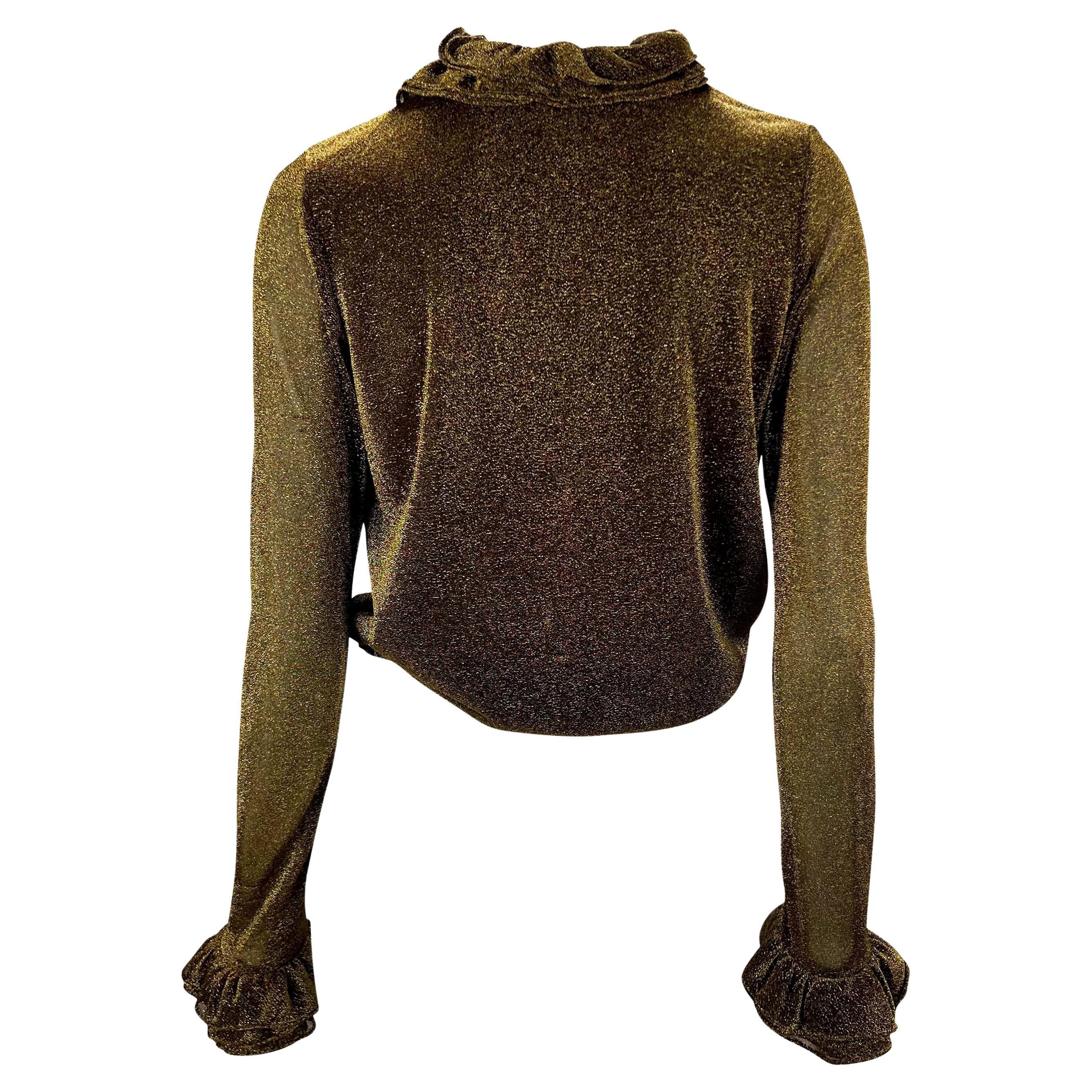 F/W 2000 Gucci by Tom Ford Plunging Gold Lurex Ruffle Disco Blouse