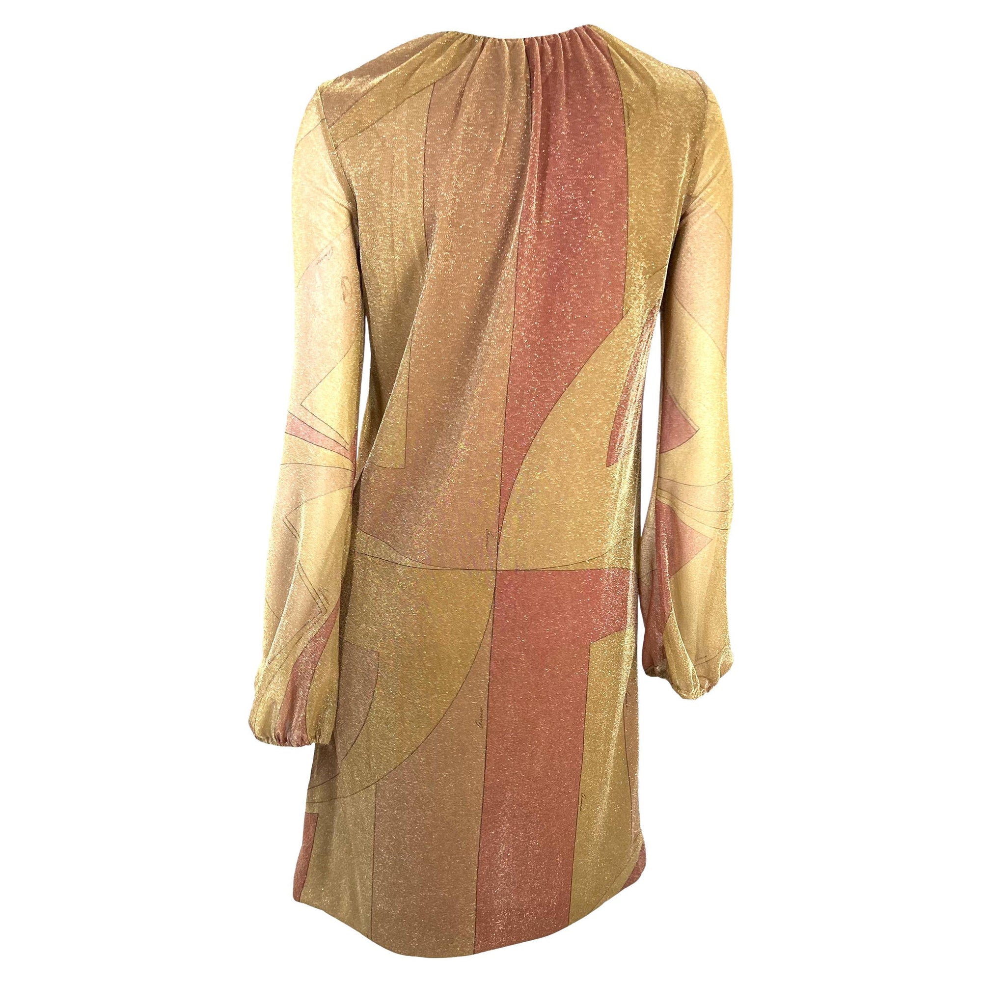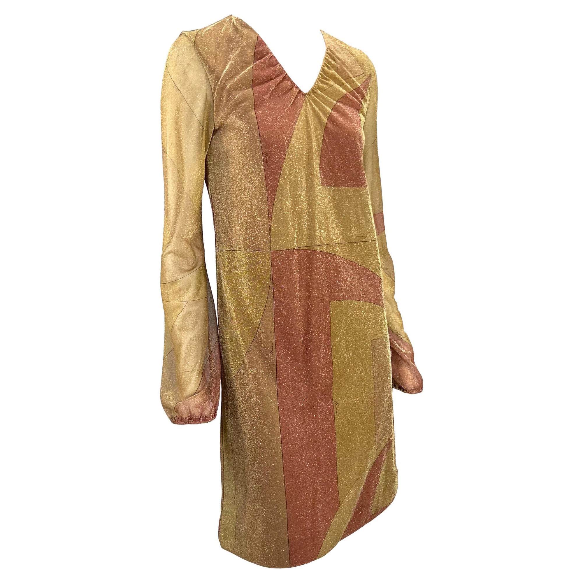 F/W 2000 Gucci by Tom Ford Runway Gold Pink Lurex Metallic Sheer Dress Y2K