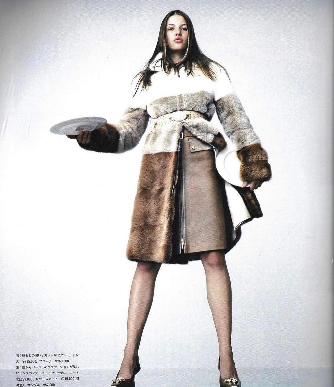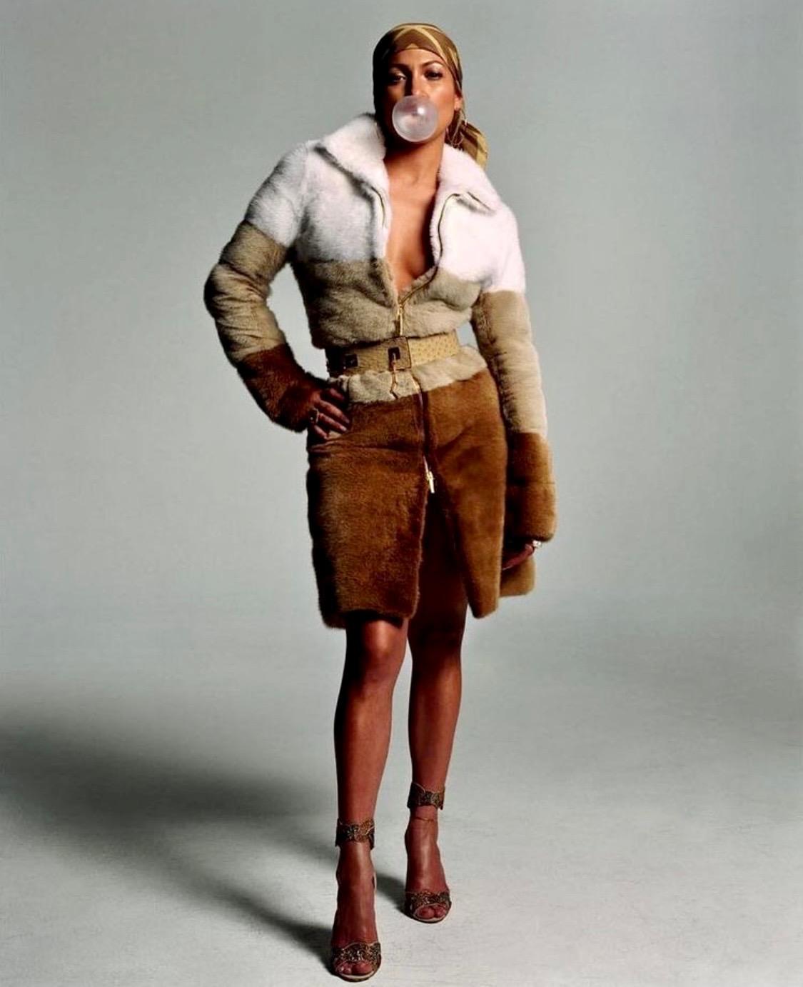 Tom Ford designed this marvelous tricolor, color-blocked Gucci mink coat. The coat was presented as Look 37, worn by Danita Angell on the Fall/Winter 2000 runway, and was worn by Jennifer Lopez in a W magazine shot by Michael Thompson. This fabulous coat was also highlighted in the December 2000 issue of HF Magazine. Soft and supple, this mink fur coat is everything you would expect of a Gucci by Tom Ford creation: well-made, sexy, and sleek. The coat has an ombre effect with three colors color-blocked. This is further accented with a shiny gold zipper. With an exquisite cut, this coat lets you stay chic and warm.