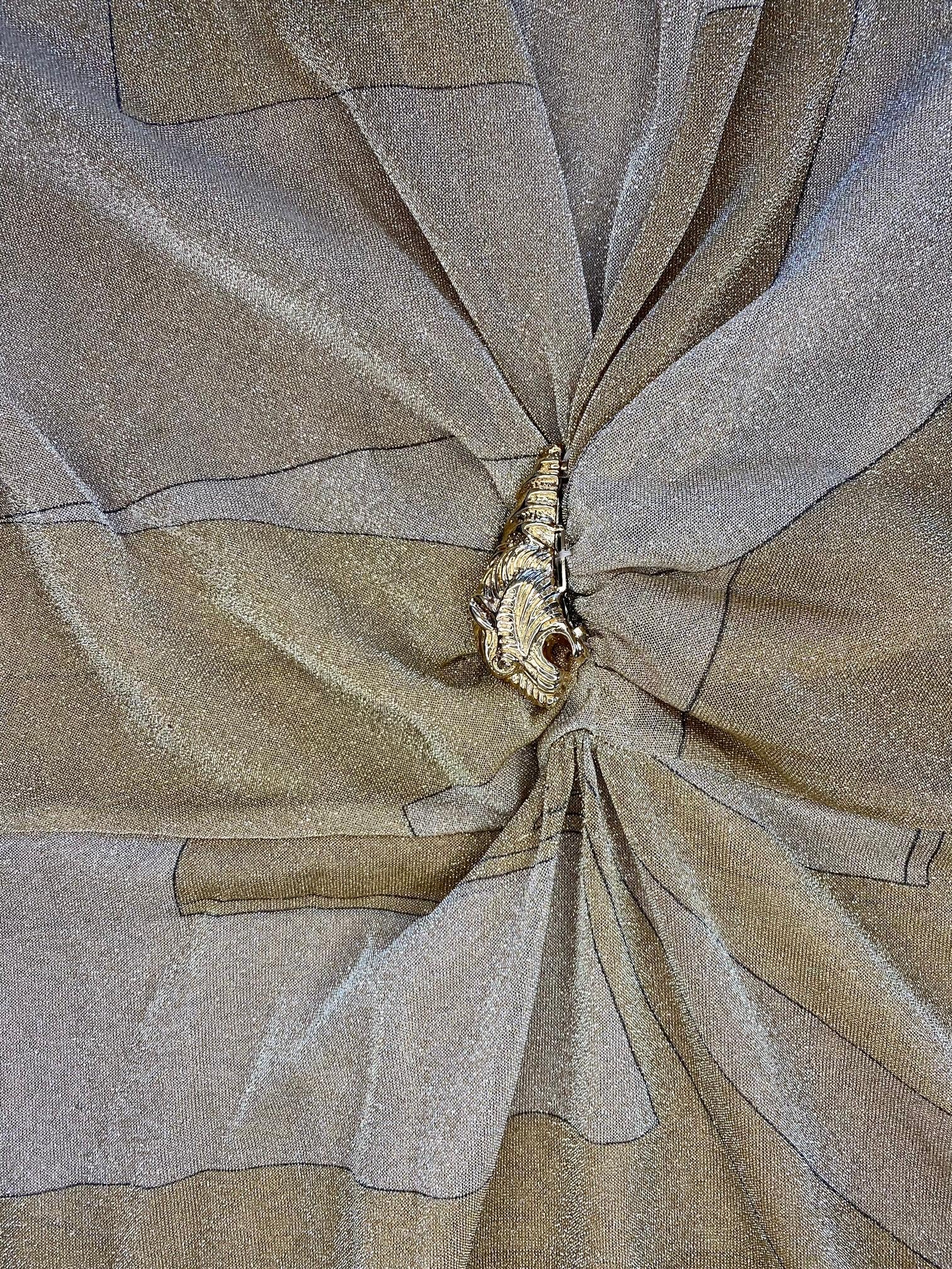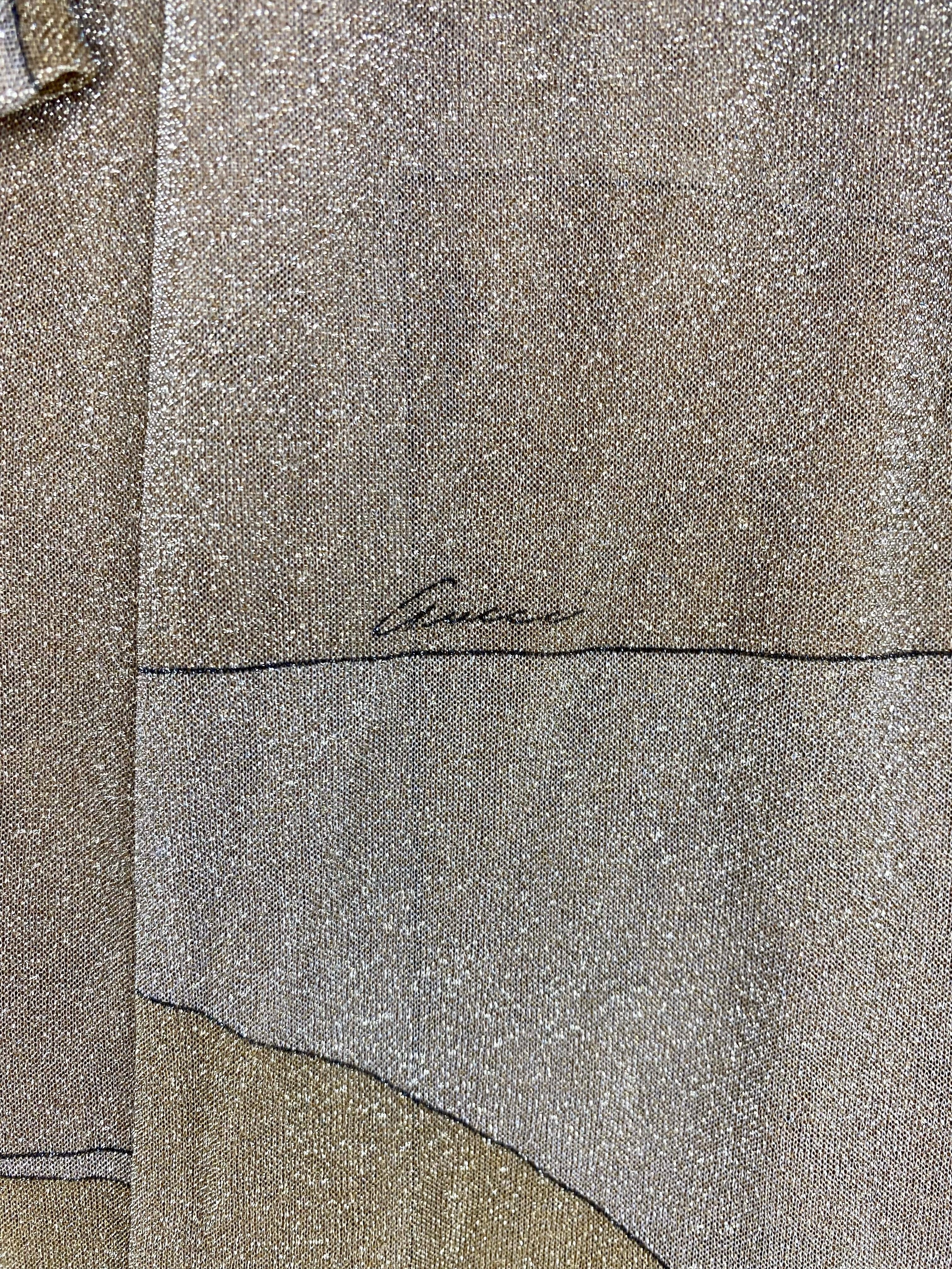 F/W 2000 Gucci by Tom Ford Sheer Gold Metallic Lurex Disco Dress Tiger Accent