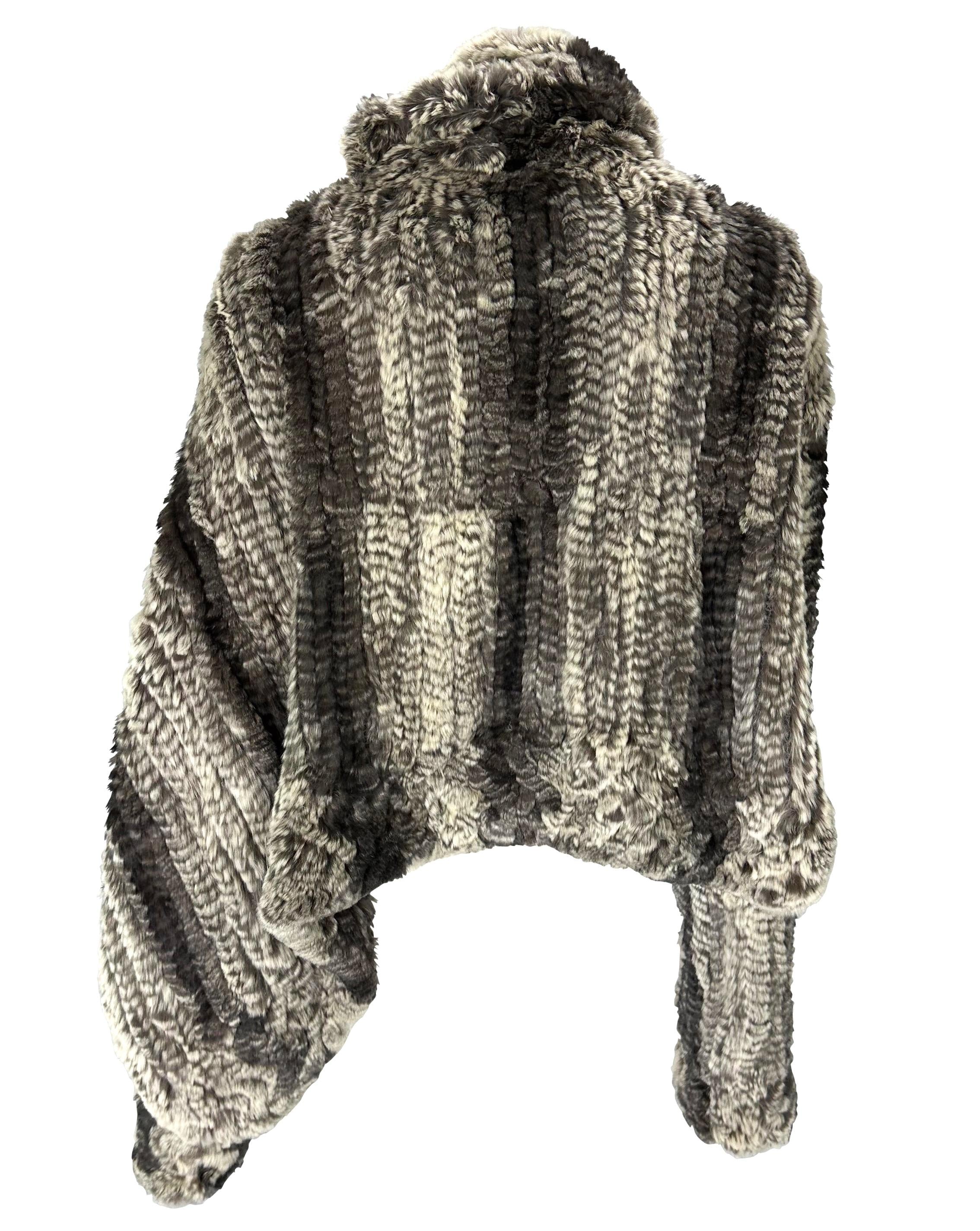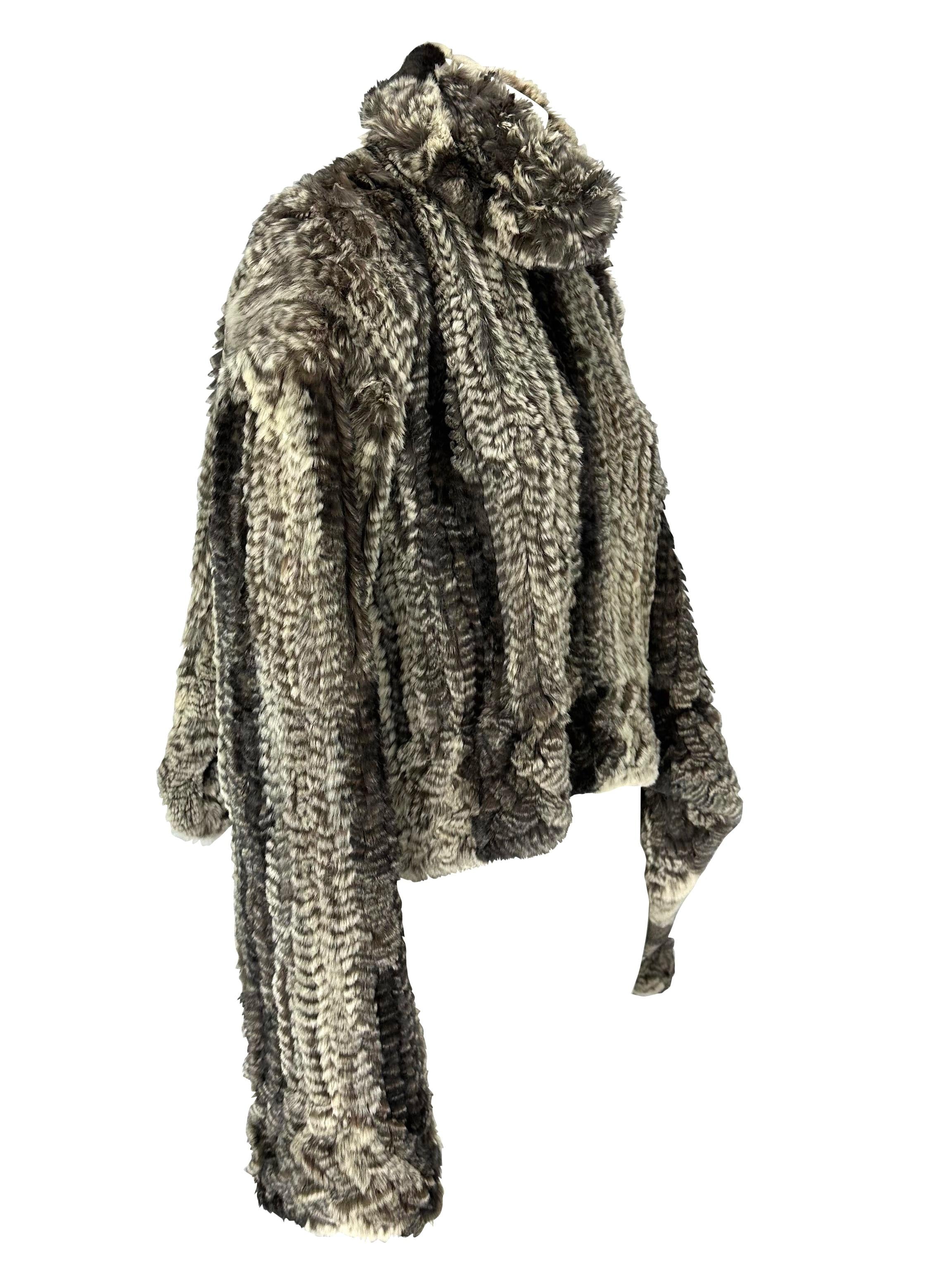 F/W 2000 John Galliano Grey Knit Fur Oversized Asymmetric Tunic Sweater Top