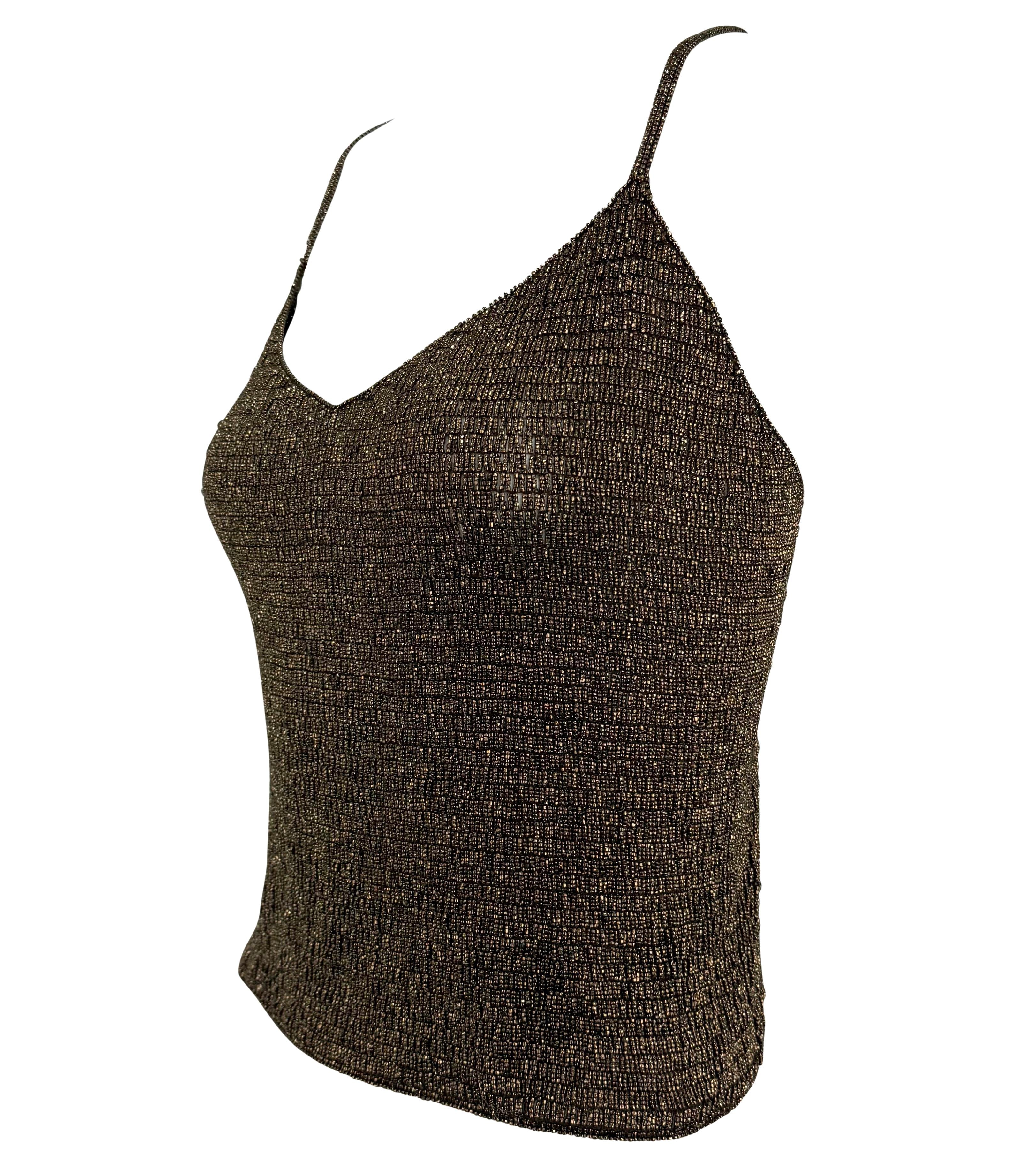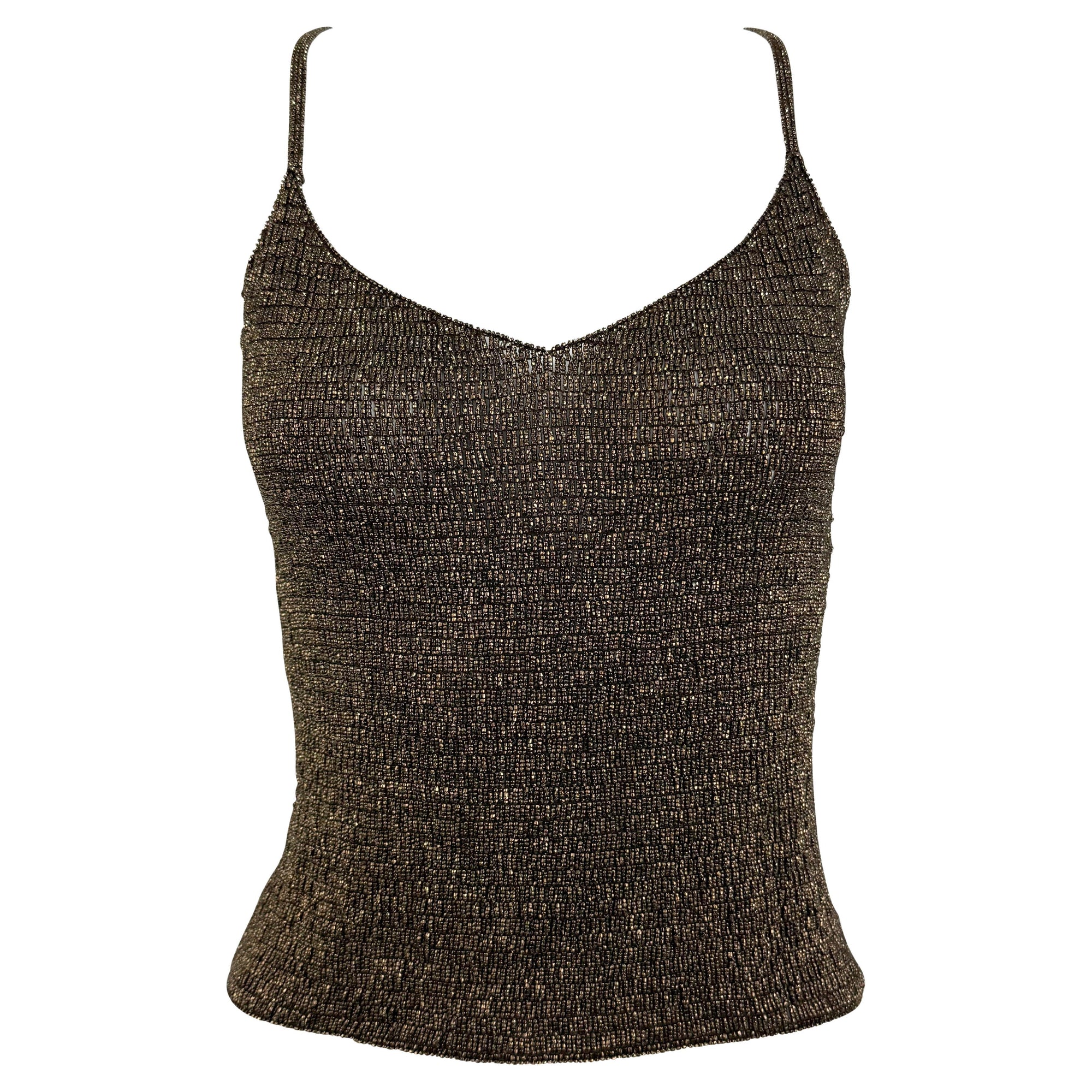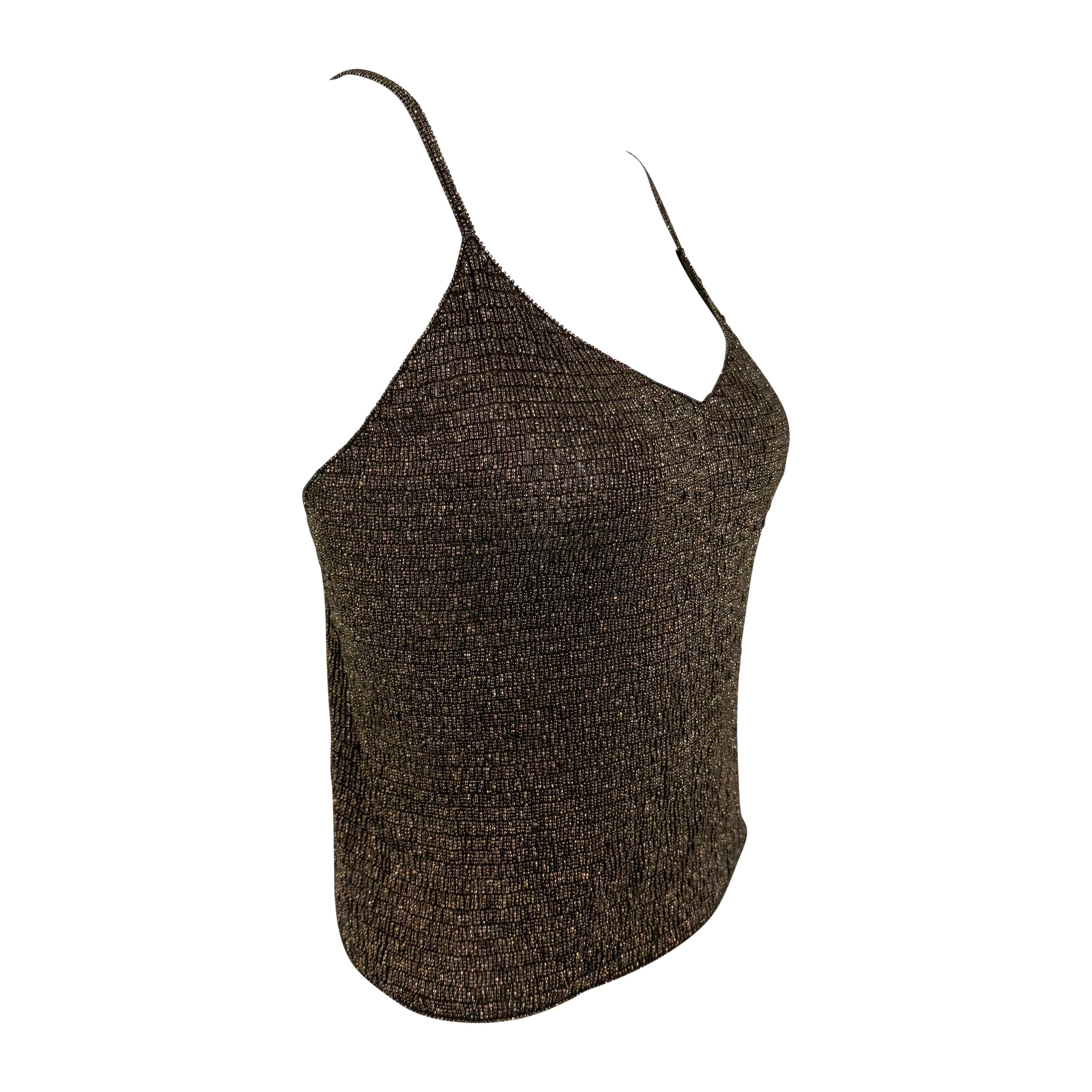 F/W 2000 Ralph Lauren Runway Heavily Beaded Bronze Sheer Knit Cami Tank Top