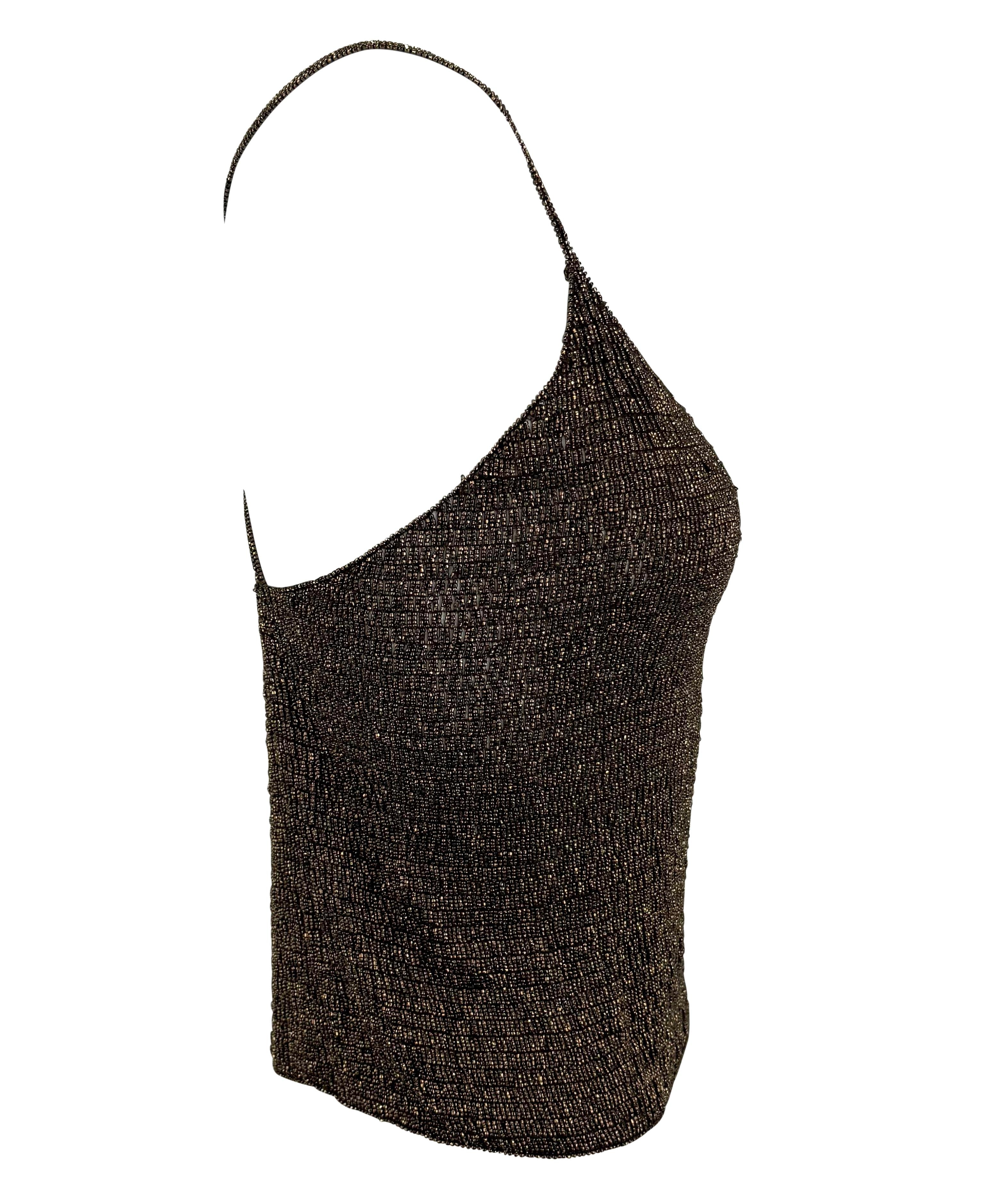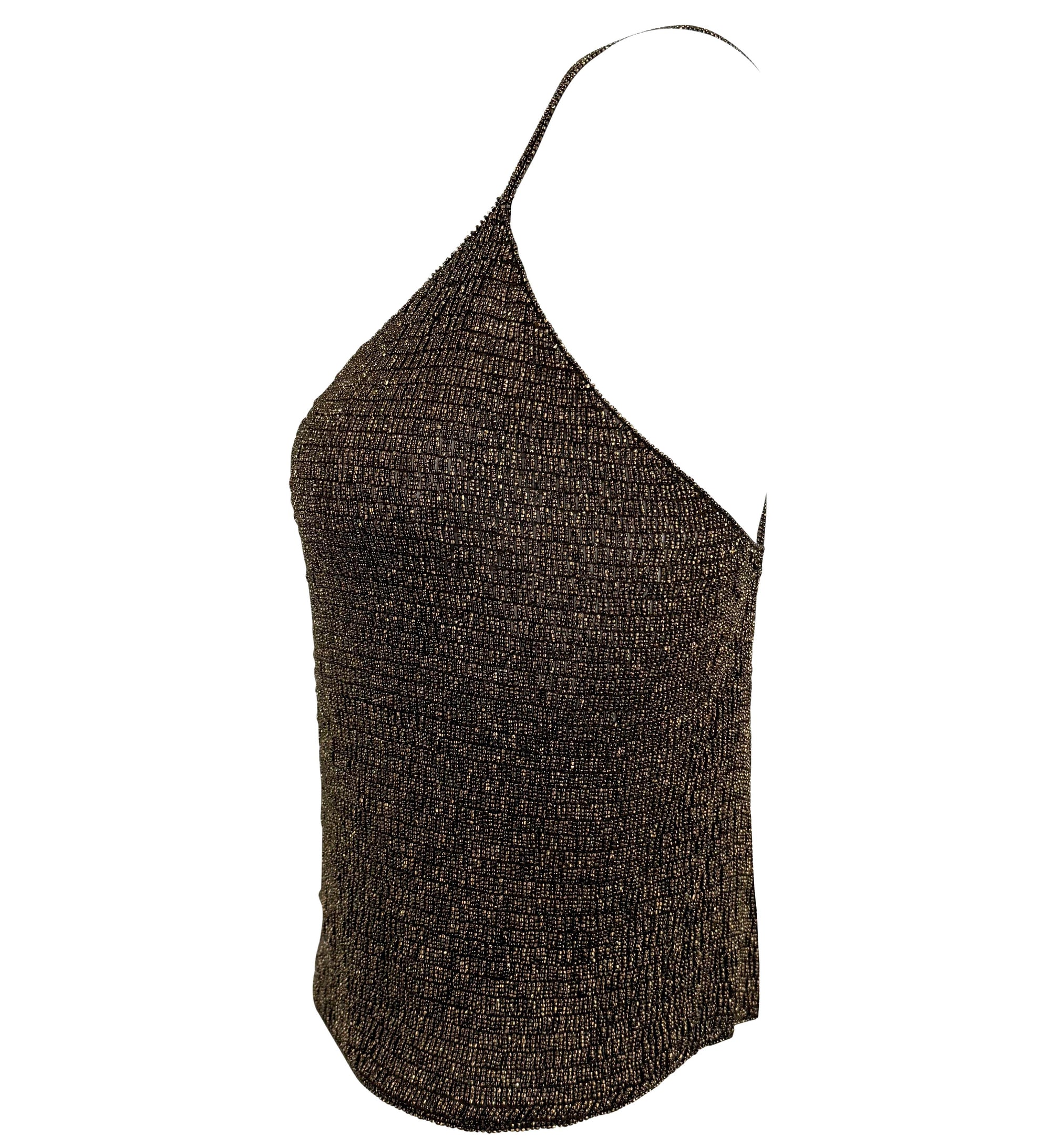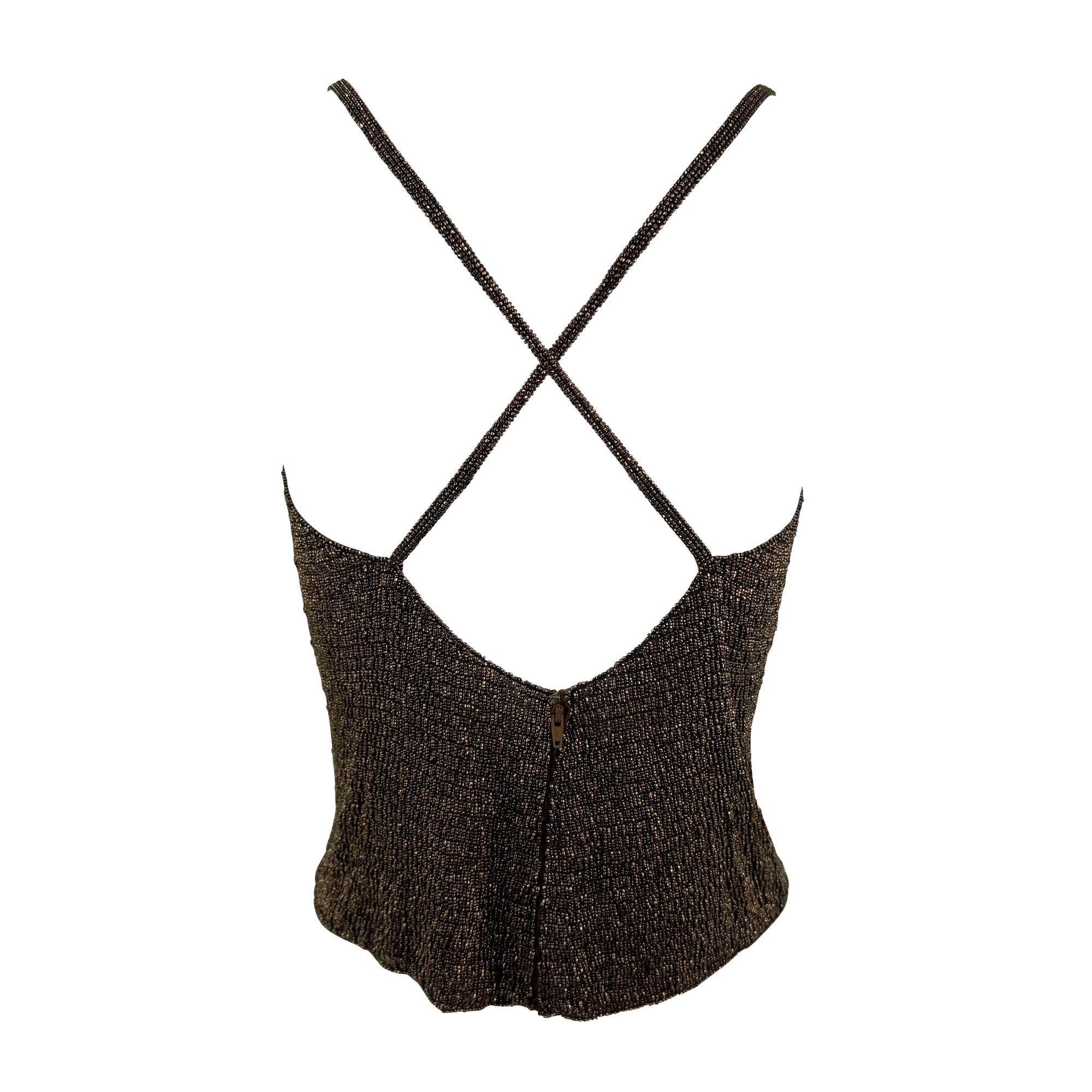 F/W 2000 Ralph Lauren Runway Heavily Beaded Bronze Sheer Knit Cami Tank Top