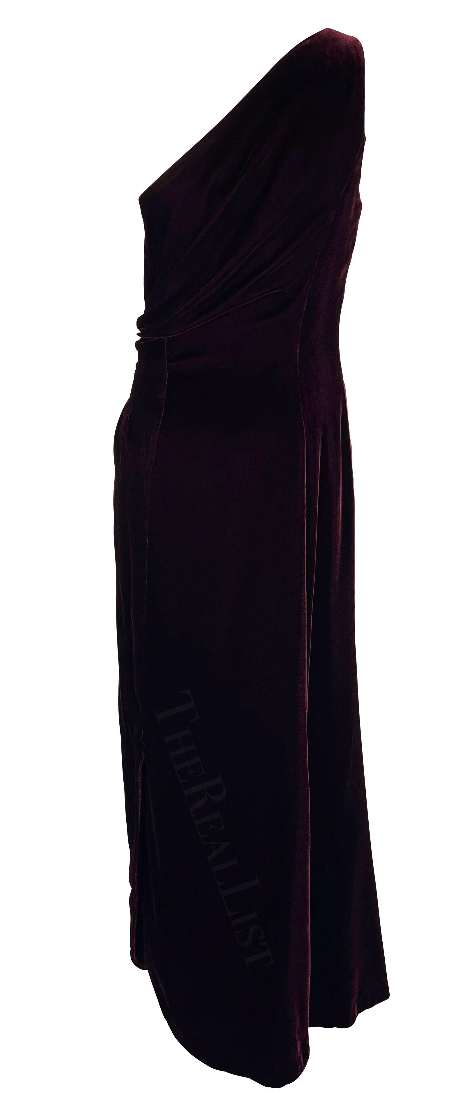 F/W 2000 Thierry Mugler Rhinestone Burgundy Velvet Single Shoulder Runway Gown