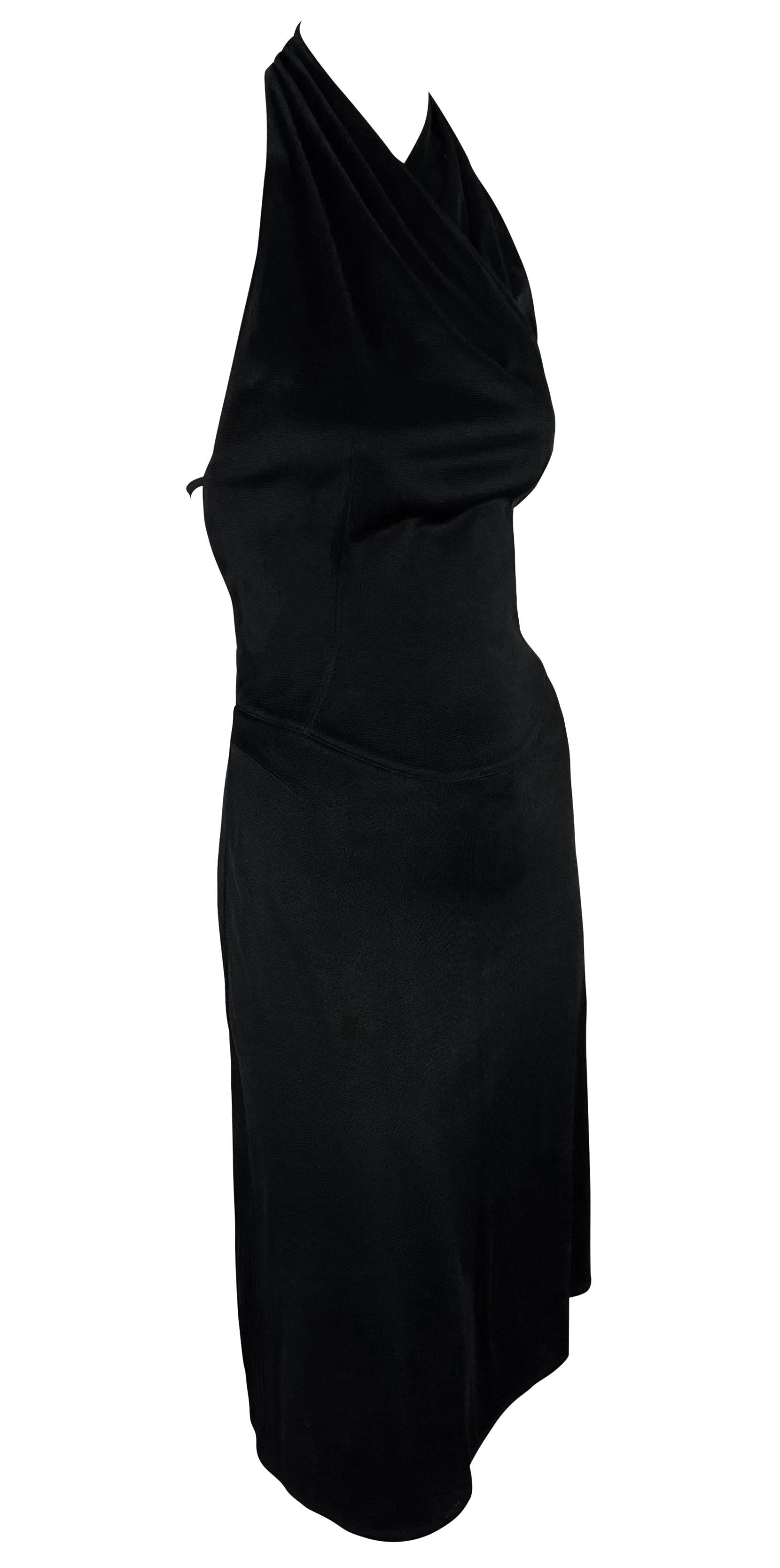 From Alaïa's Fall/Winter 2001 collection, this sexy, form-fitting halterneck dress wraps around the neck to create a V-neckline. The same style worn by Stephanie Seymour and Naomi Campbell in shoots with the namesake designer, this stretchy dress features thin straps that run across an exposed back and a lightly flared hem.