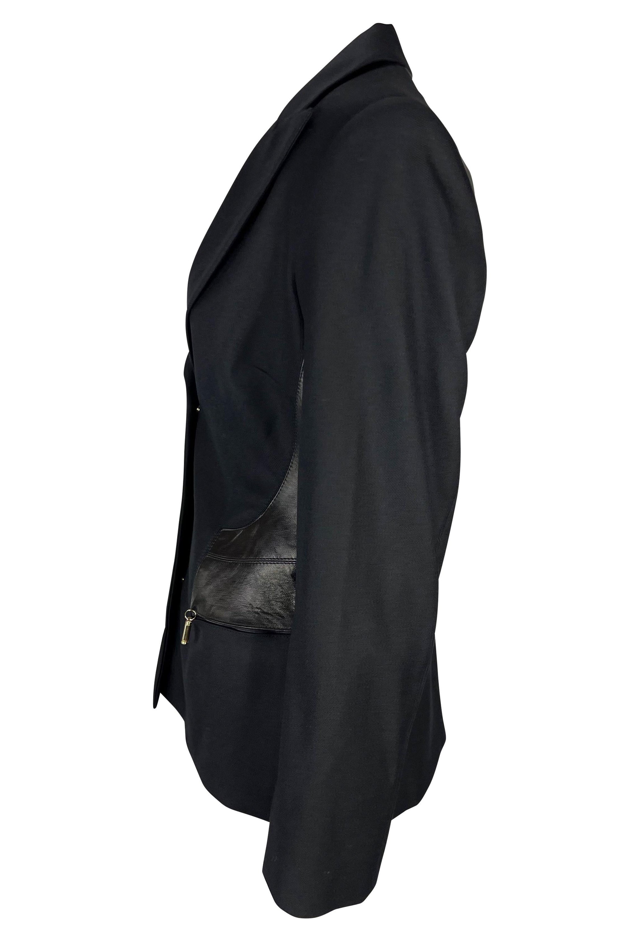 F/W 2001 Gianni Versace by Donatella Black Wool Leather Panel Blazer Jacket