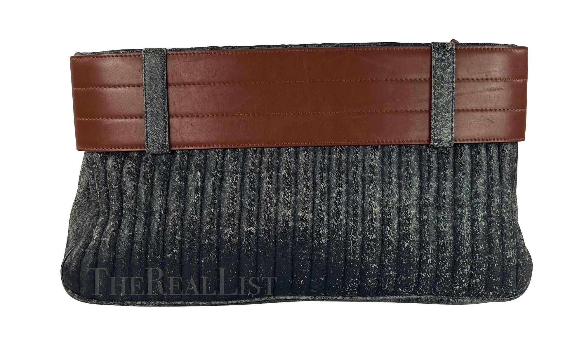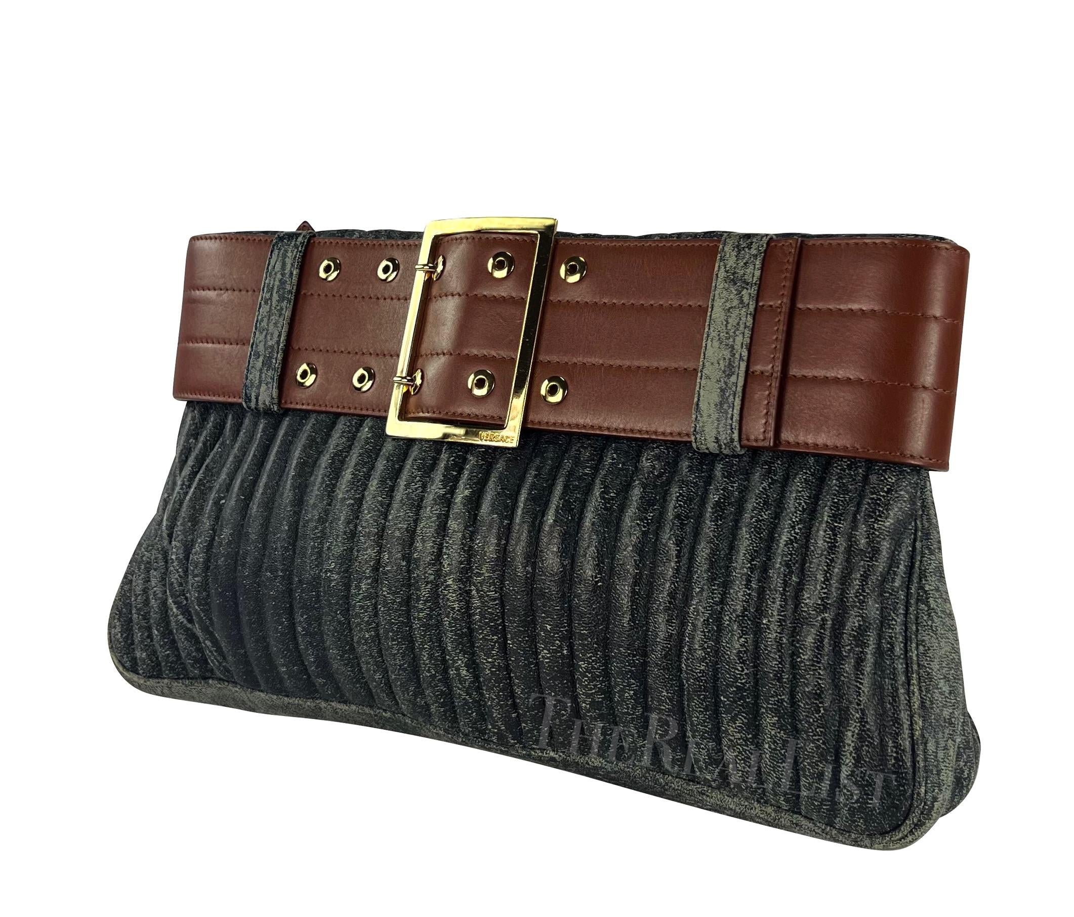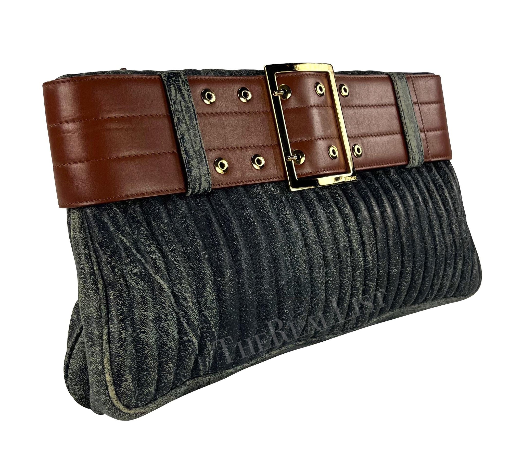 F/W 2001 Gianni Versace by Donatella Blue Distressed Leather Belted Clutch
