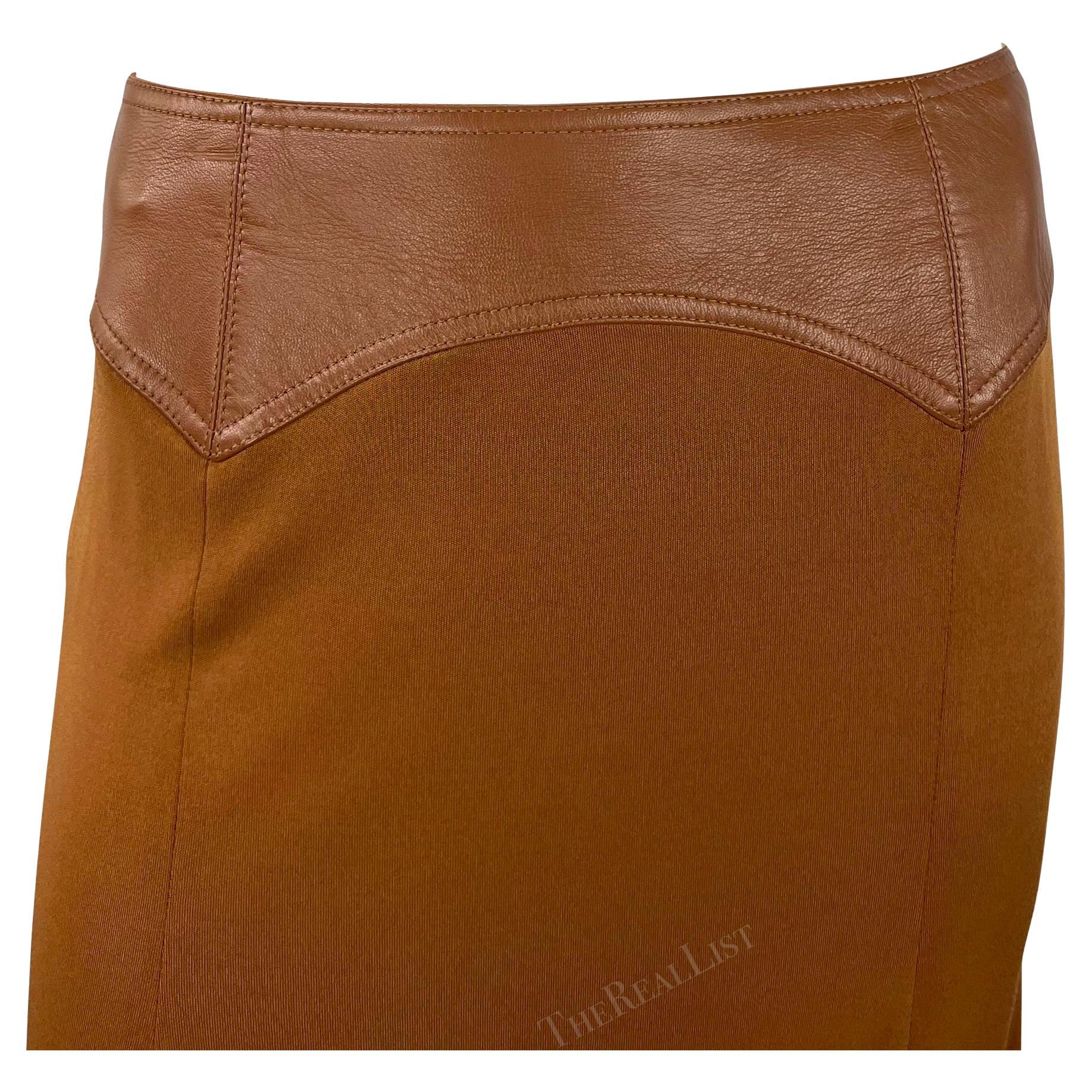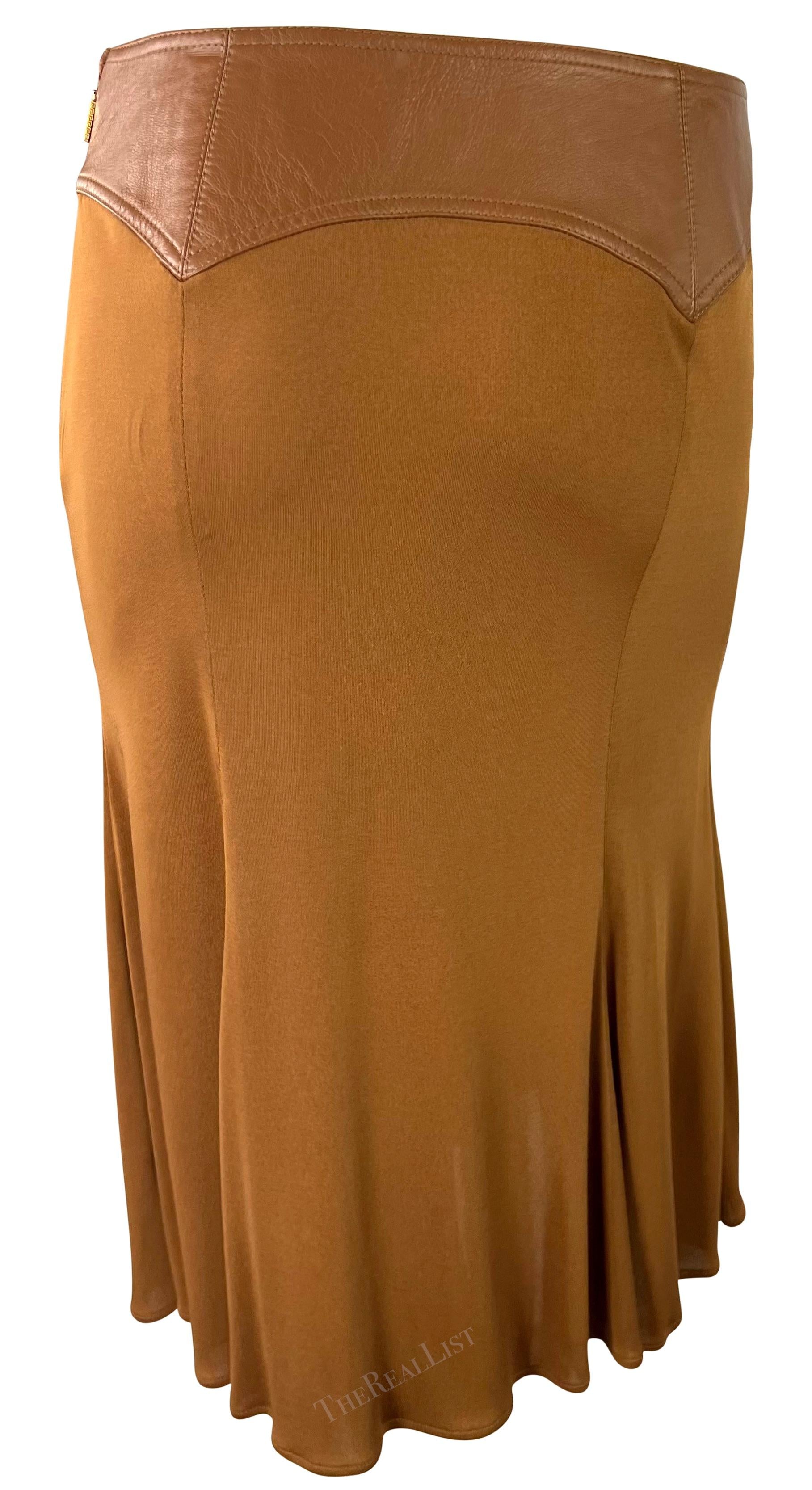 F/W 2001 Gianni Versace by Donatella Light Saddle Brown Leather Bodycon Skirt
