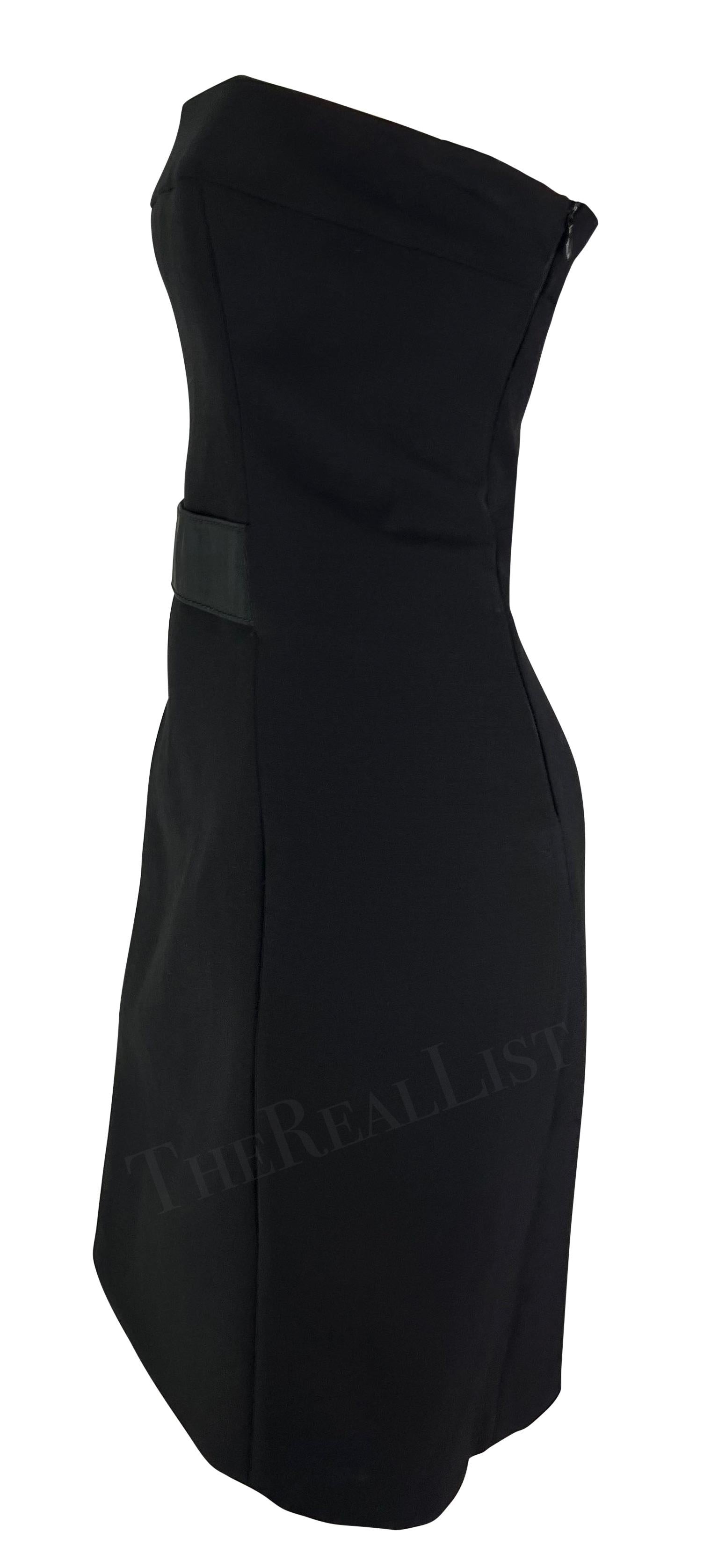Presenting a black strapless Gucci dress, designed by Tom Ford. From the Fall/Winter 2001 collection, this strapless wool dress features a small strap accent across the waist. This fitted Gucci by Tom Ford mini dress is the perfect elevated addition to any wardrobe!