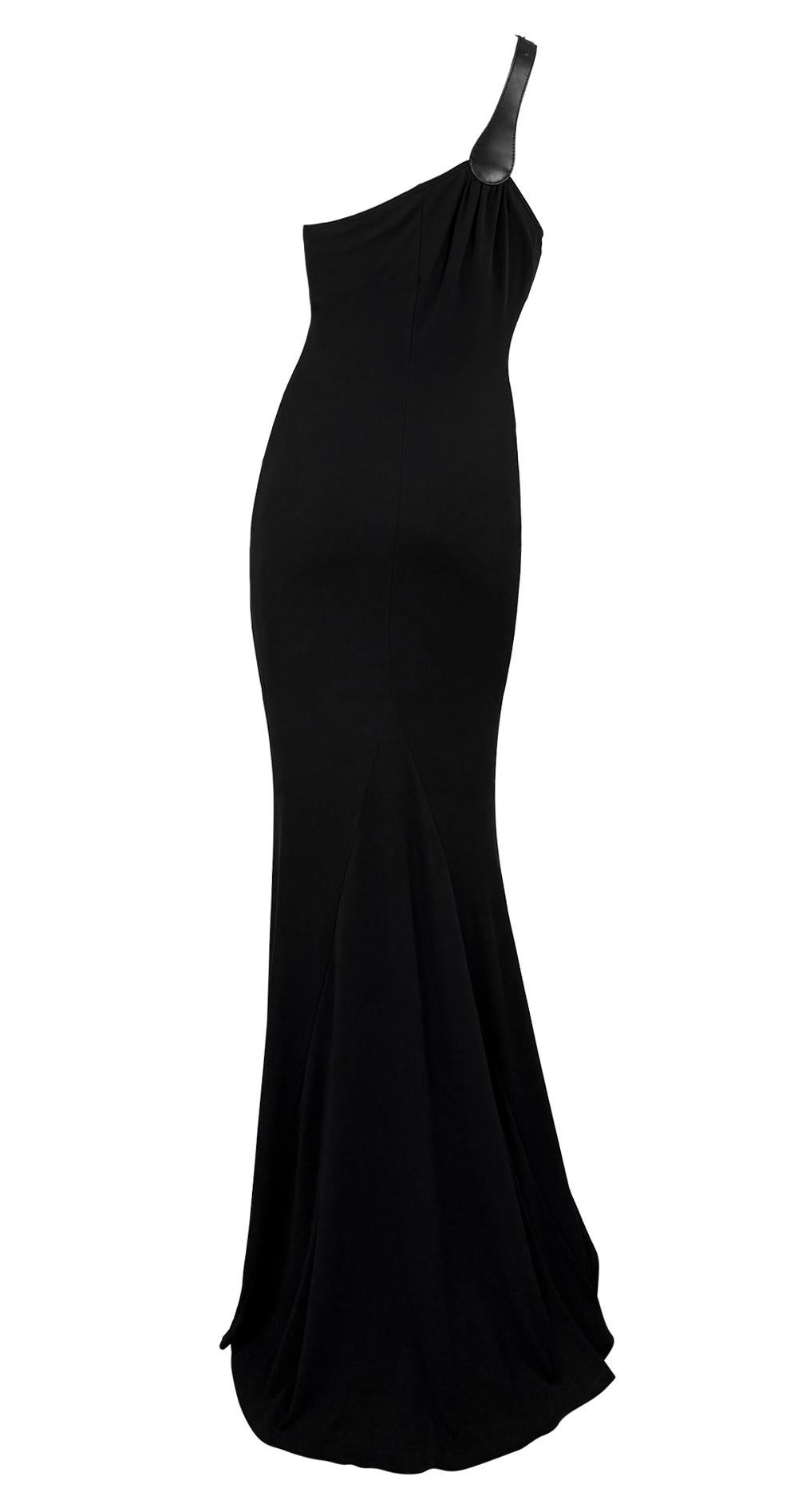 F/W 2001 Michael Kors Runway Black Leather Asymmetric Strap Bodycon Sample Gown