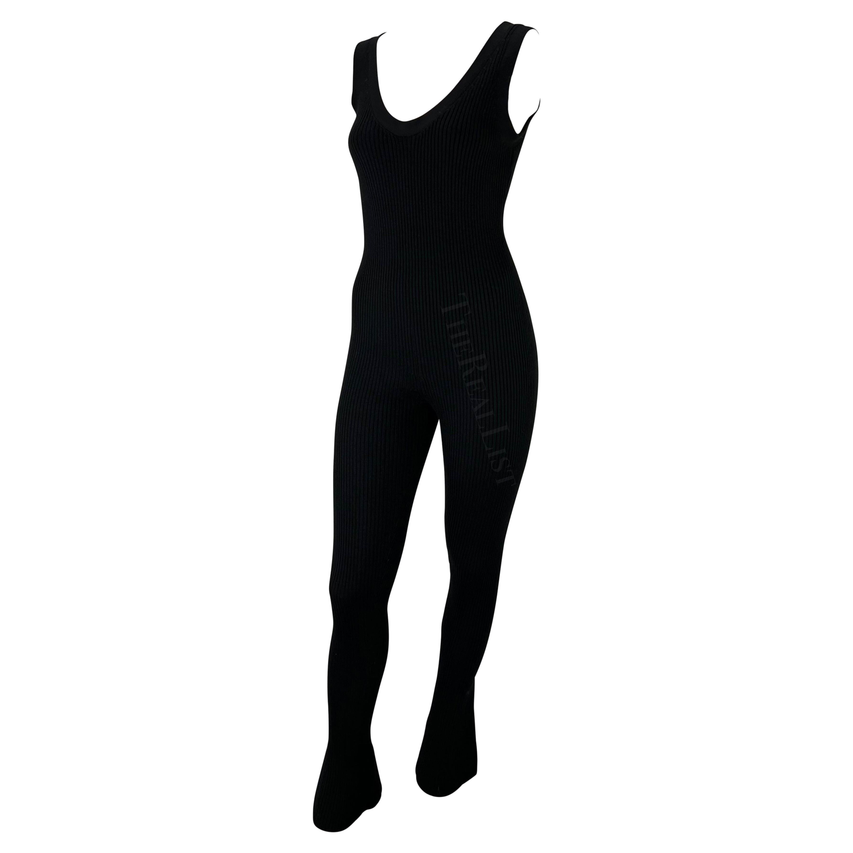 F/W 2001 Prada Runway Black Ribbed Knit Stretch Tank Bell Bottom Catsuit Stirrup